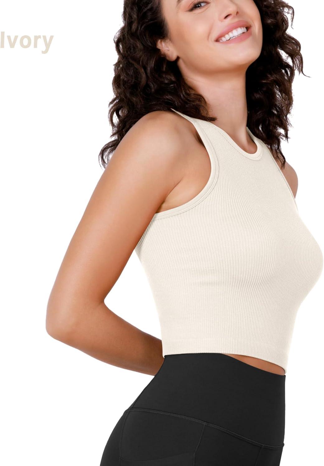 Be the first to review “ODODOS 3-Pack Seamless Crop Tank for Women Ribbed Soft High Neck Cropped Tops(Ermine+ivory+star White)”