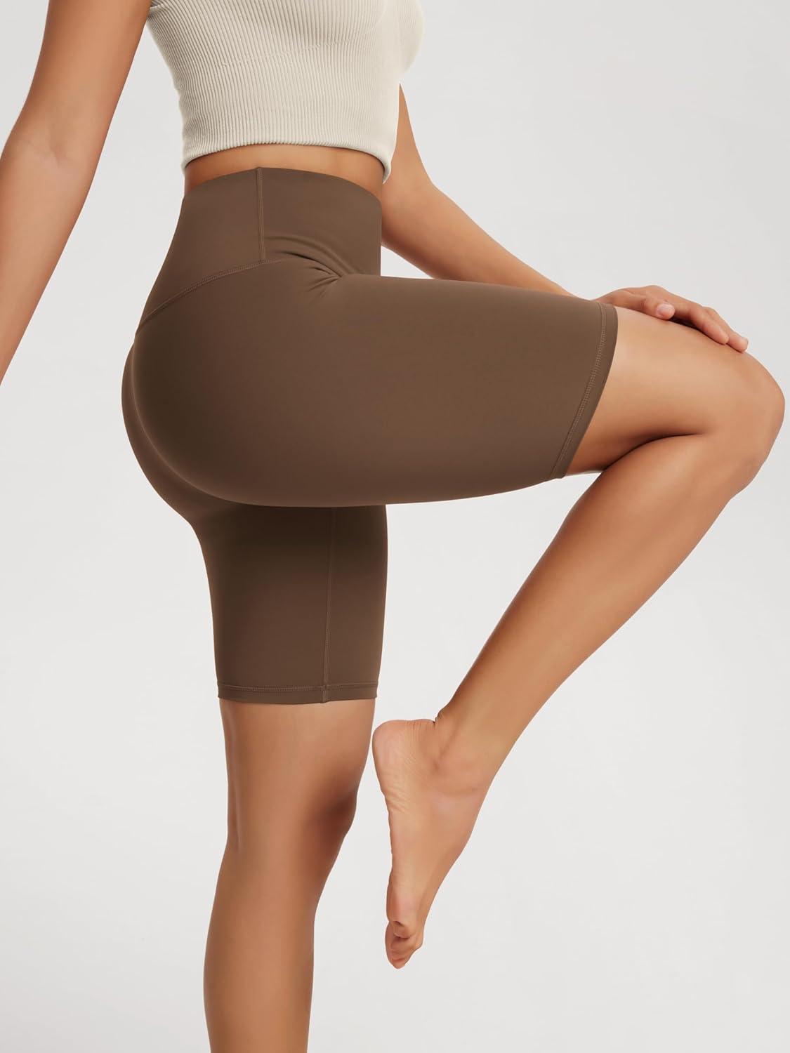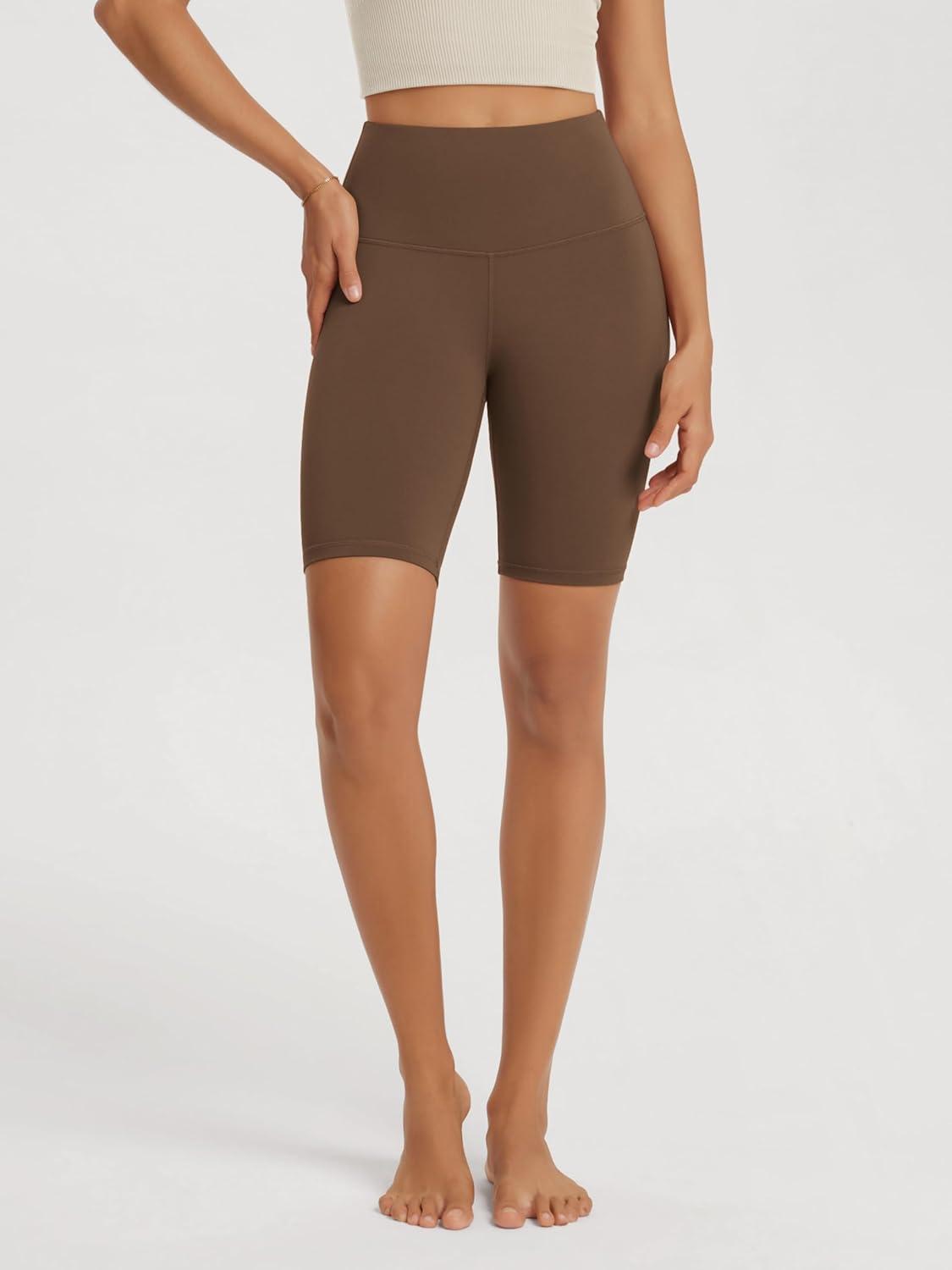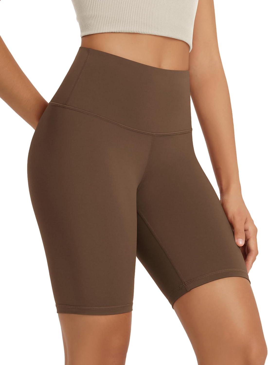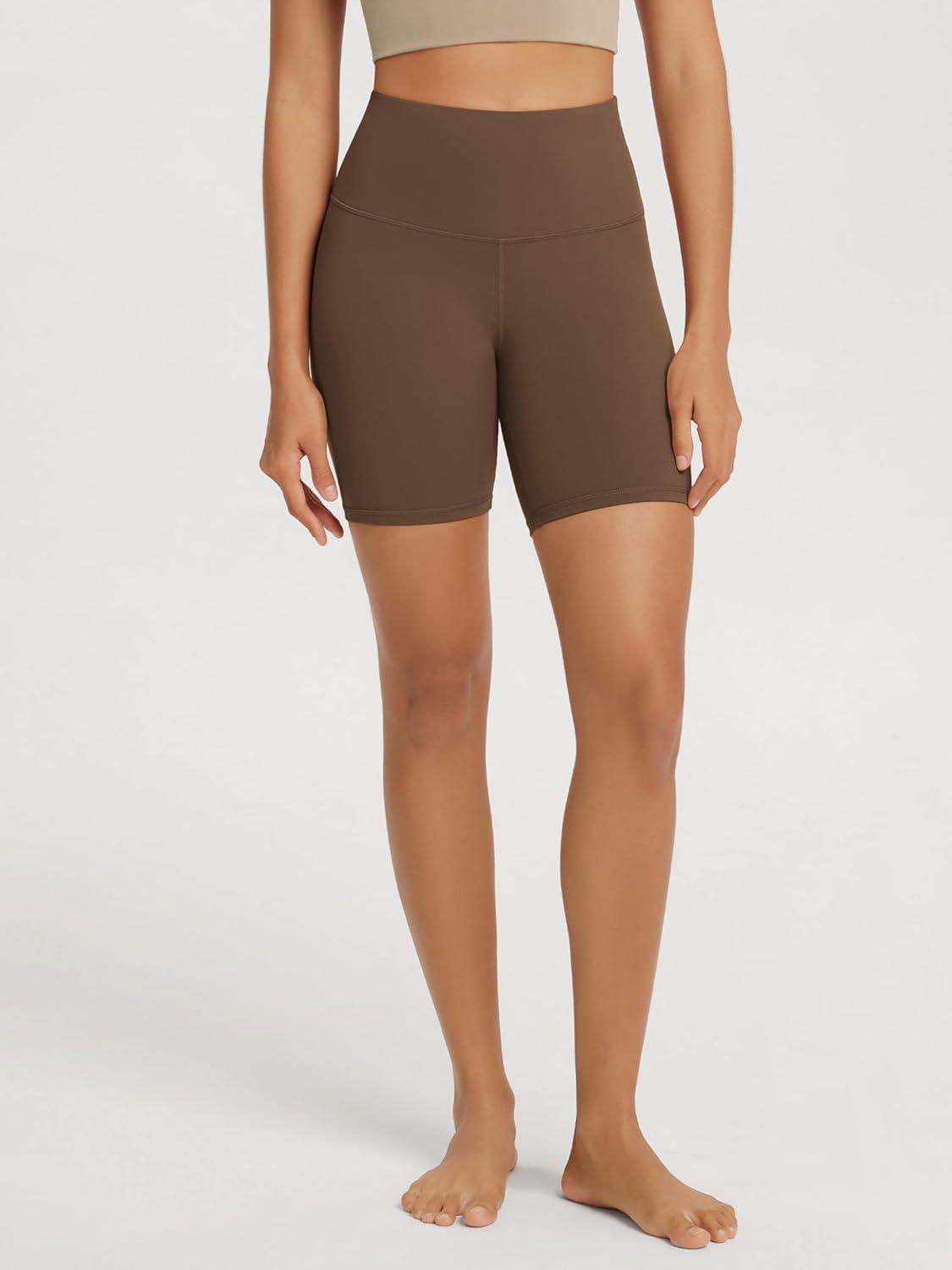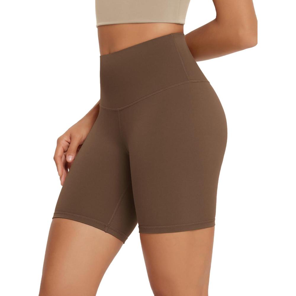 ODODOS High Waist Workout Shorts for Women Tummy Control Workout Gym Athletic Biker Shorts-6″/8″ Inseam(Brunette)