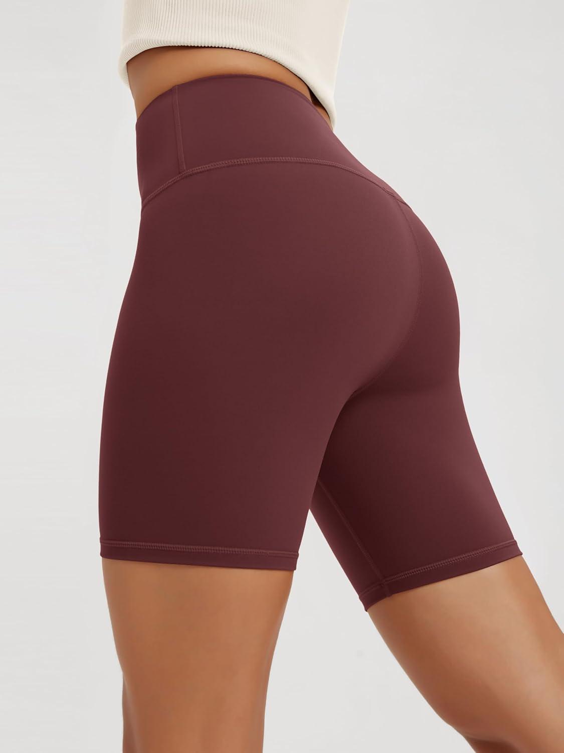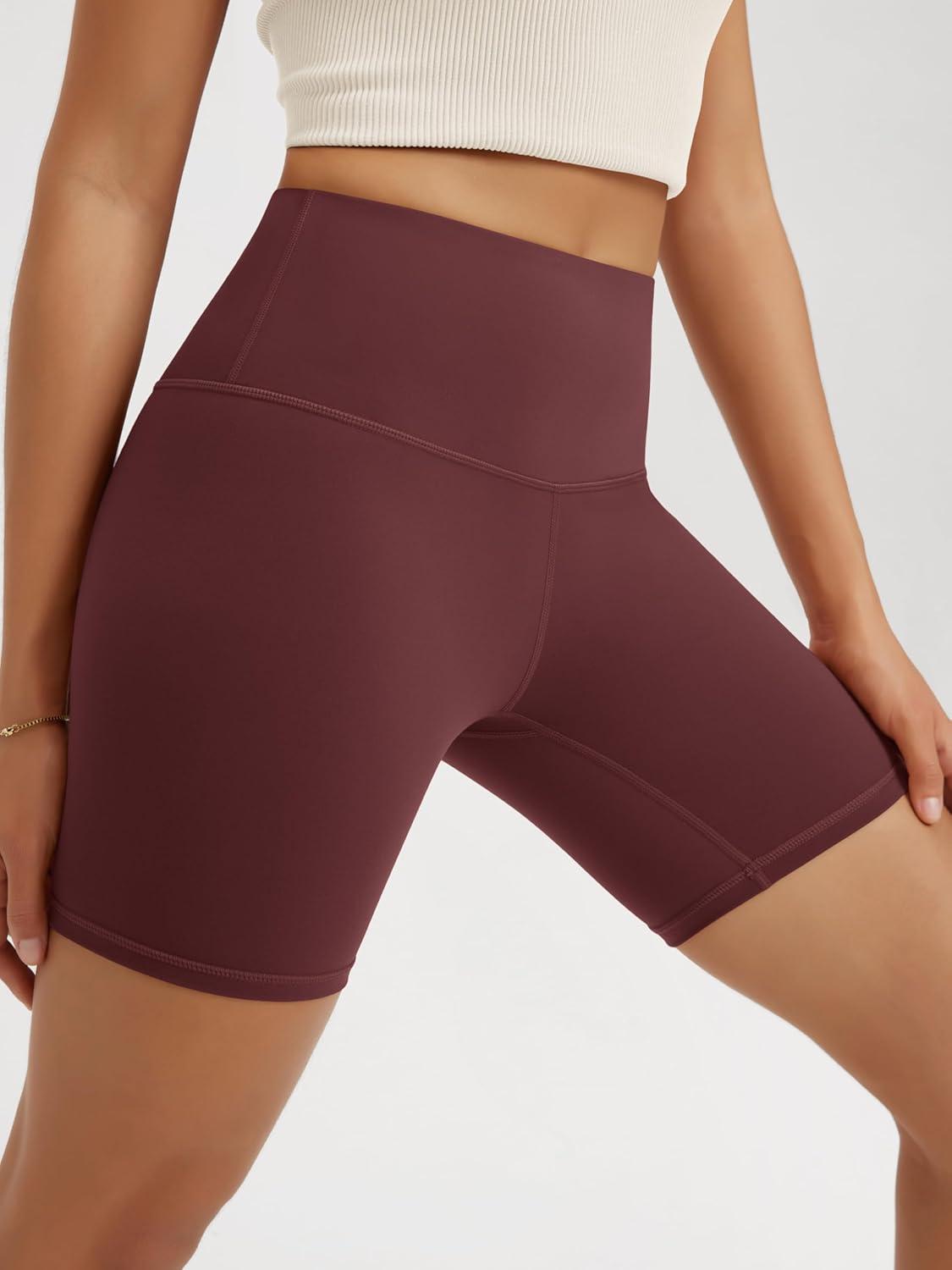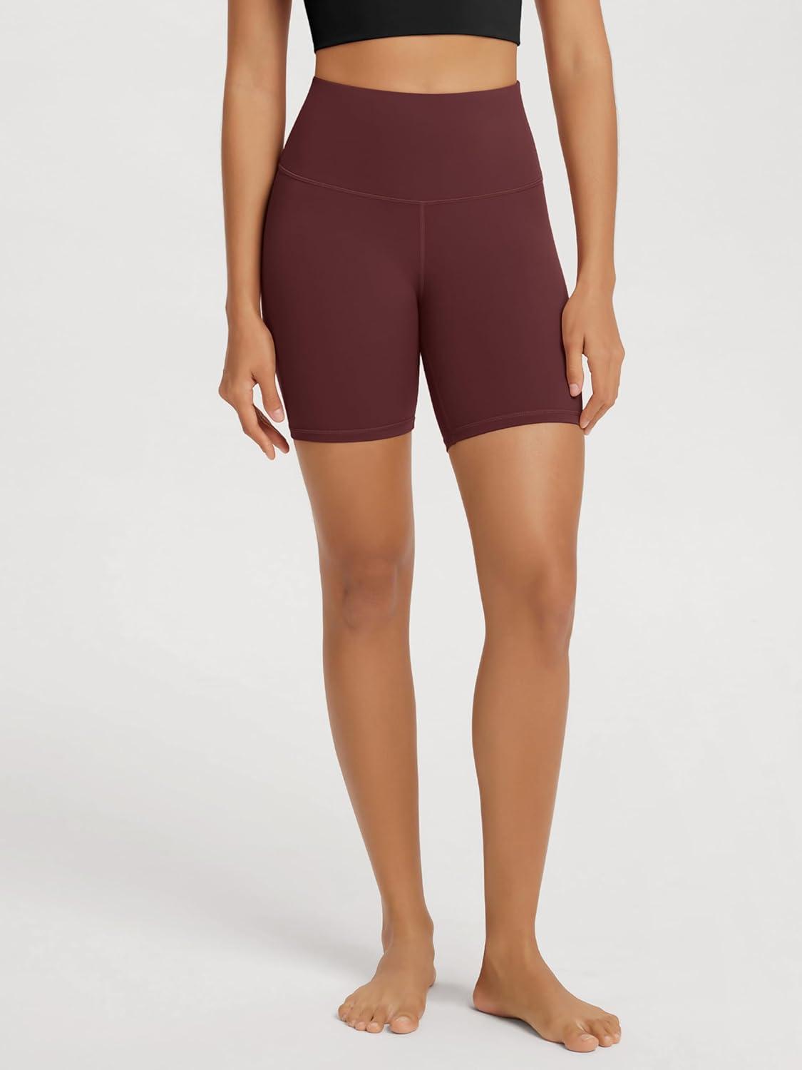 ODODOS High Waist Workout Shorts for Women Tummy Control Workout Gym Athletic Biker Shorts-6″/8″ Inseam(Burgundy)