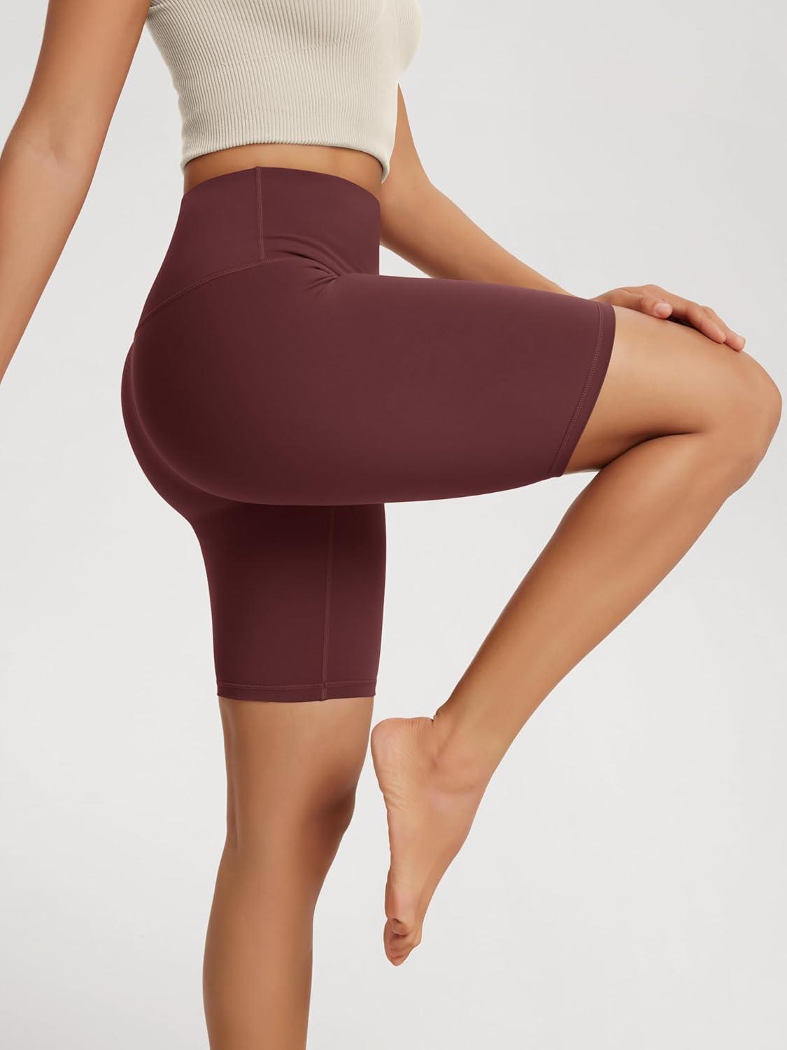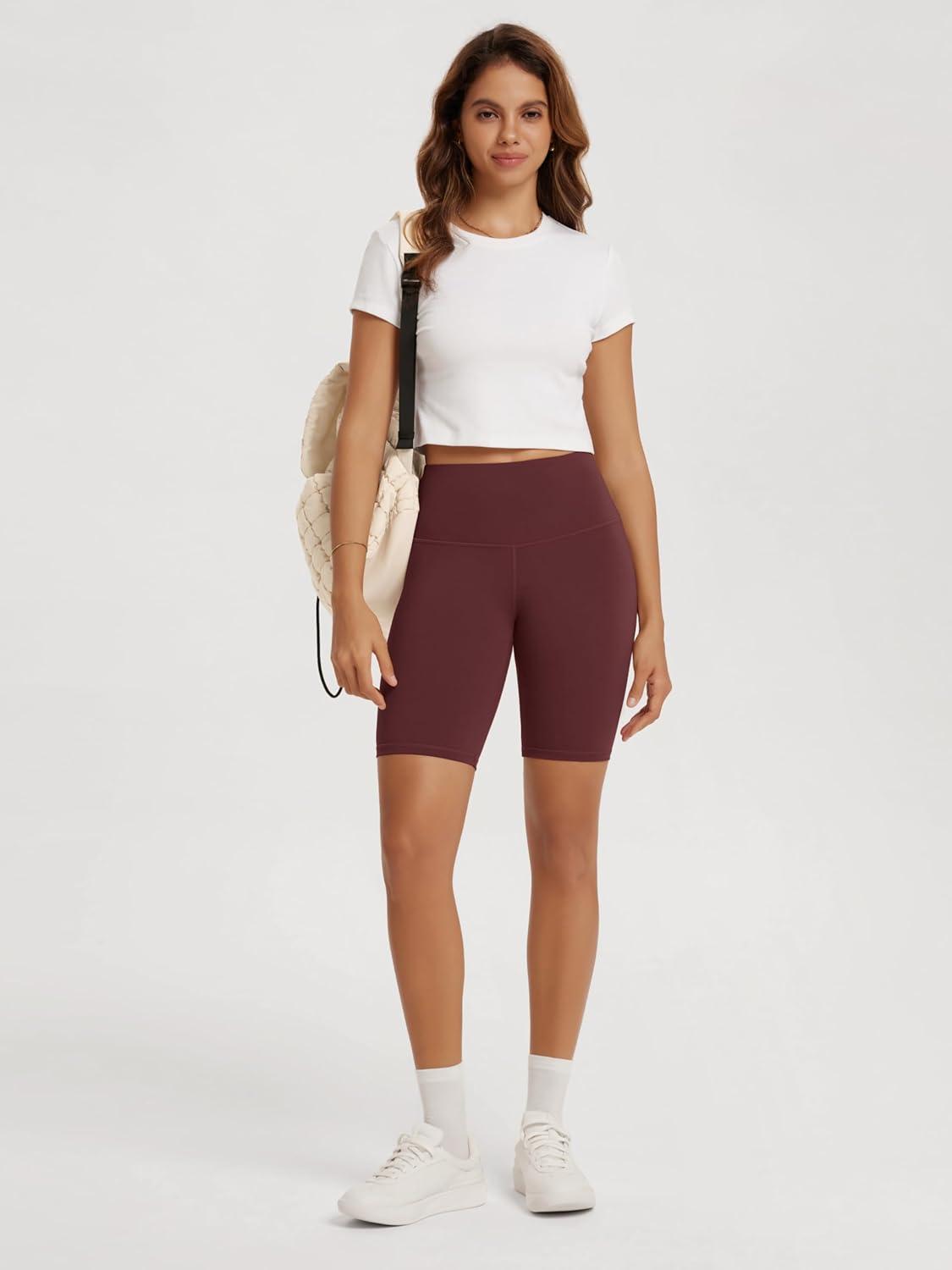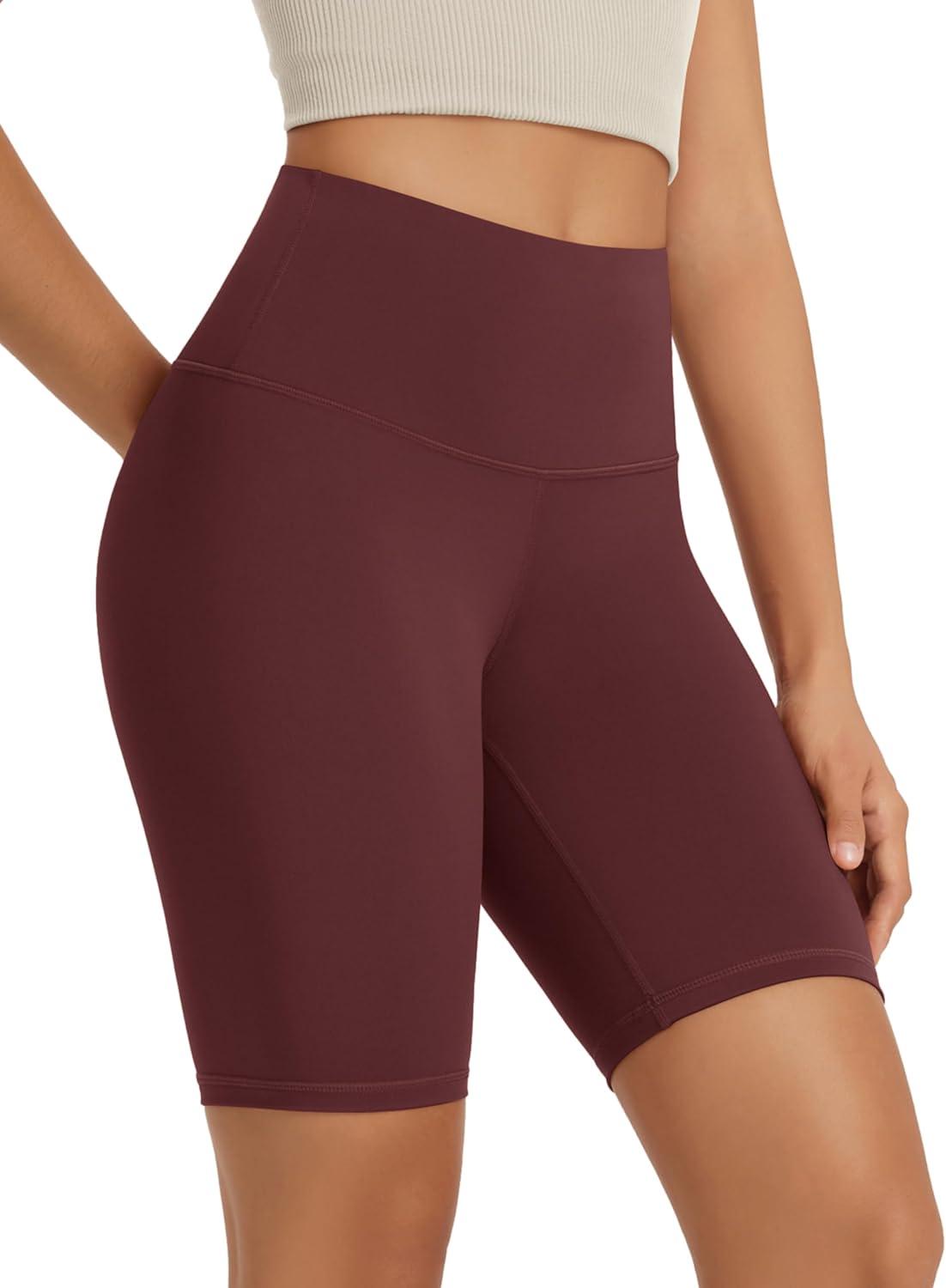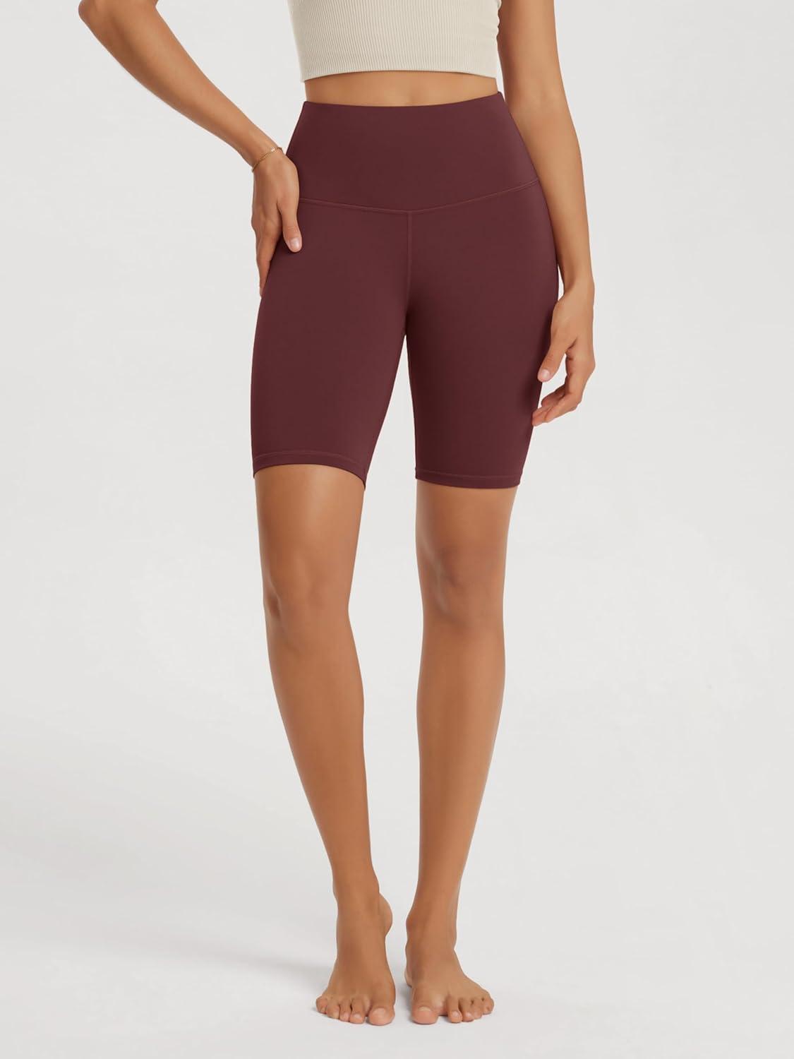 ODODOS High Waist Workout Shorts for Women Tummy Control Workout Gym Athletic Biker Shorts-6″/8″ Inseam(Burgundy)