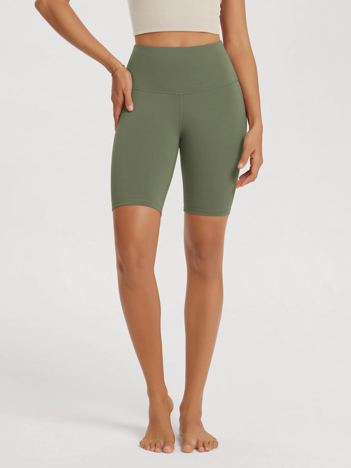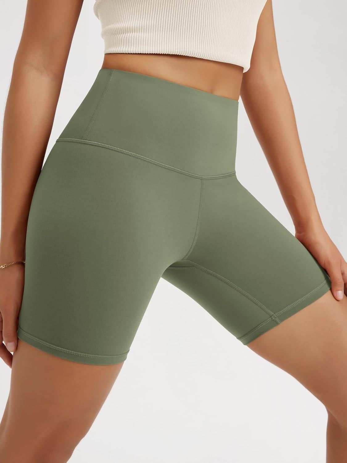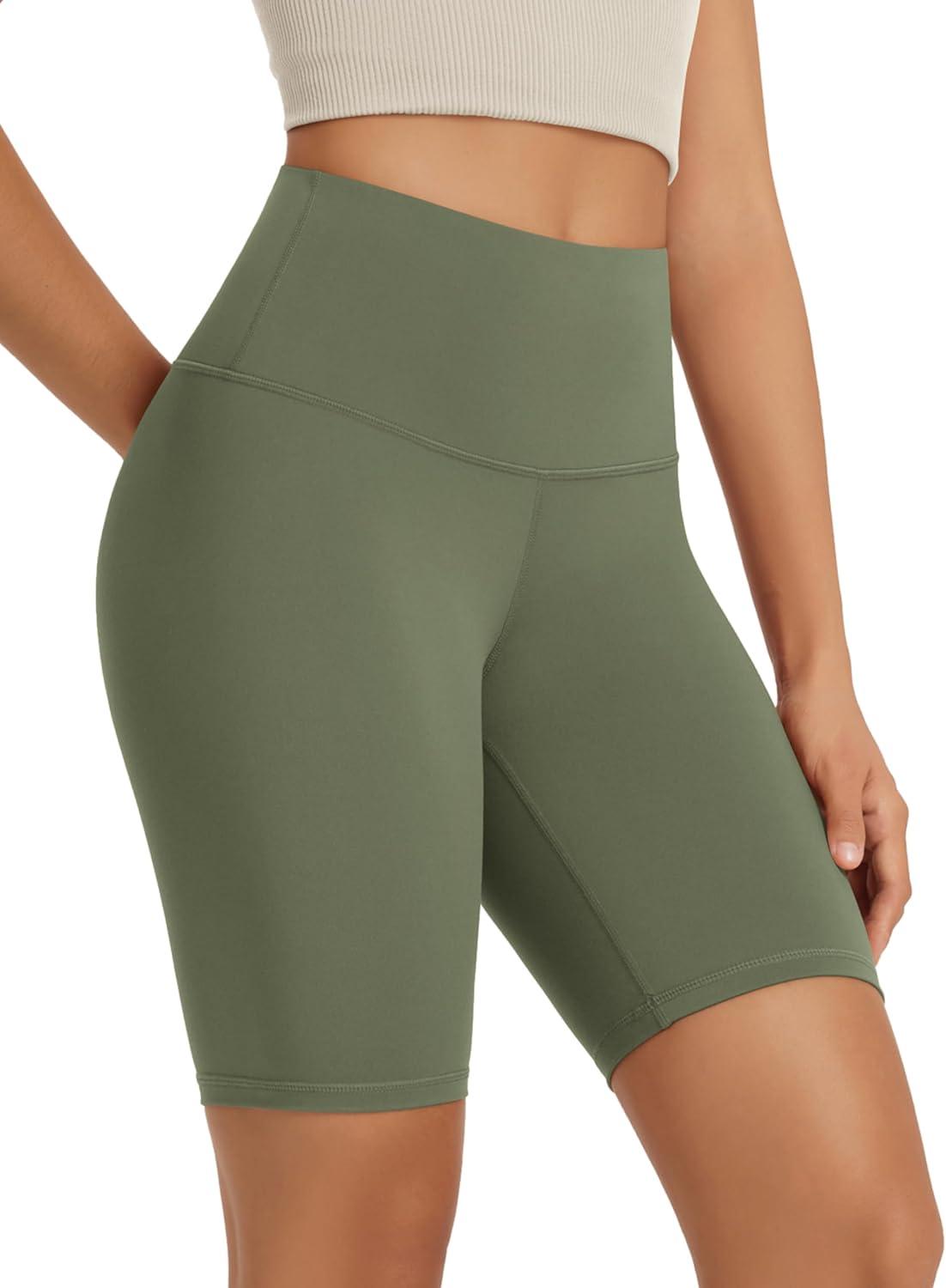 ODODOS High Waist Workout Shorts for Women Tummy Control Workout Gym Athletic Biker Shorts-6″/8″ Inseam(Dark Olive)