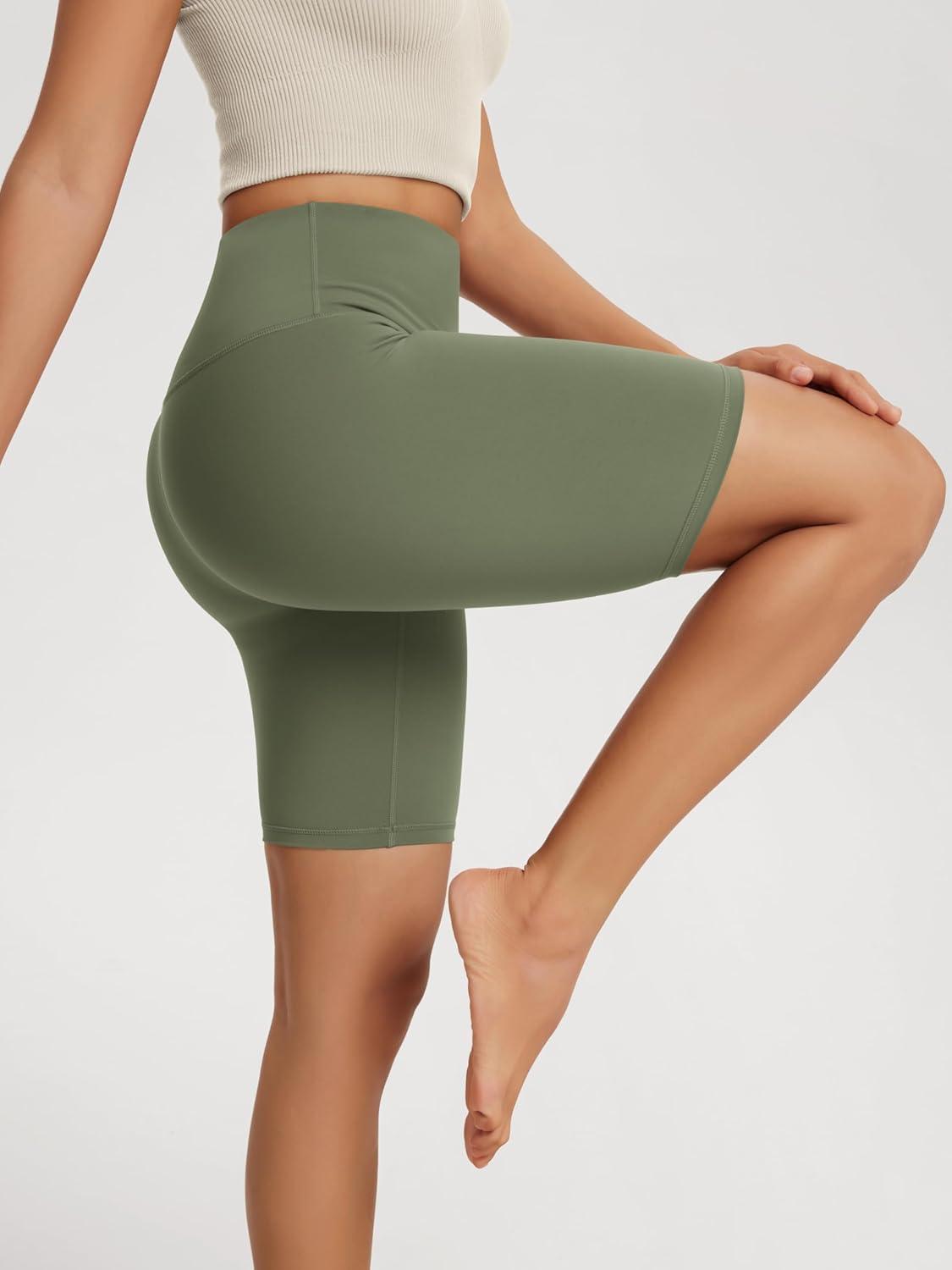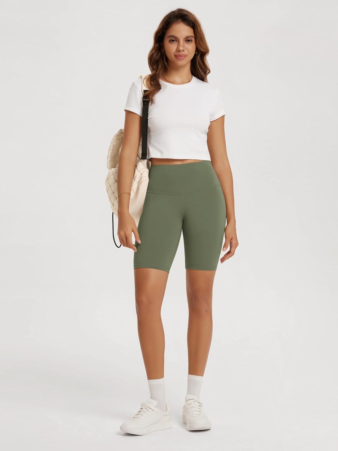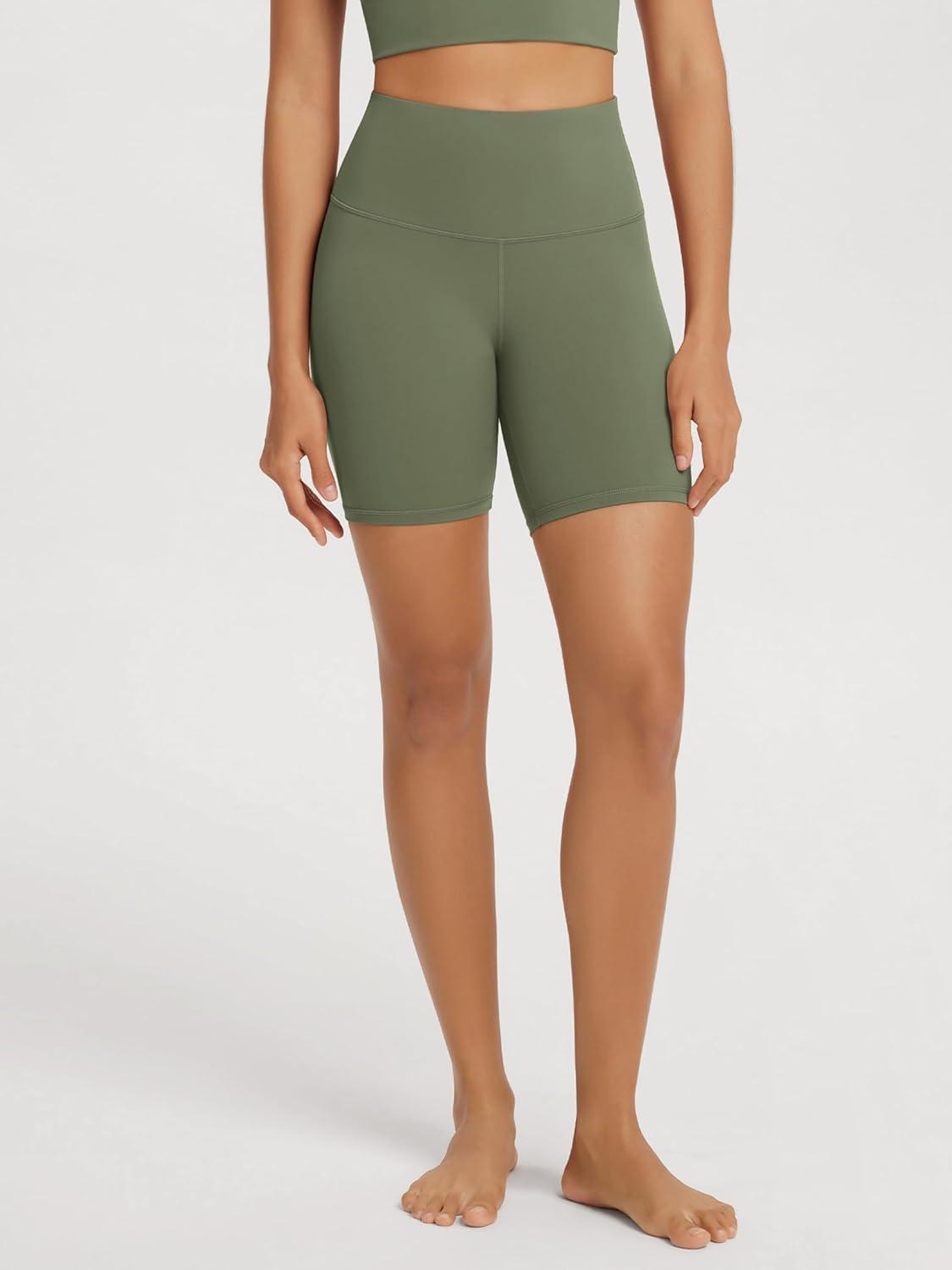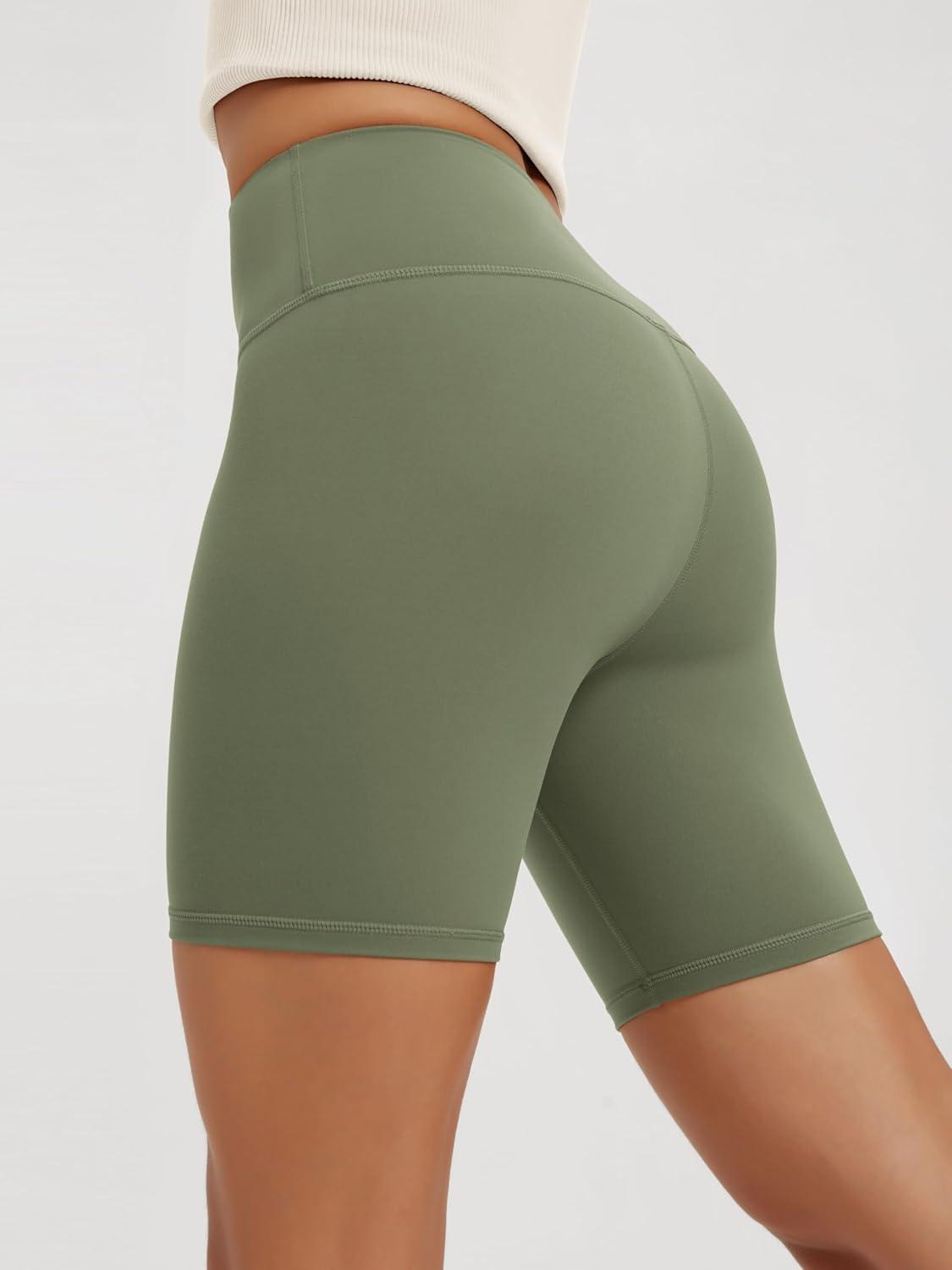 ODODOS High Waist Workout Shorts for Women Tummy Control Workout Gym Athletic Biker Shorts-6″/8″ Inseam(Dark Olive)