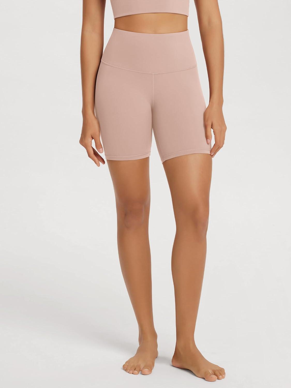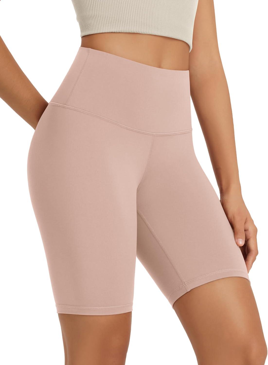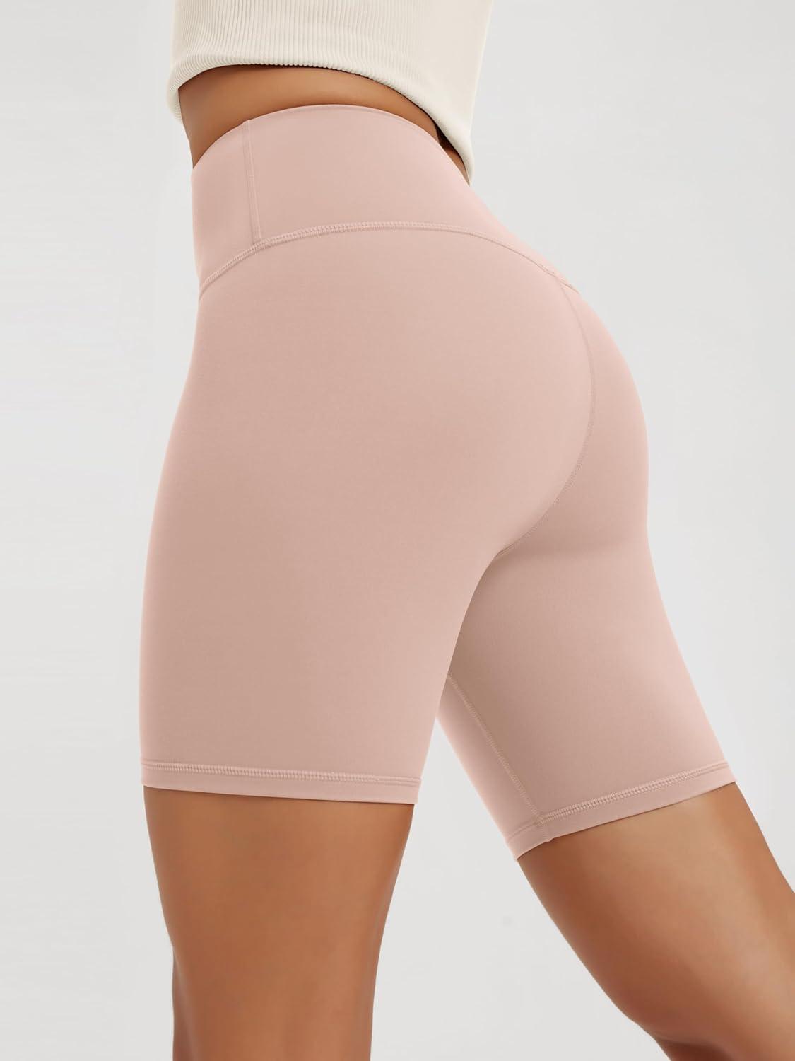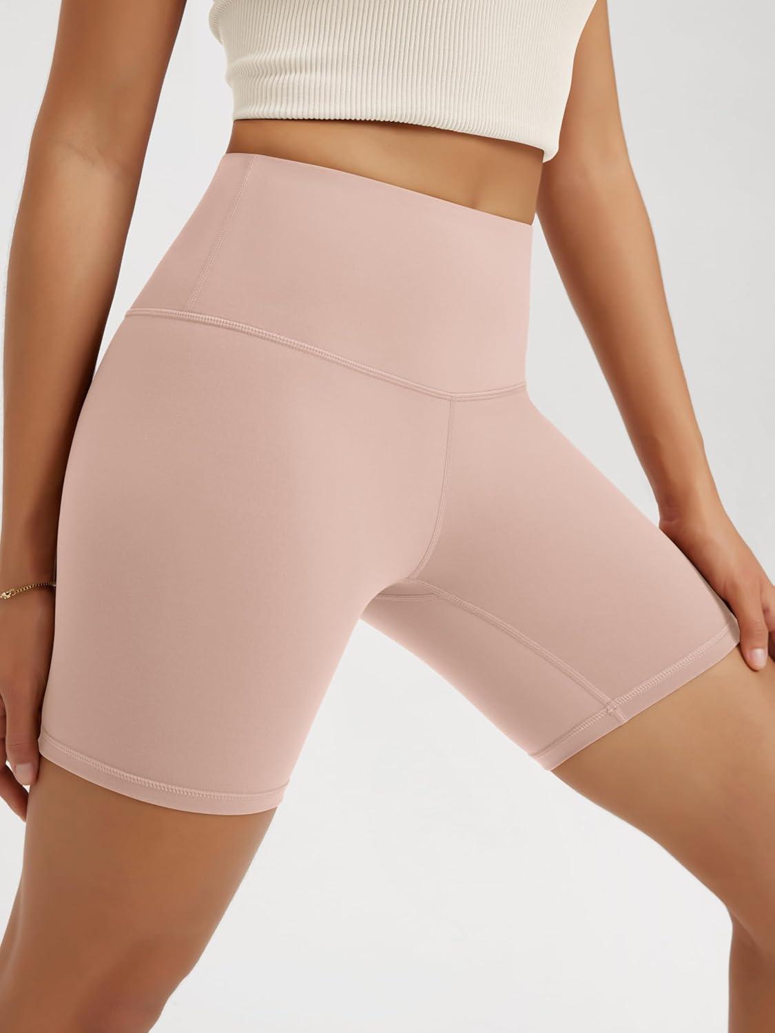ODODOS High Waist Workout Shorts for Women Tummy Control Workout Gym Athletic Biker Shorts-6″/8″ Inseam(Dusty Pink)