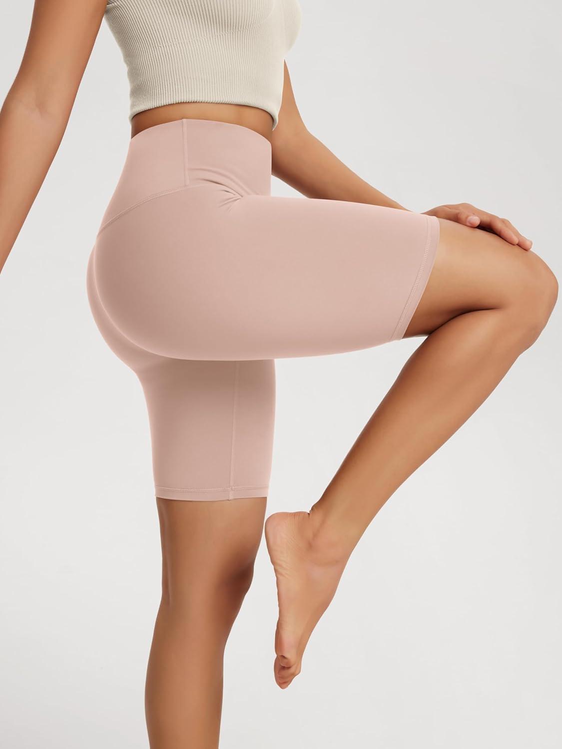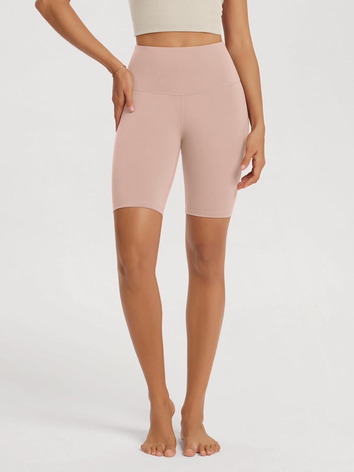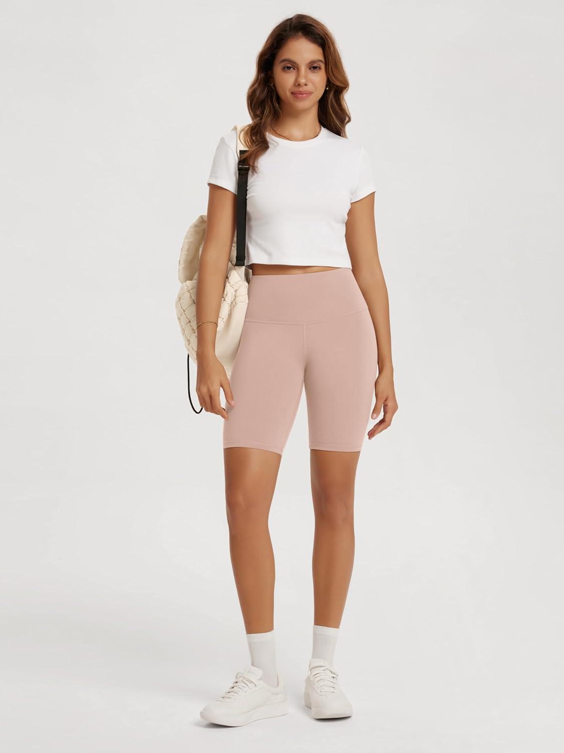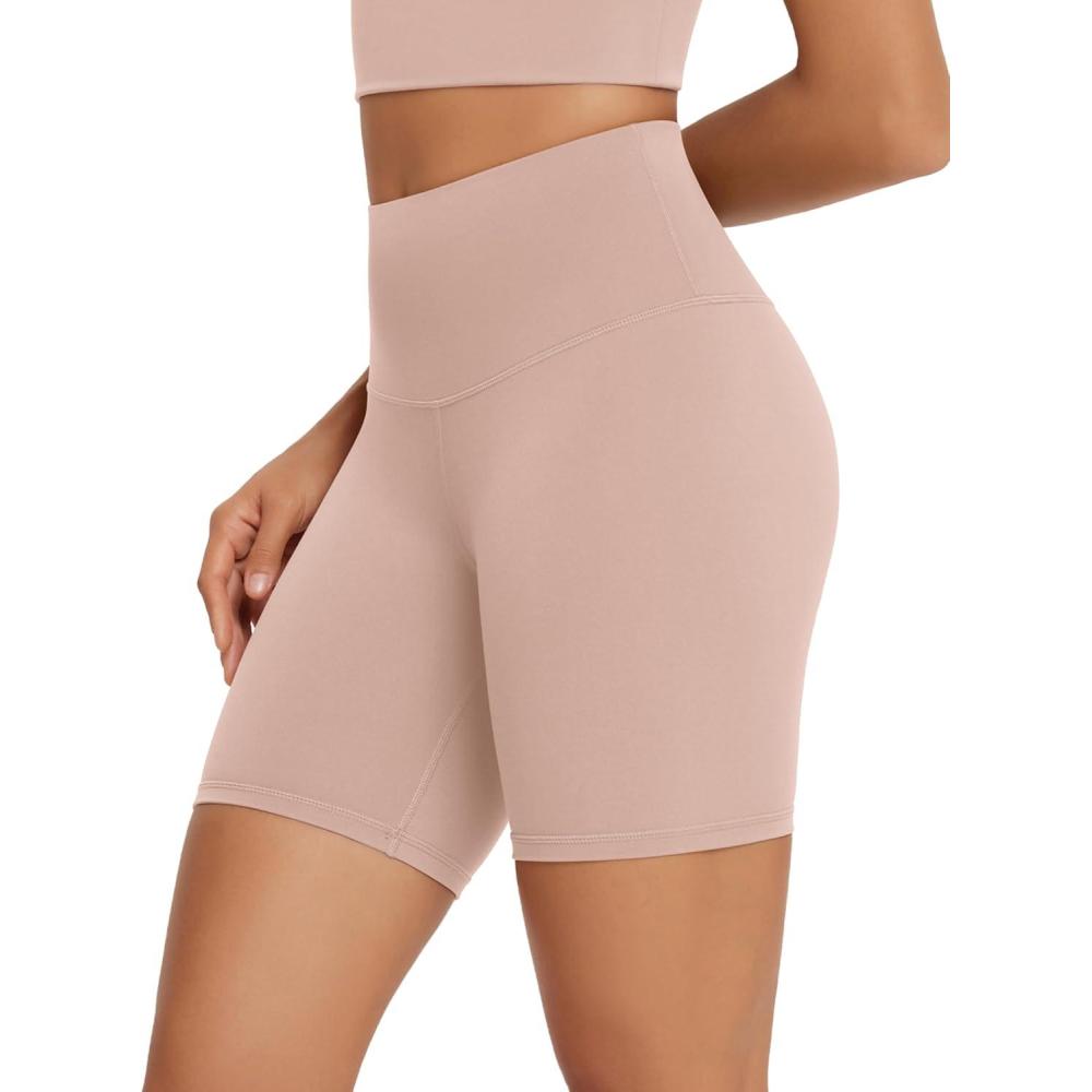 ODODOS High Waist Workout Shorts for Women Tummy Control Workout Gym Athletic Biker Shorts-6″/8″ Inseam(Dusty Pink)