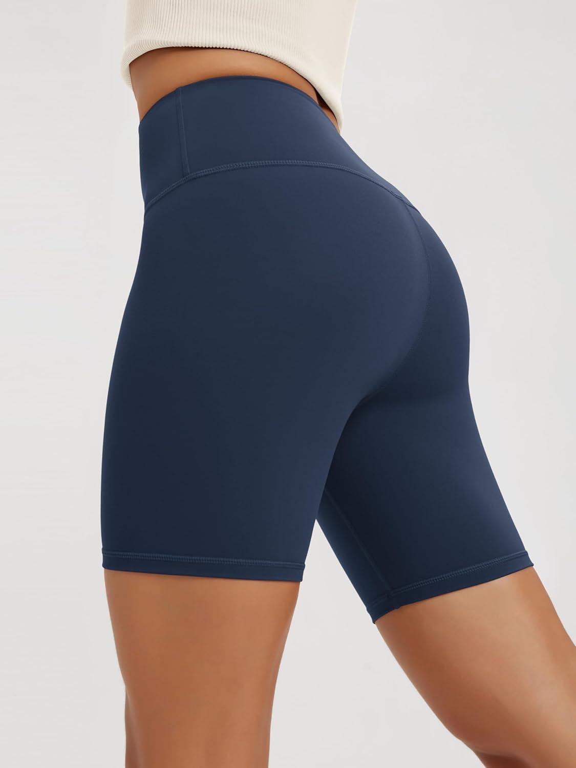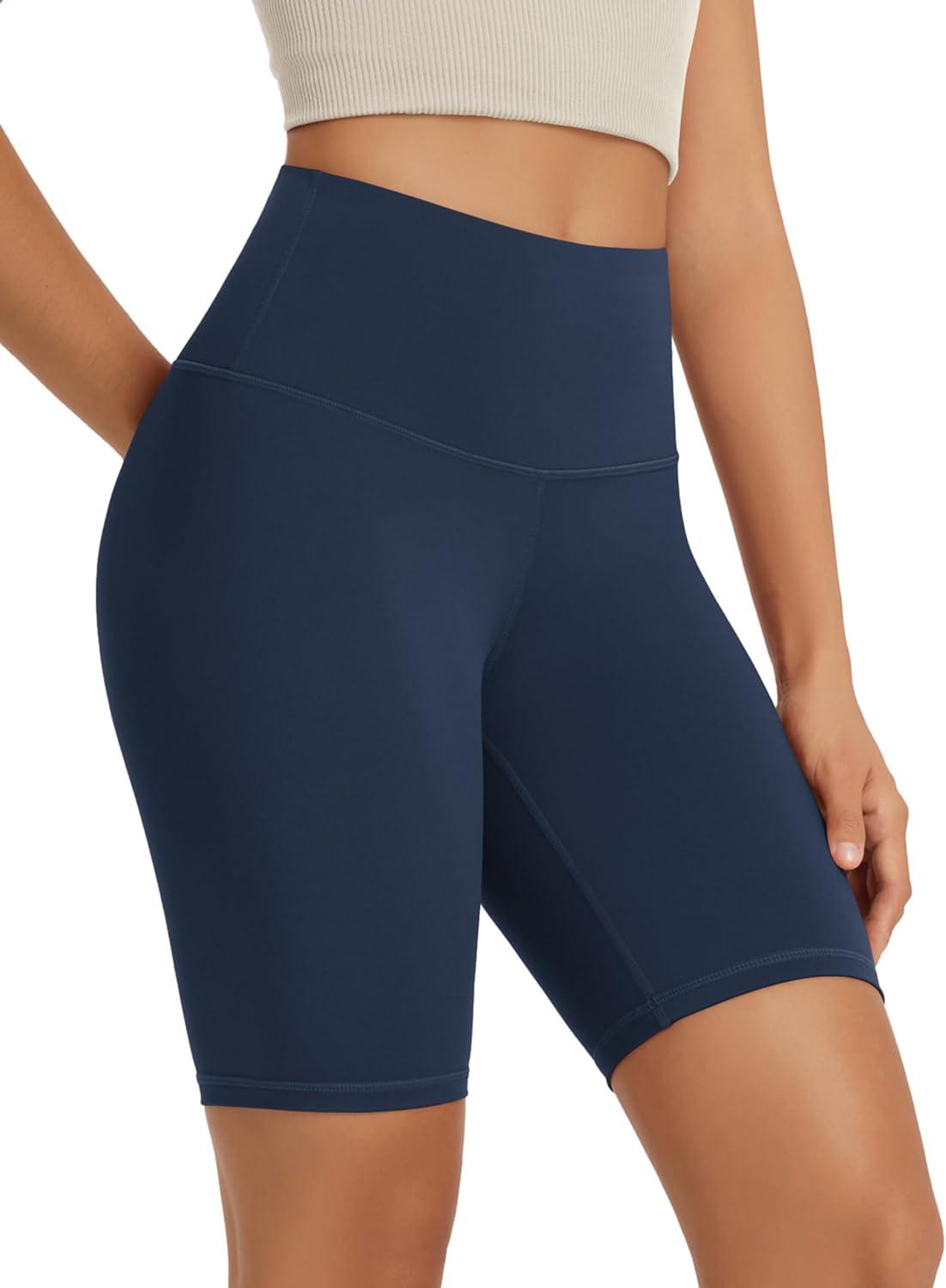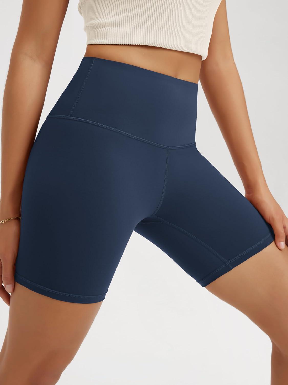 ODODOS High Waist Workout Shorts for Women Tummy Control Workout Gym Athletic Biker Shorts-6″/8″ Inseam(Navy)