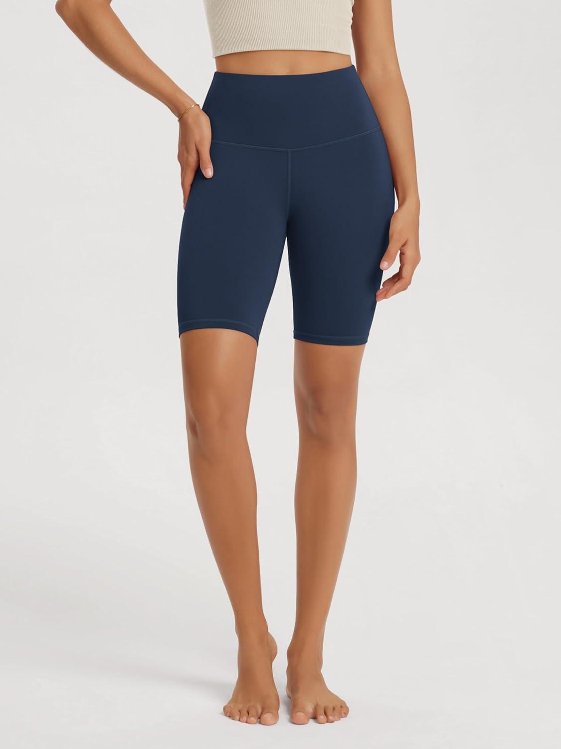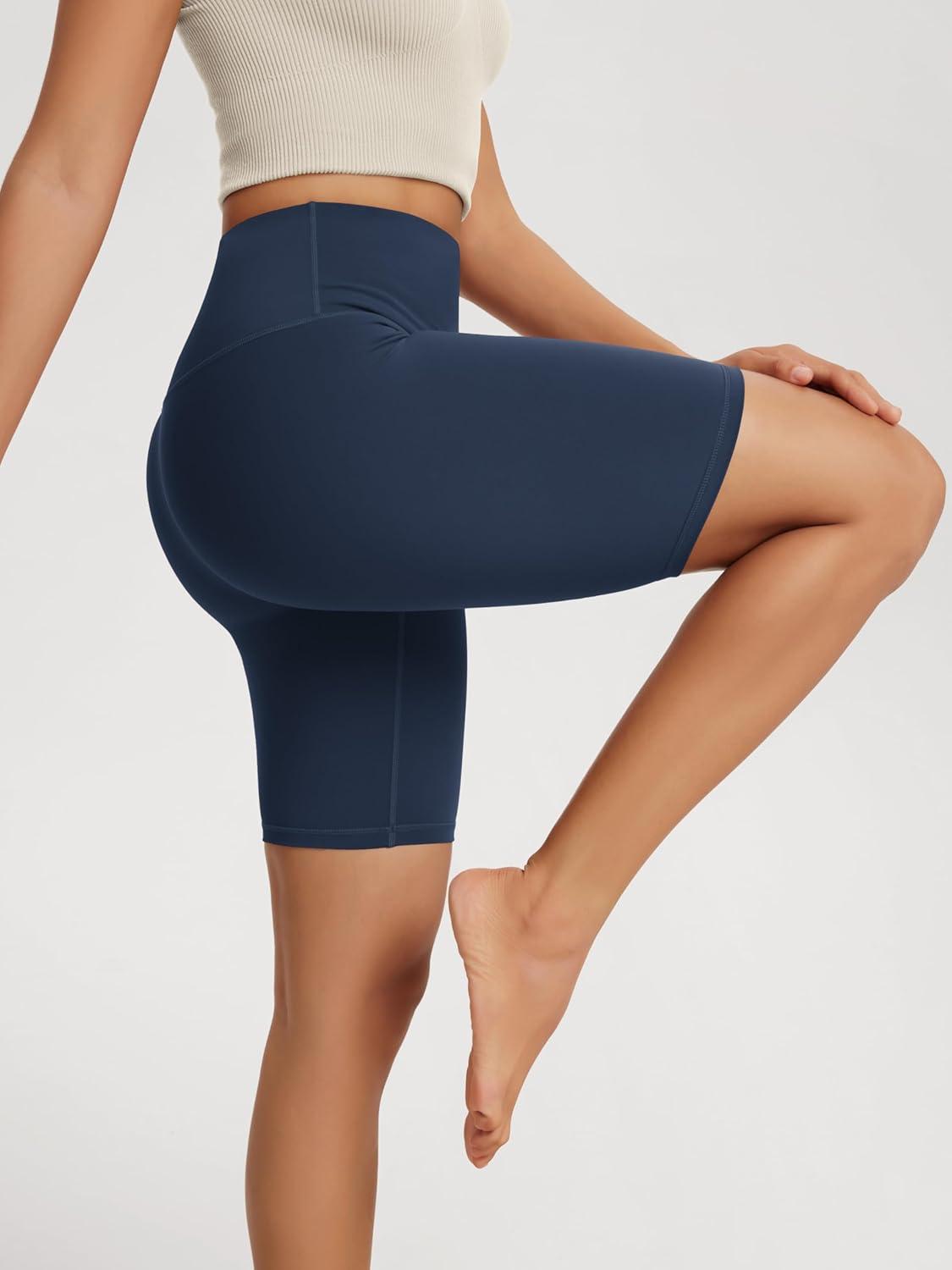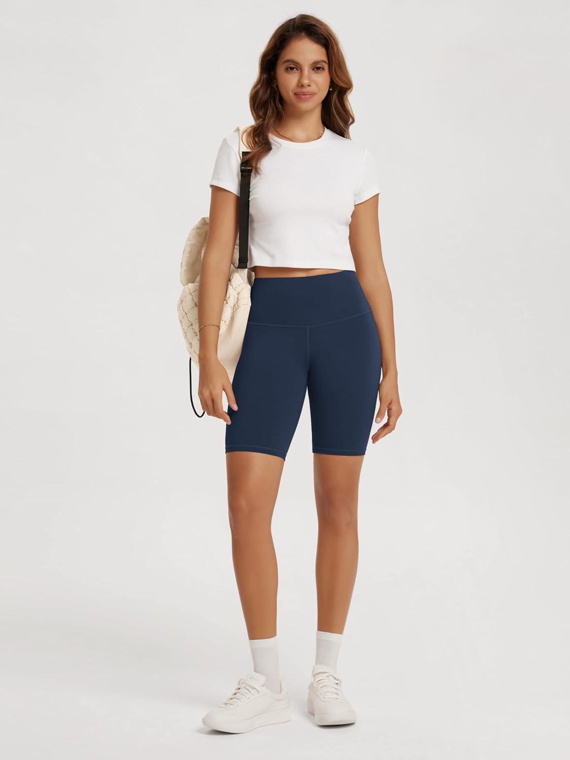 ODODOS High Waist Workout Shorts for Women Tummy Control Workout Gym Athletic Biker Shorts-6″/8″ Inseam(Navy)