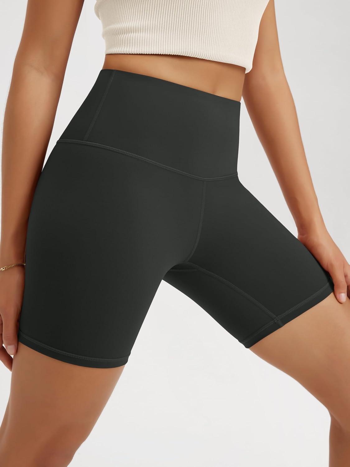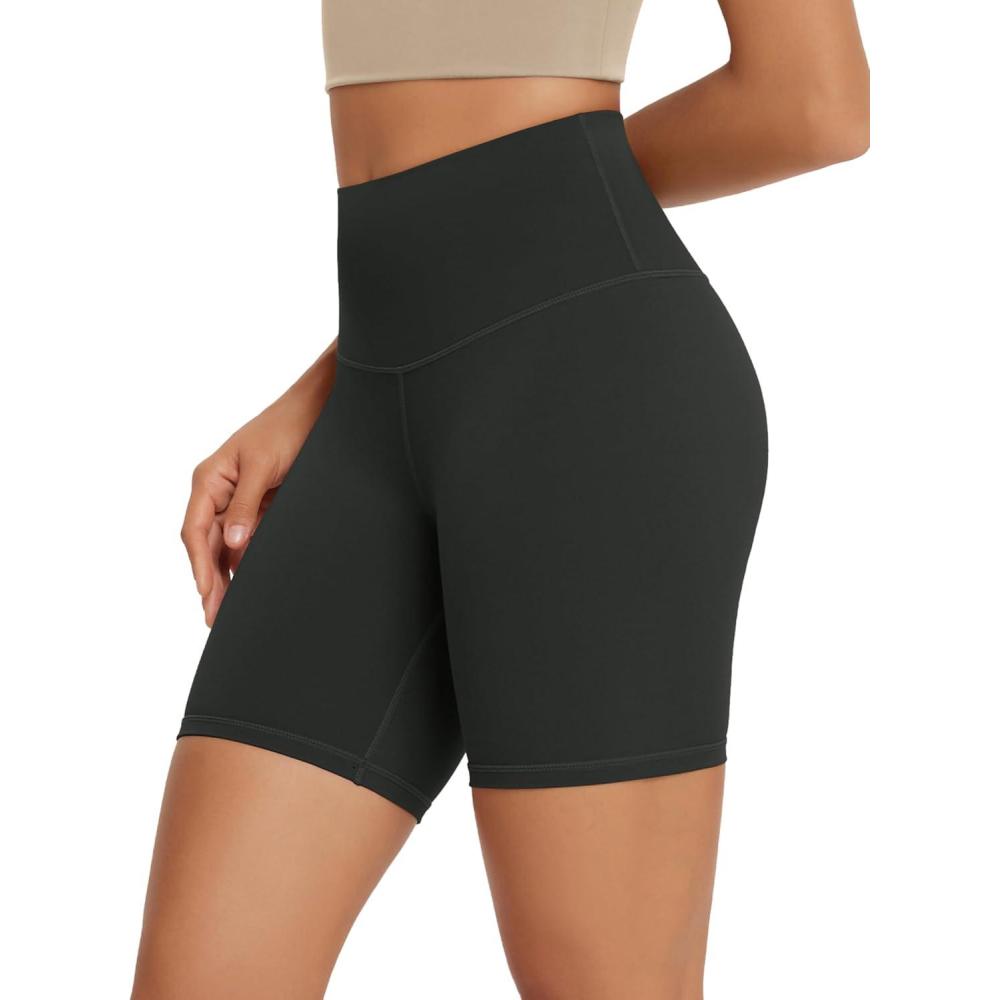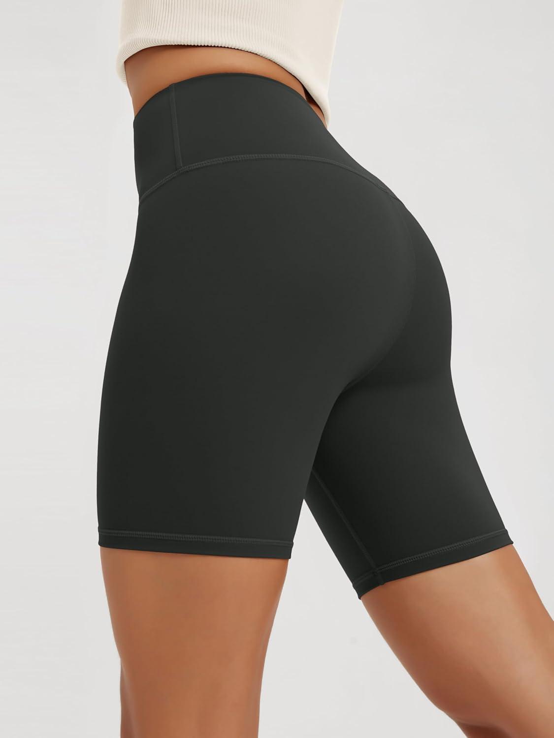 ODODOS High Waist Workout Shorts for Women Tummy Control Workout Gym Athletic Biker Shorts-6″/8″ Inseam(Onyx Black Grey)