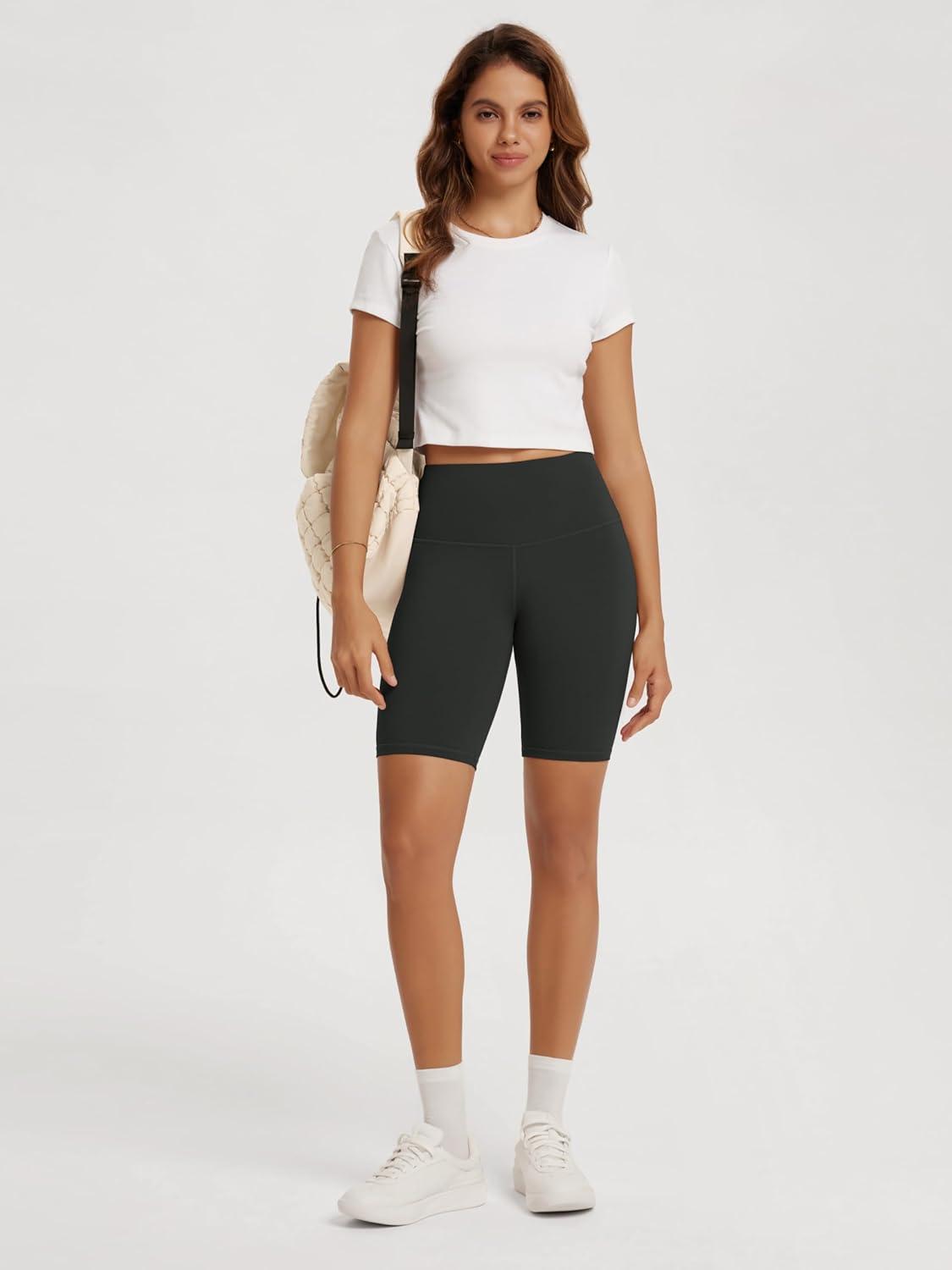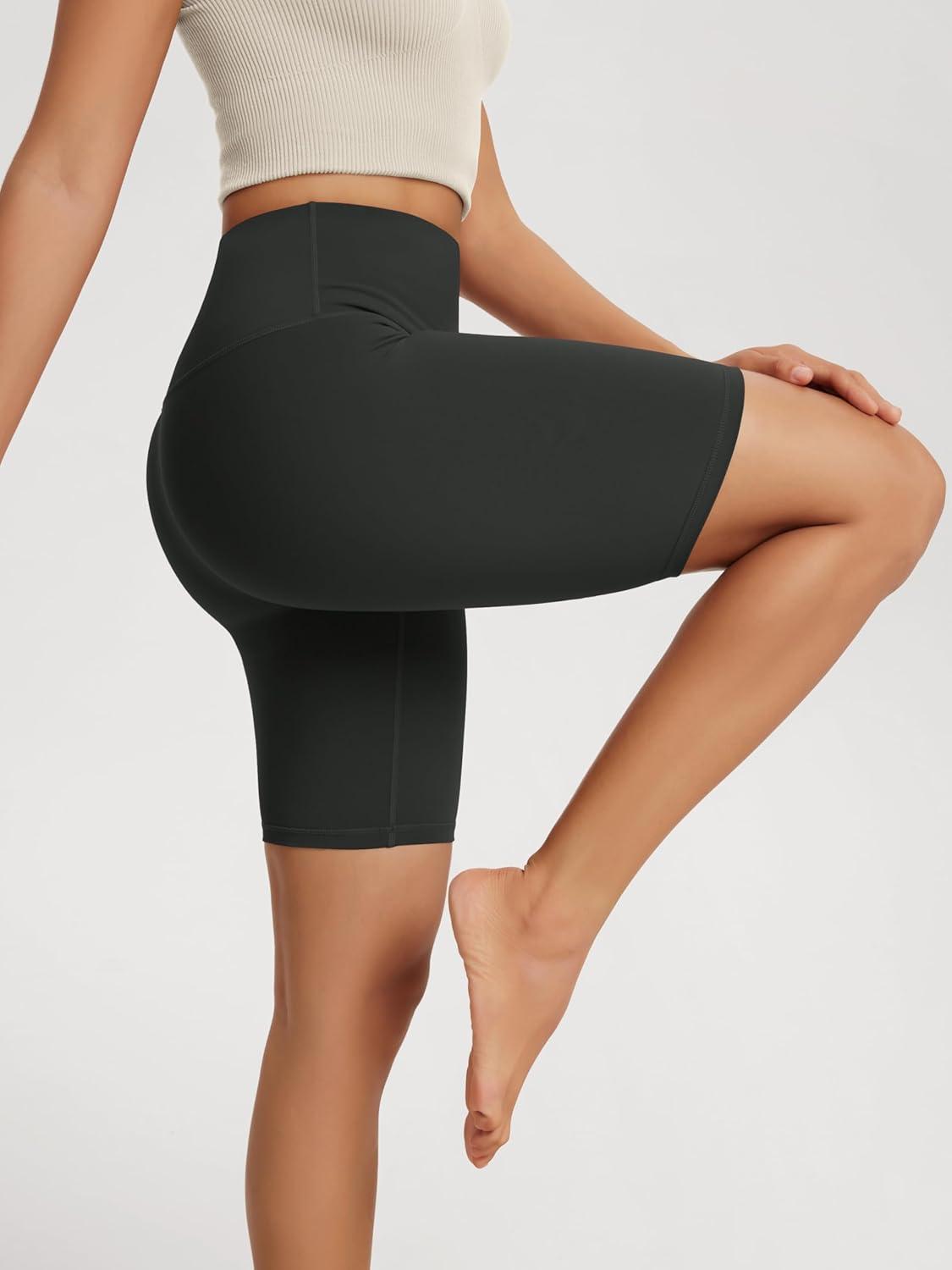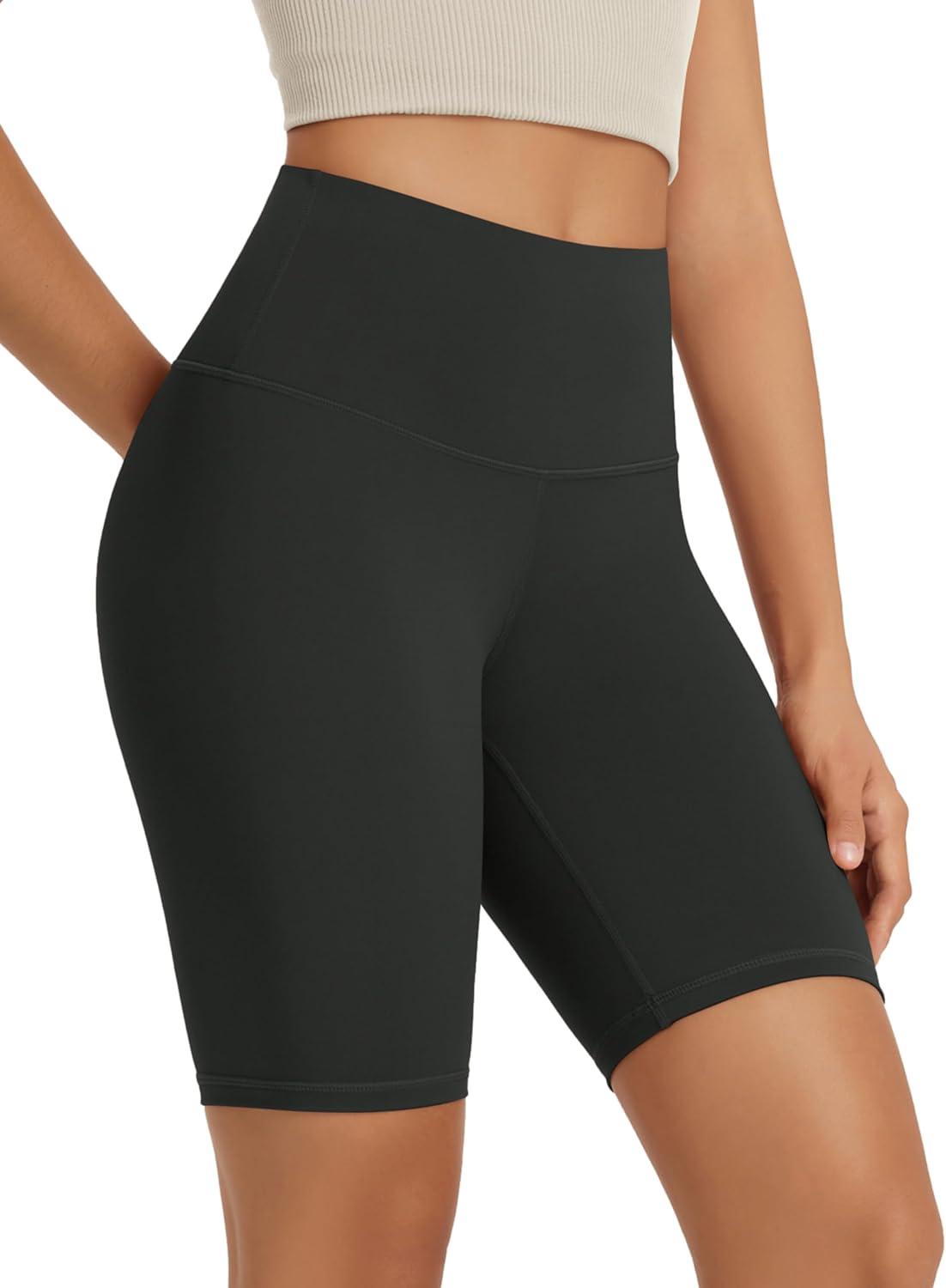 ODODOS High Waist Workout Shorts for Women Tummy Control Workout Gym Athletic Biker Shorts-6″/8″ Inseam(Onyx Black Grey)