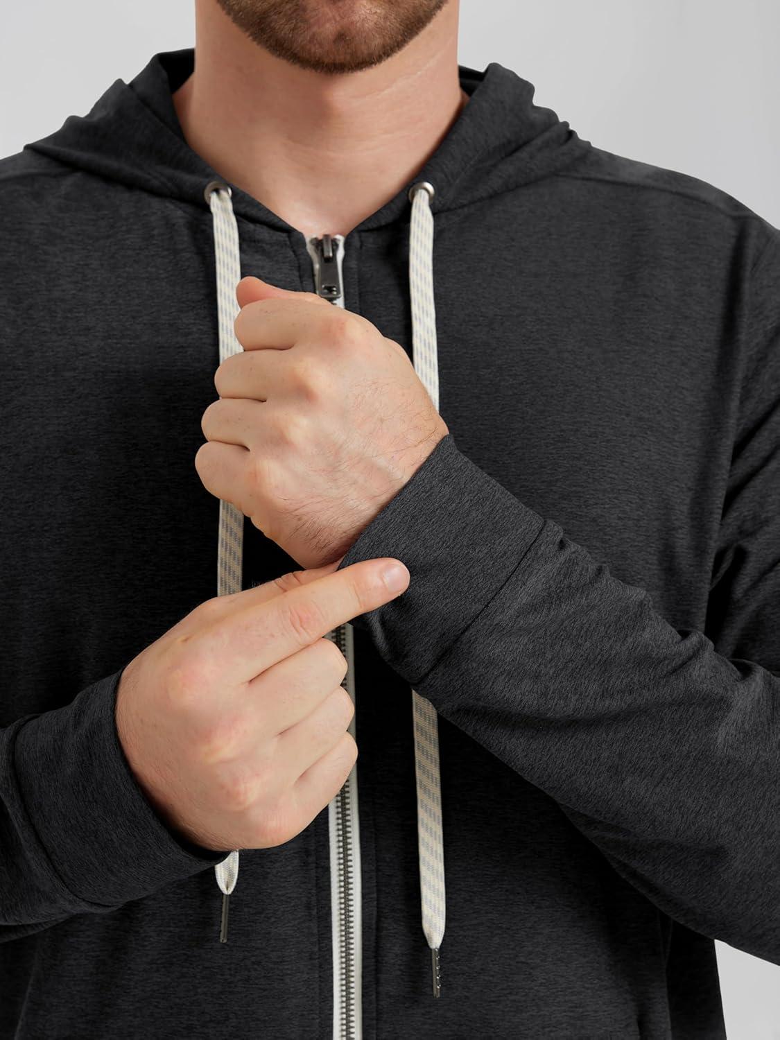ODODOS Men’s Full-Zip Hoodie – Stratum Tech Ultra Soft Outfit UPF 50+ Performance Hooded Jacket with Pockets(Black Heather)