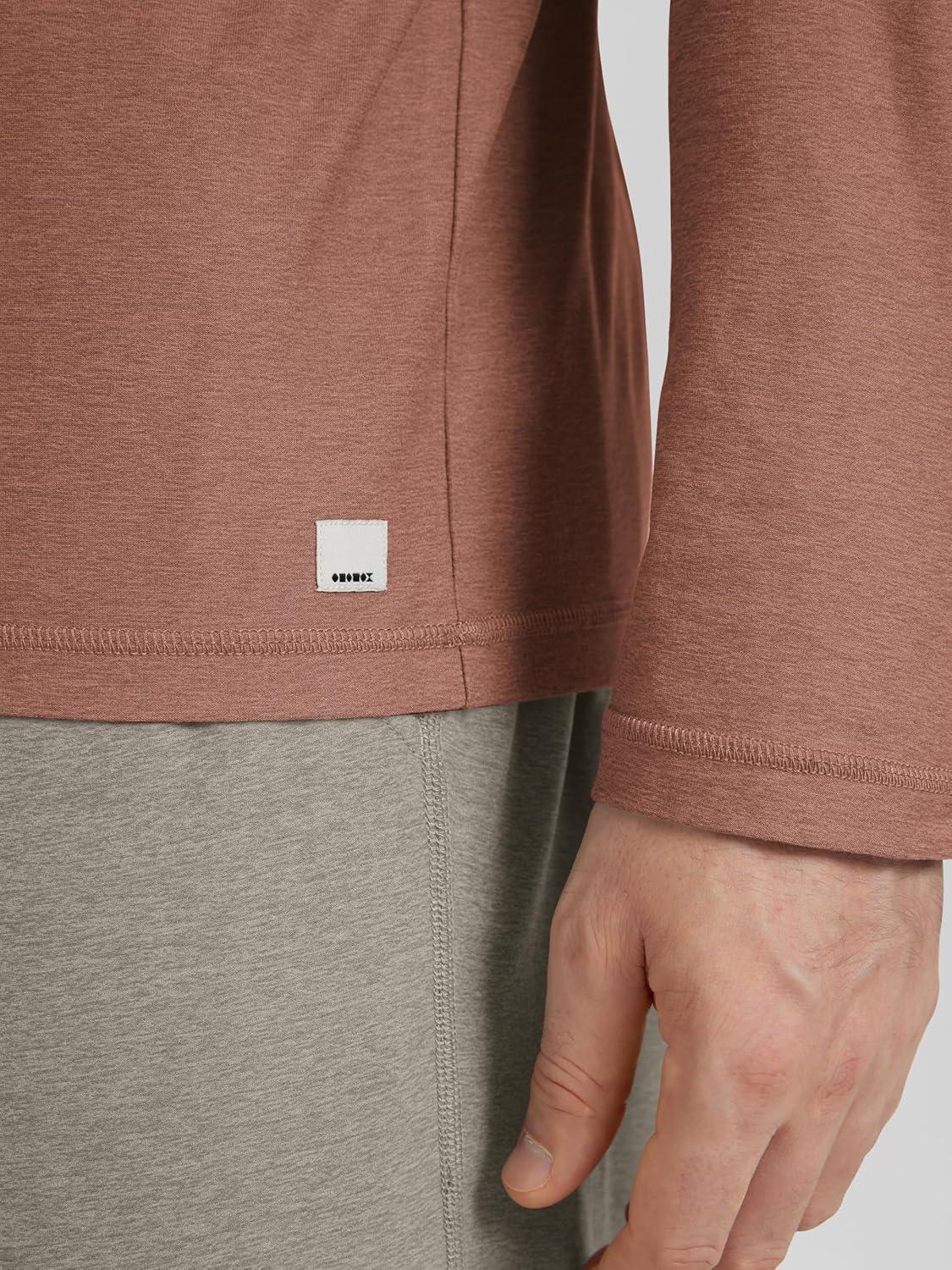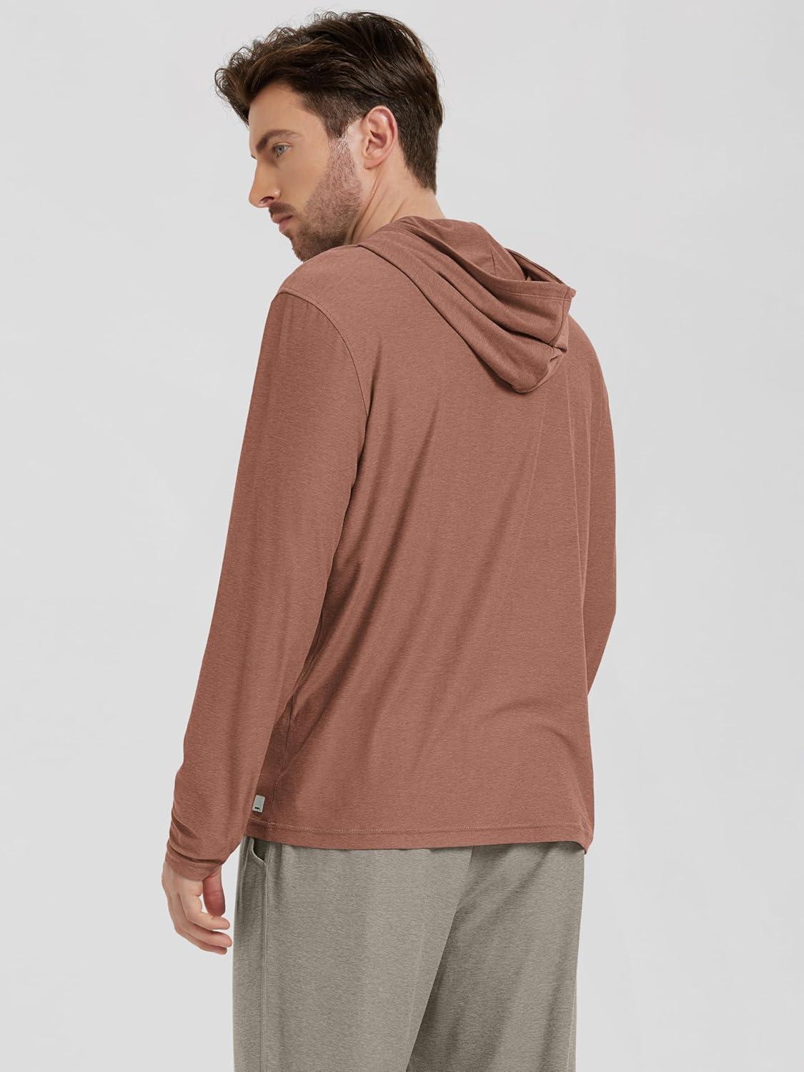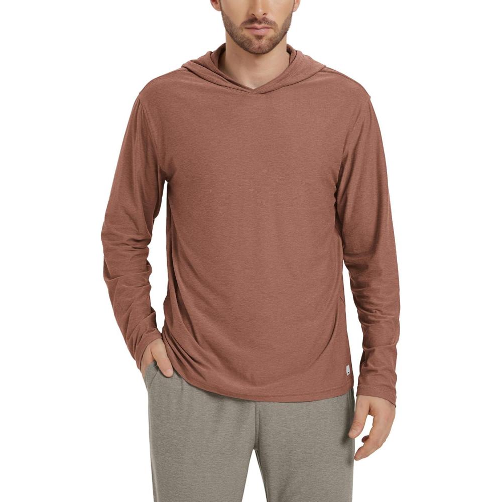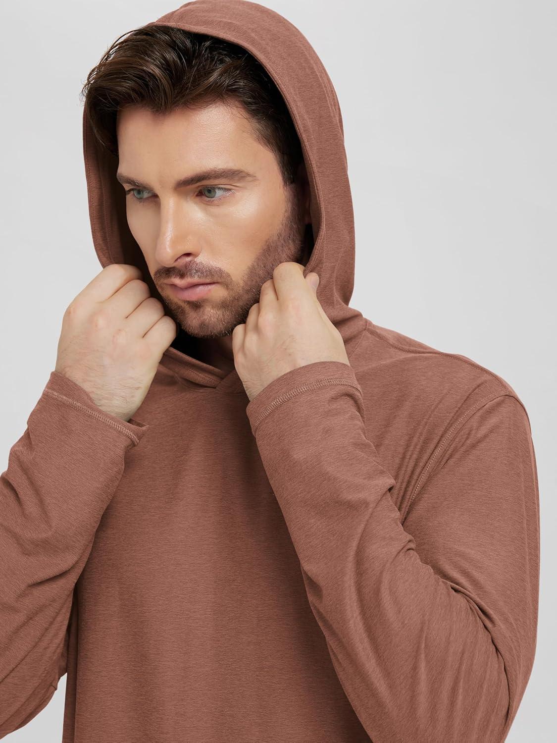 ODODOS Men’s Long Sleeve Hoodie – Stratum Tech Performance Pullover – Ultra Soft Moisture Wicking UPF 50+ Top(Tamarind Heather)