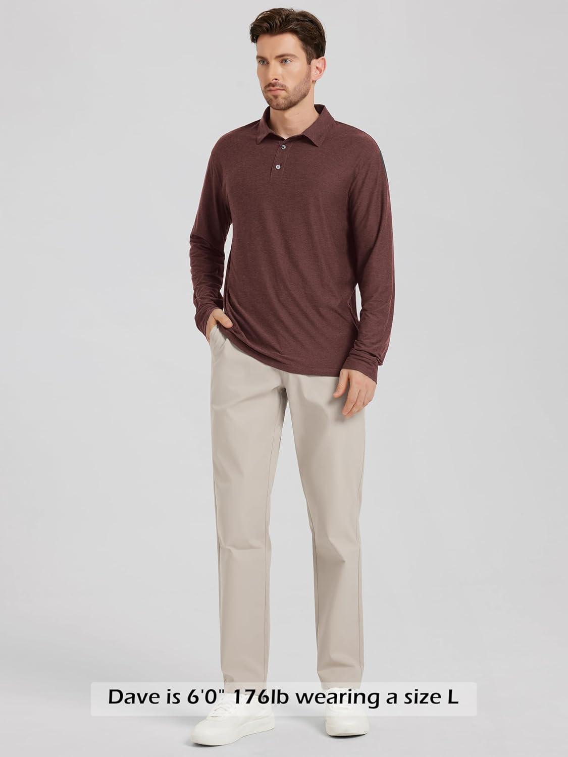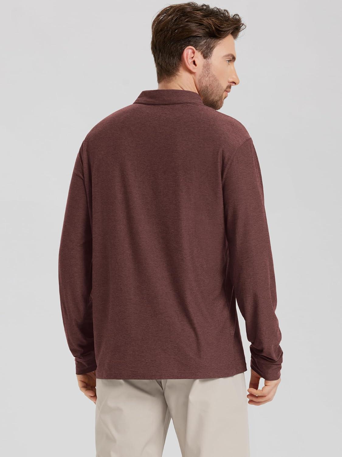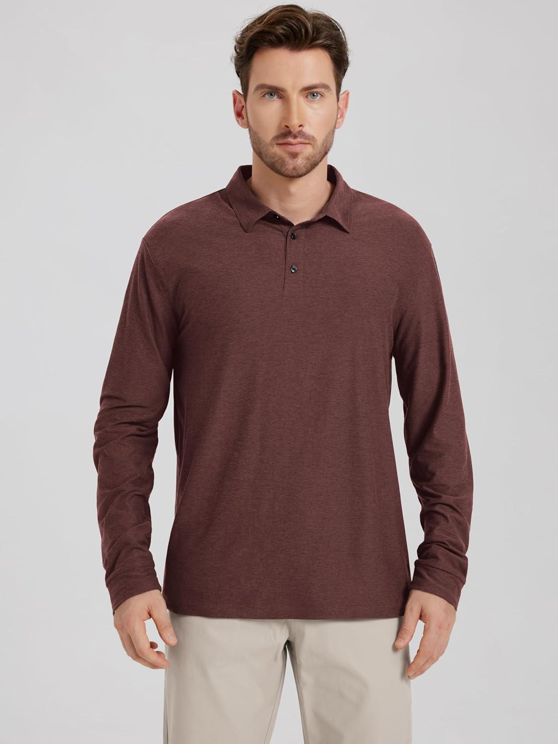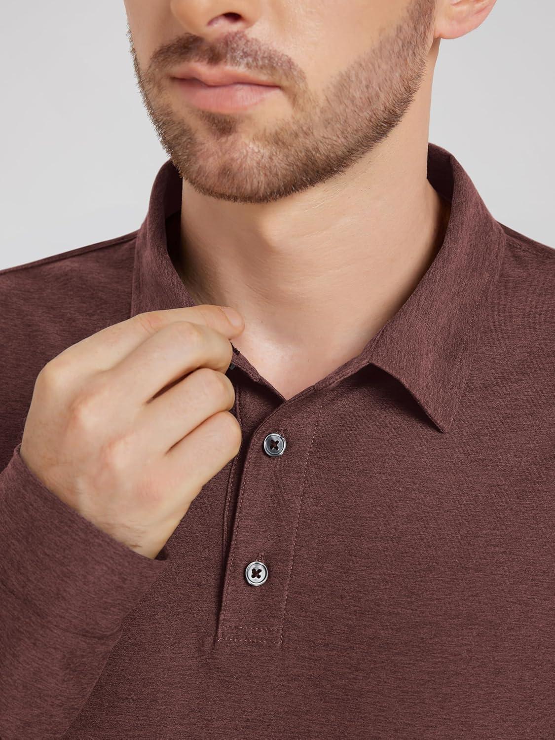 ODODOS Men’s Performance Long Sleeve Polo- Stratum Tech Golf T-Shirts Ultra Soft Moisture Wicking UPF 50+ Casual Tops(Tamarind Heather)