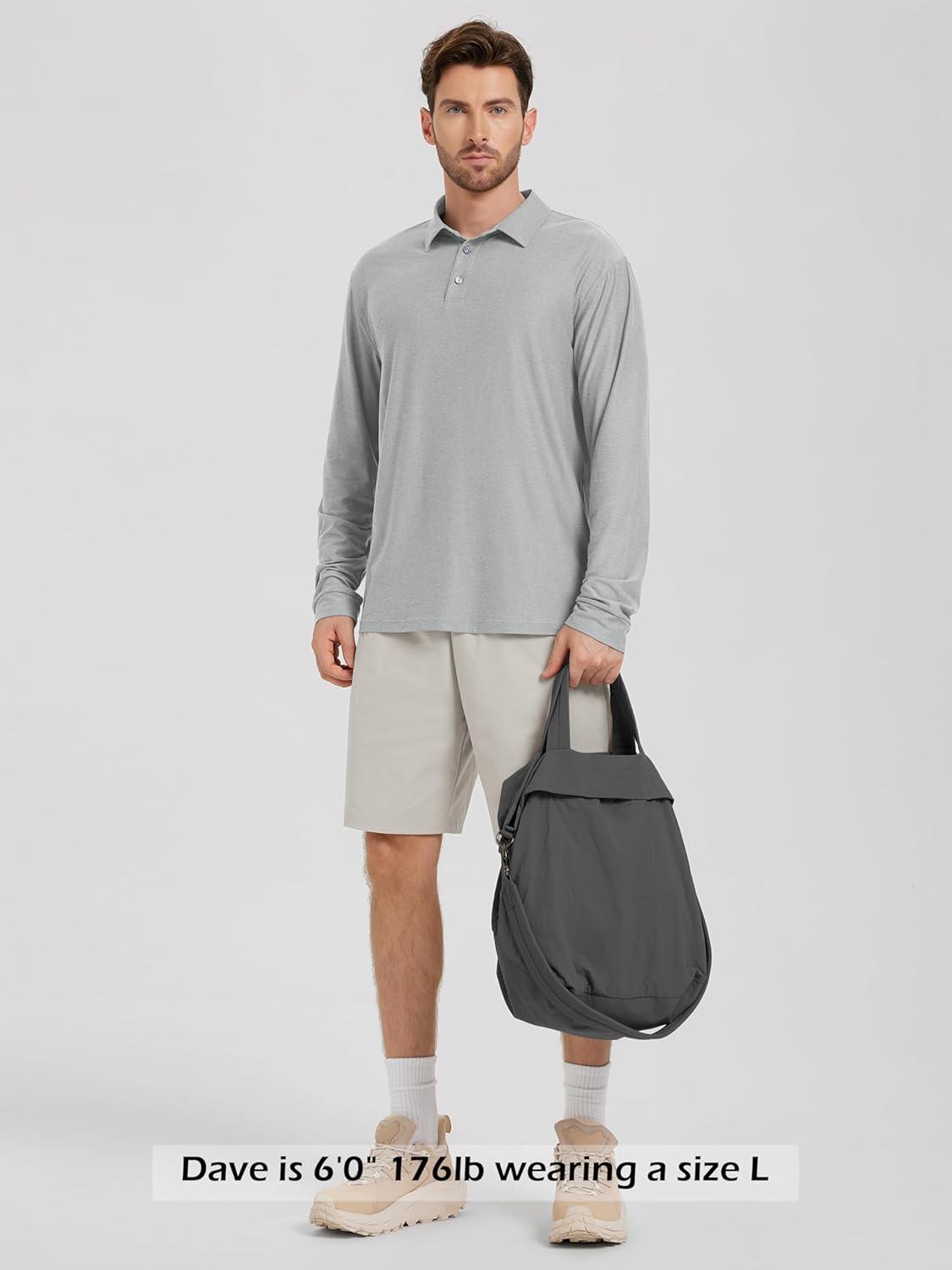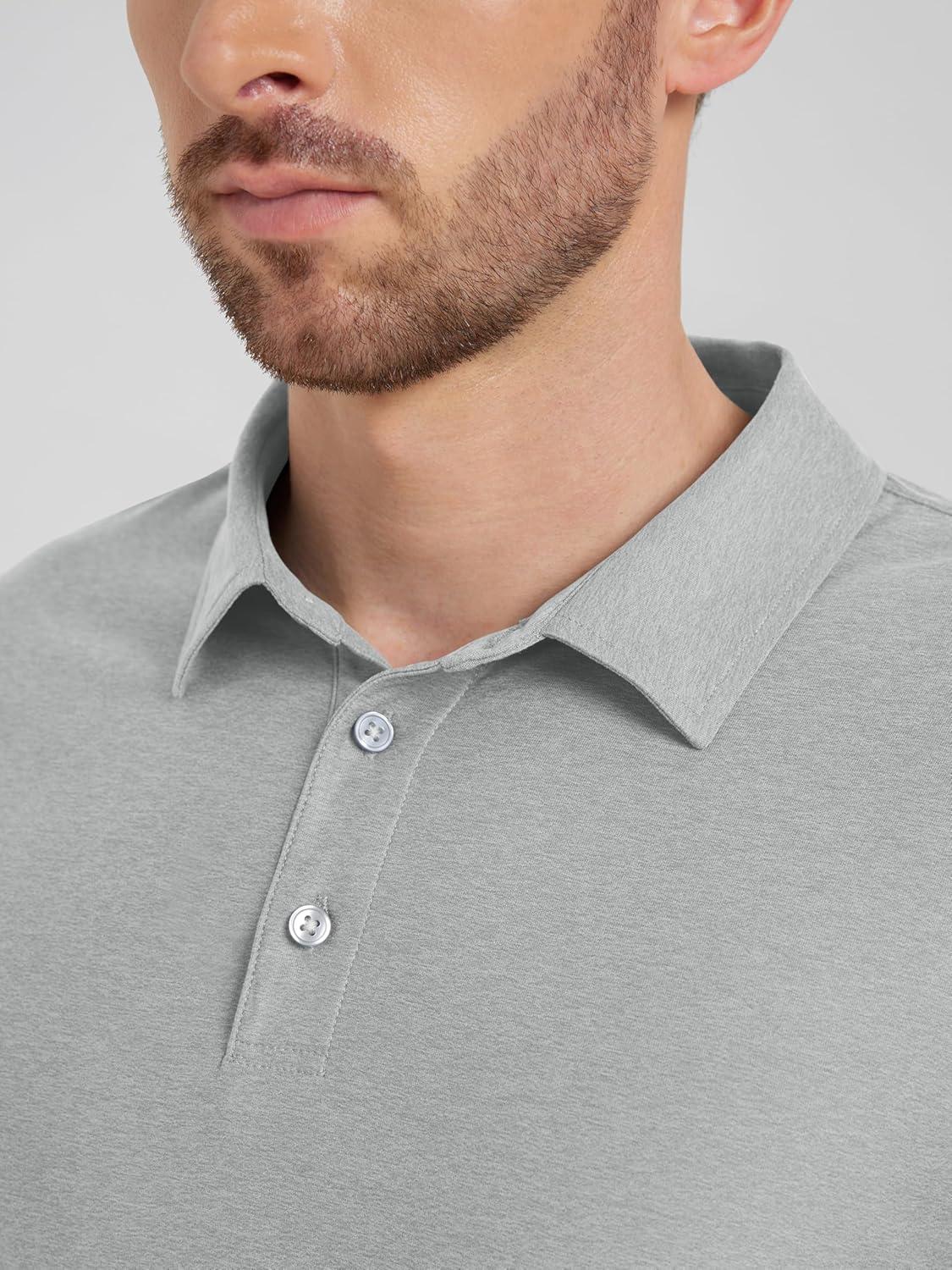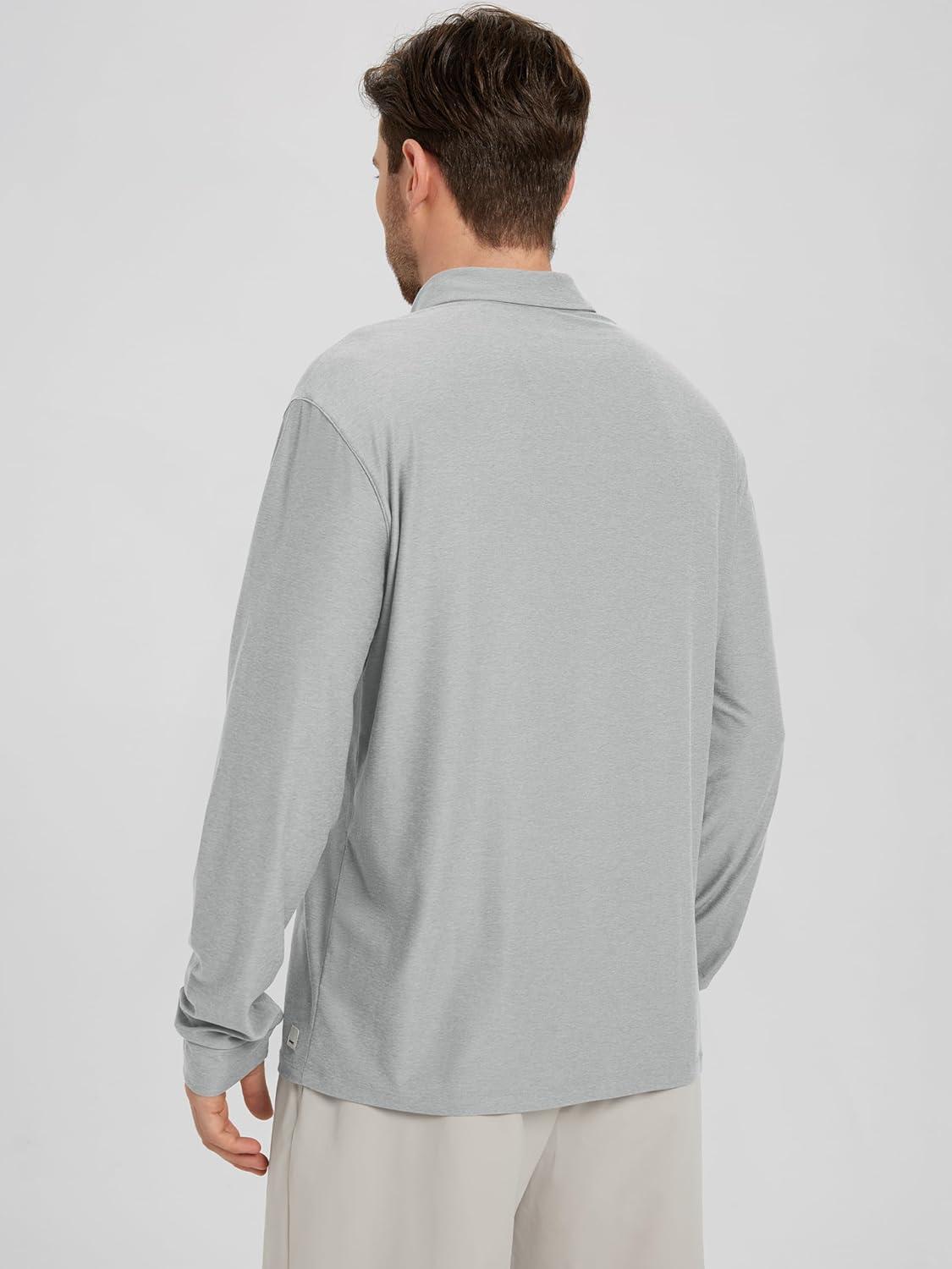 ODODOS Men’s Performance Long Sleeve Polo- Stratum Tech Golf T-Shirts Ultra Soft Moisture Wicking UPF 50+ Casual Tops(Pale Grey Heather)
