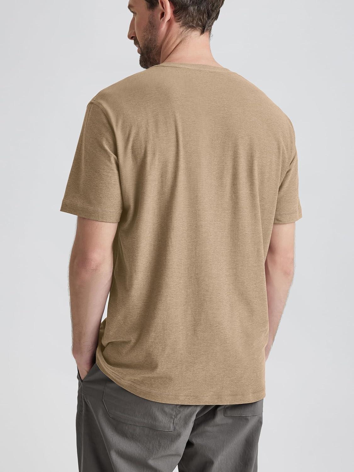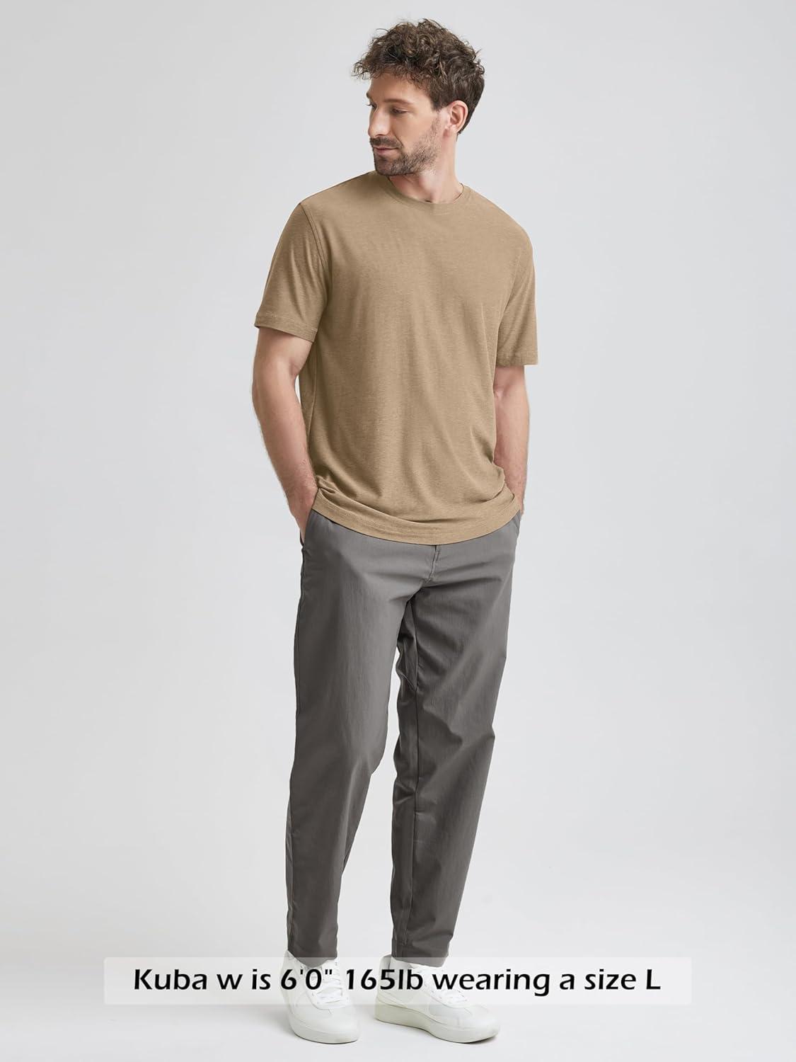 ODODOS Men’s Performance T-Shirt – Stratum Tech Tee, Ultra Soft Moisture Wicking UPF 50+ Fitness Shirts – The Ascent Series(Khaki Heather)