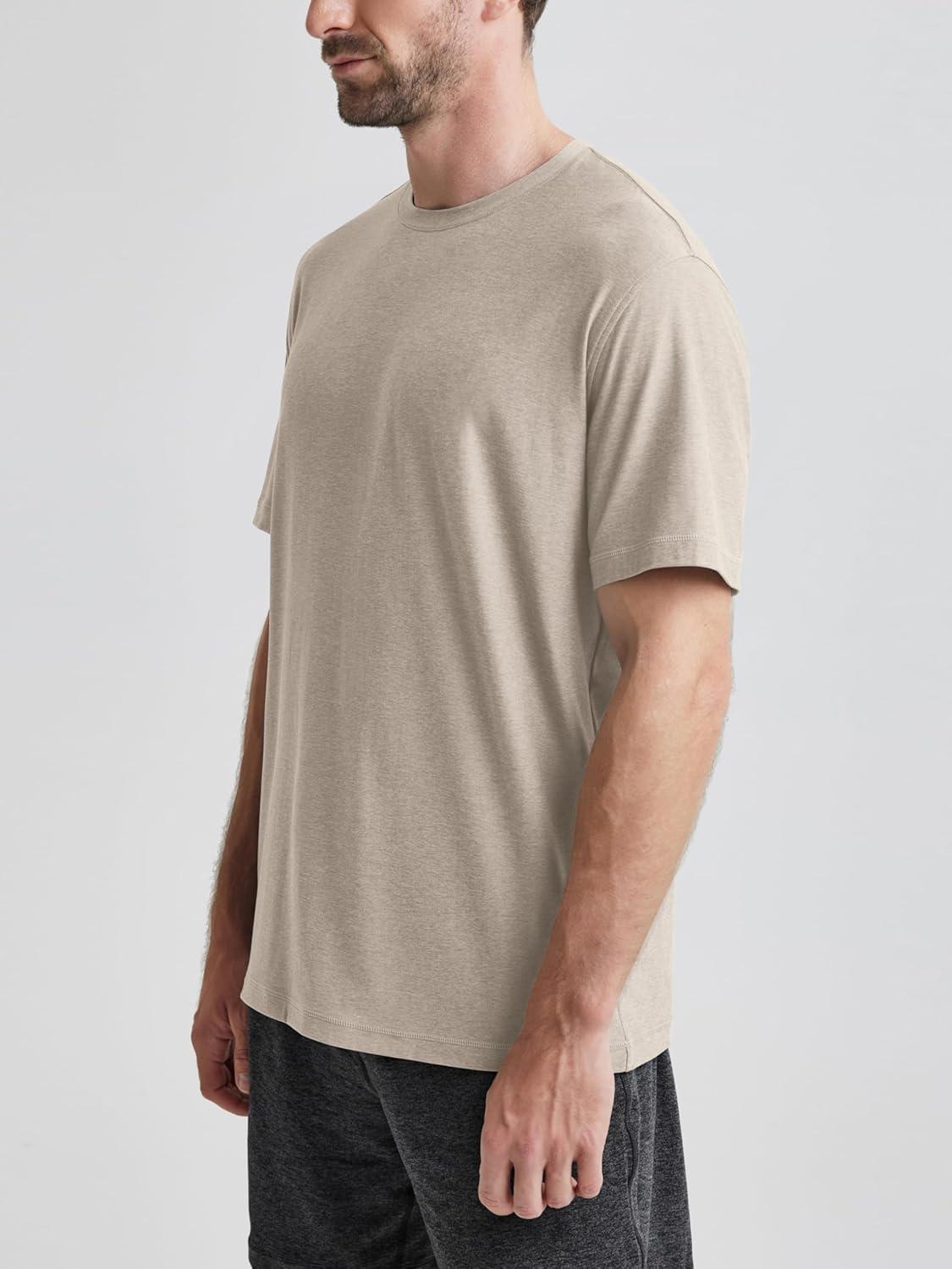 ODODOS Men’s Performance T-Shirt – Stratum Tech Tee, Ultra Soft Moisture Wicking UPF 50+ Fitness Shirts – The Ascent Series(Mocha Heather)