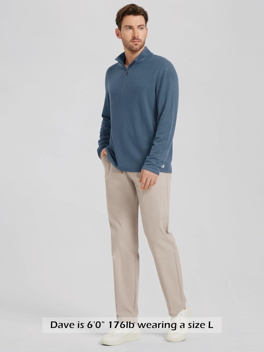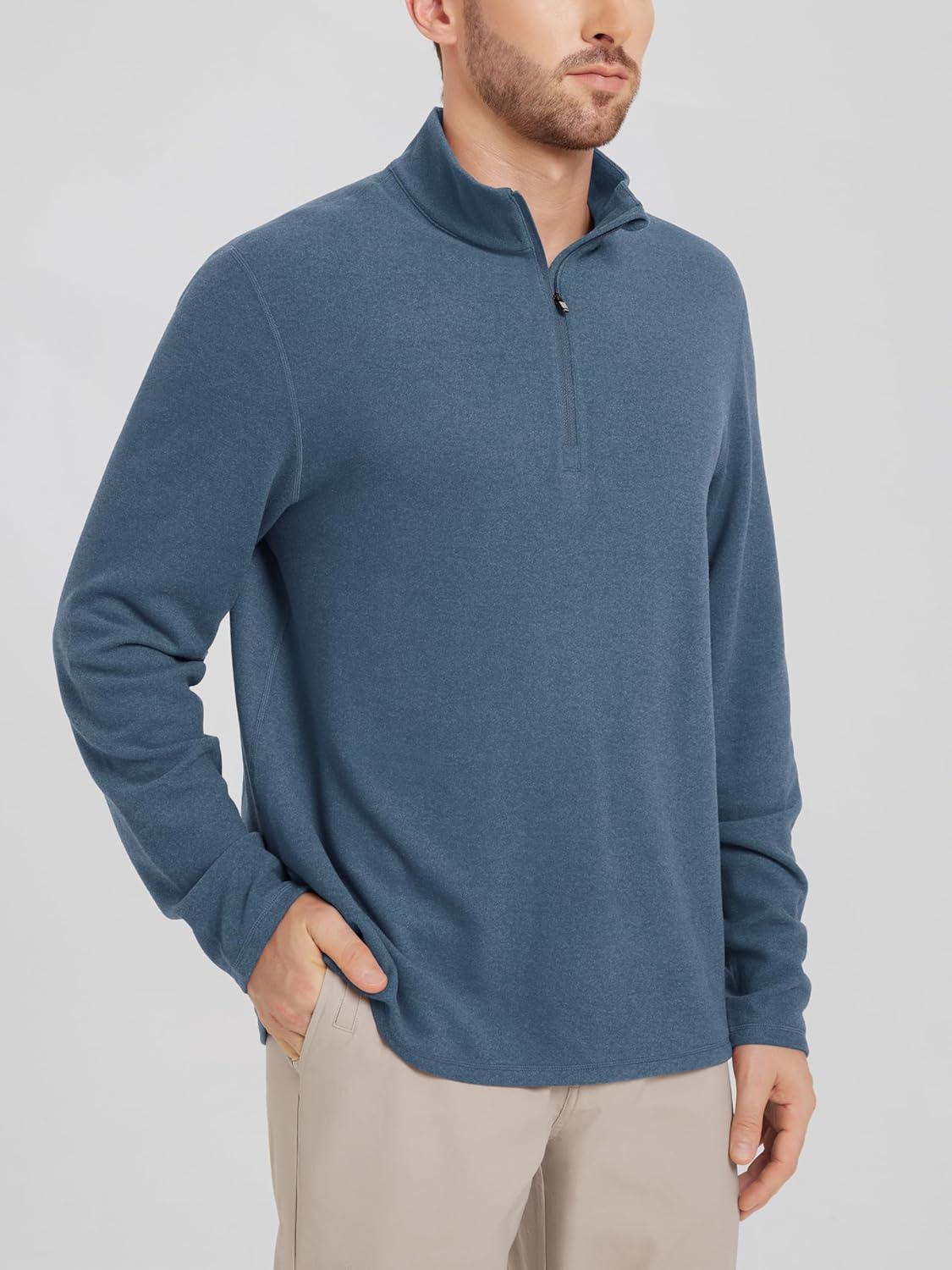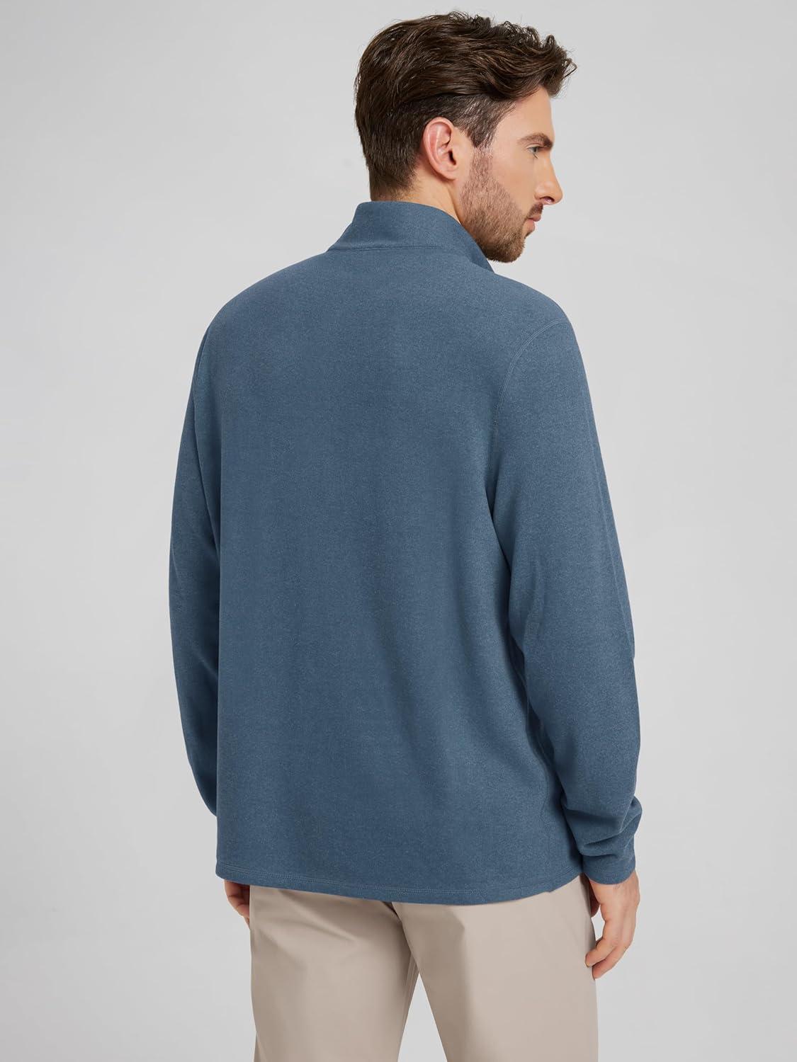 ODODOS Men’s Stretch Fleece Half-Zip Sweatshirts – Ultra-Soft Cozy Warm Long Sleeve Shirt Mock Neck Pullover Tops(Bijou Blue Heather)