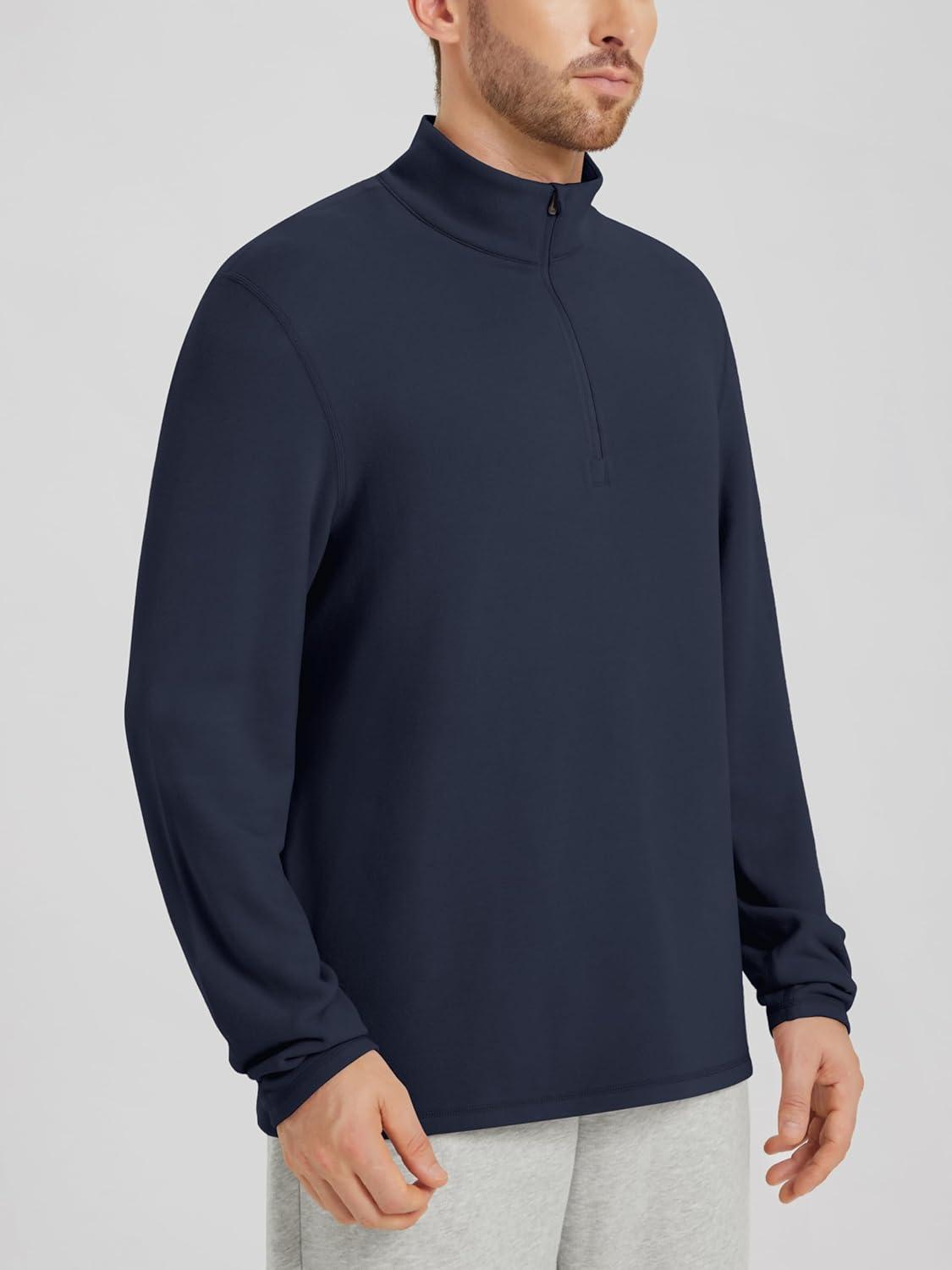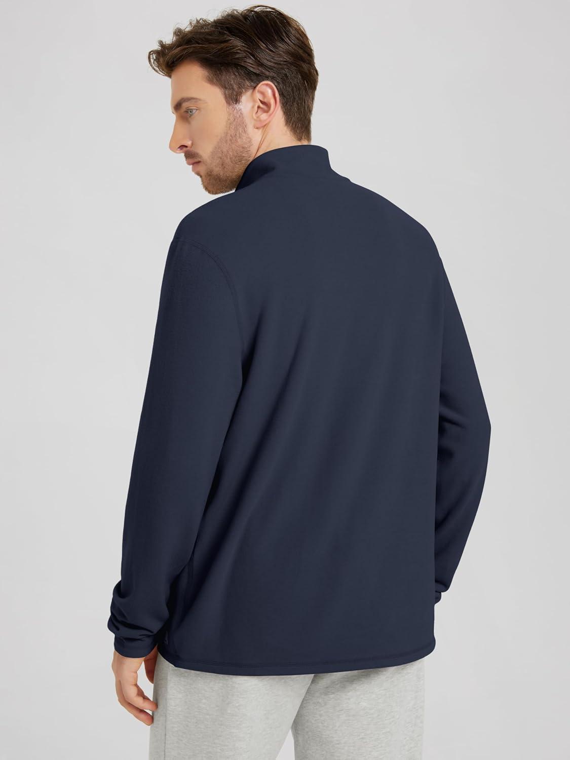ODODOS Men’s Stretch Fleece Half-Zip Sweatshirts – Ultra-Soft Cozy Warm Long Sleeve Shirt Mock Neck Pullover Tops(Navy)