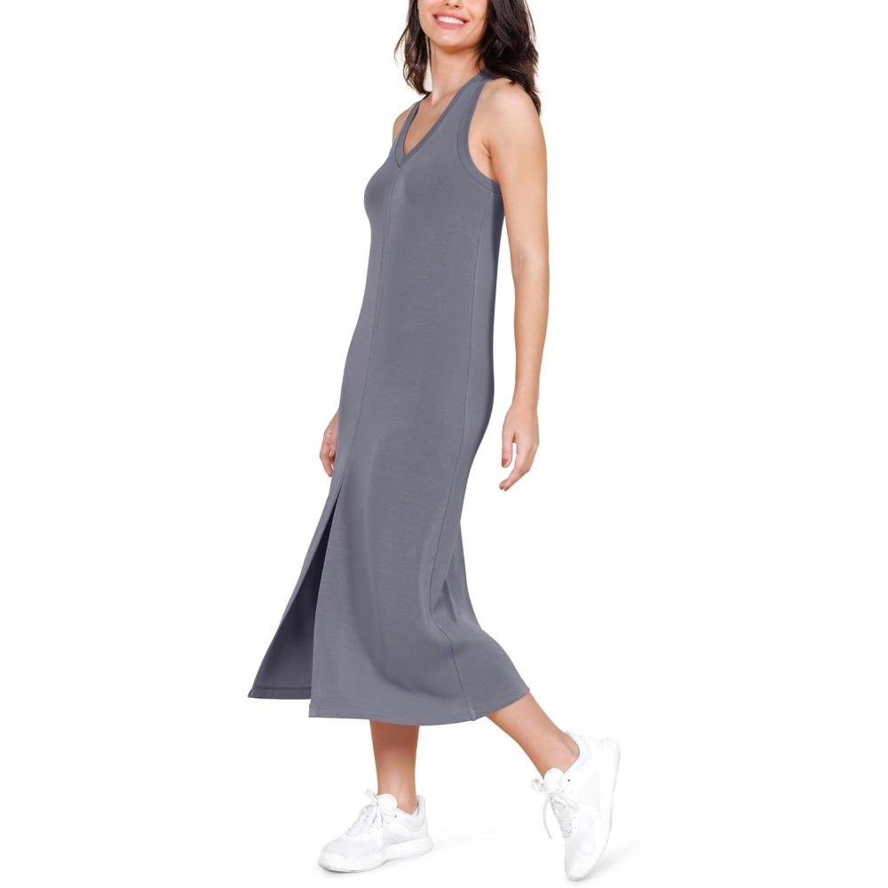 ODODOS Modal Soft Front Split Midi Dress for Women, V Neck Sleeveless Casual Summer Tank Dress(Purple Gray)