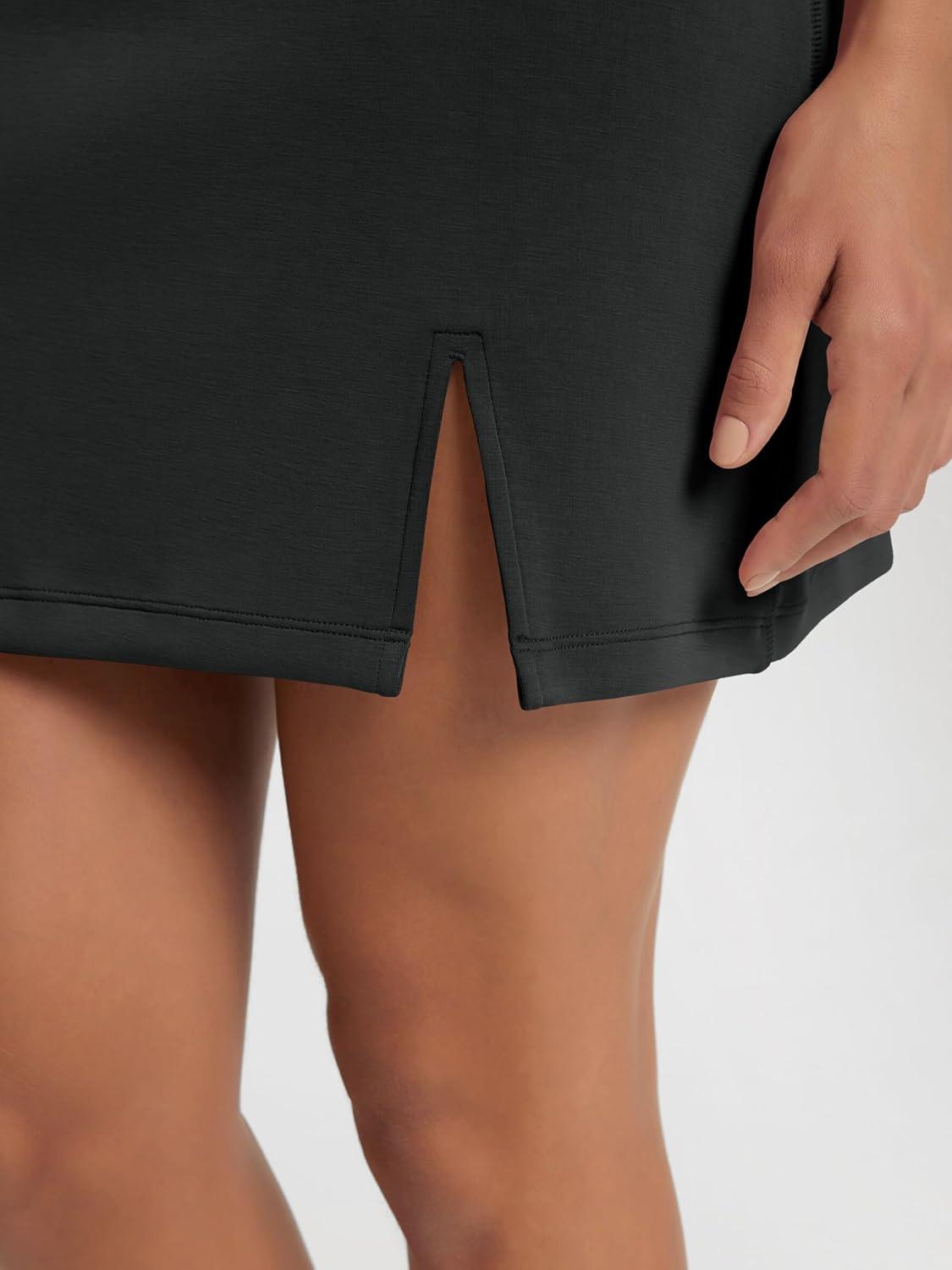 ODODOS Modal Soft Mini Skirt for Women, Side Slit High Waist A-Line Casual Daily Skirts(Black)