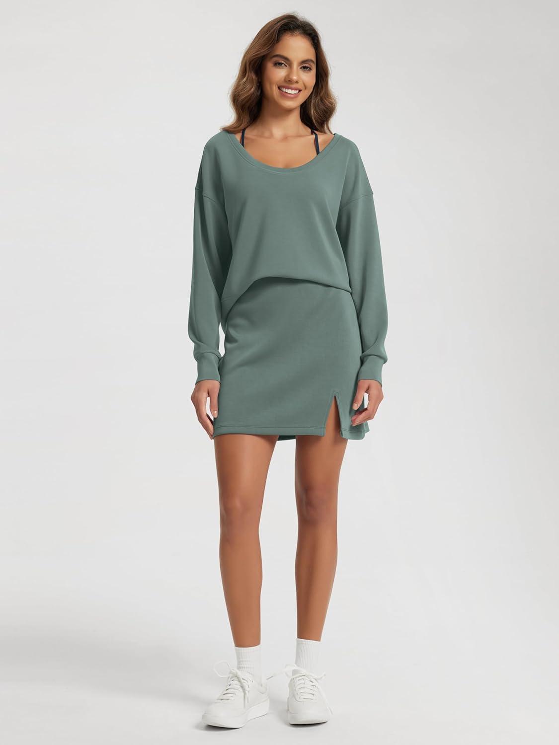 Be the first to review “ODODOS Modal Soft Mini Skirt for Women, Side Slit High Waist A-Line Casual Daily Skirts(Slate Green)”