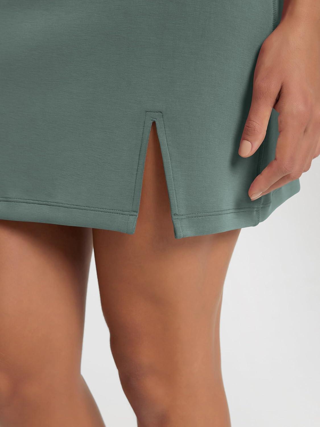 ODODOS Modal Soft Mini Skirt for Women, Side Slit High Waist A-Line Casual Daily Skirts(Slate Green)