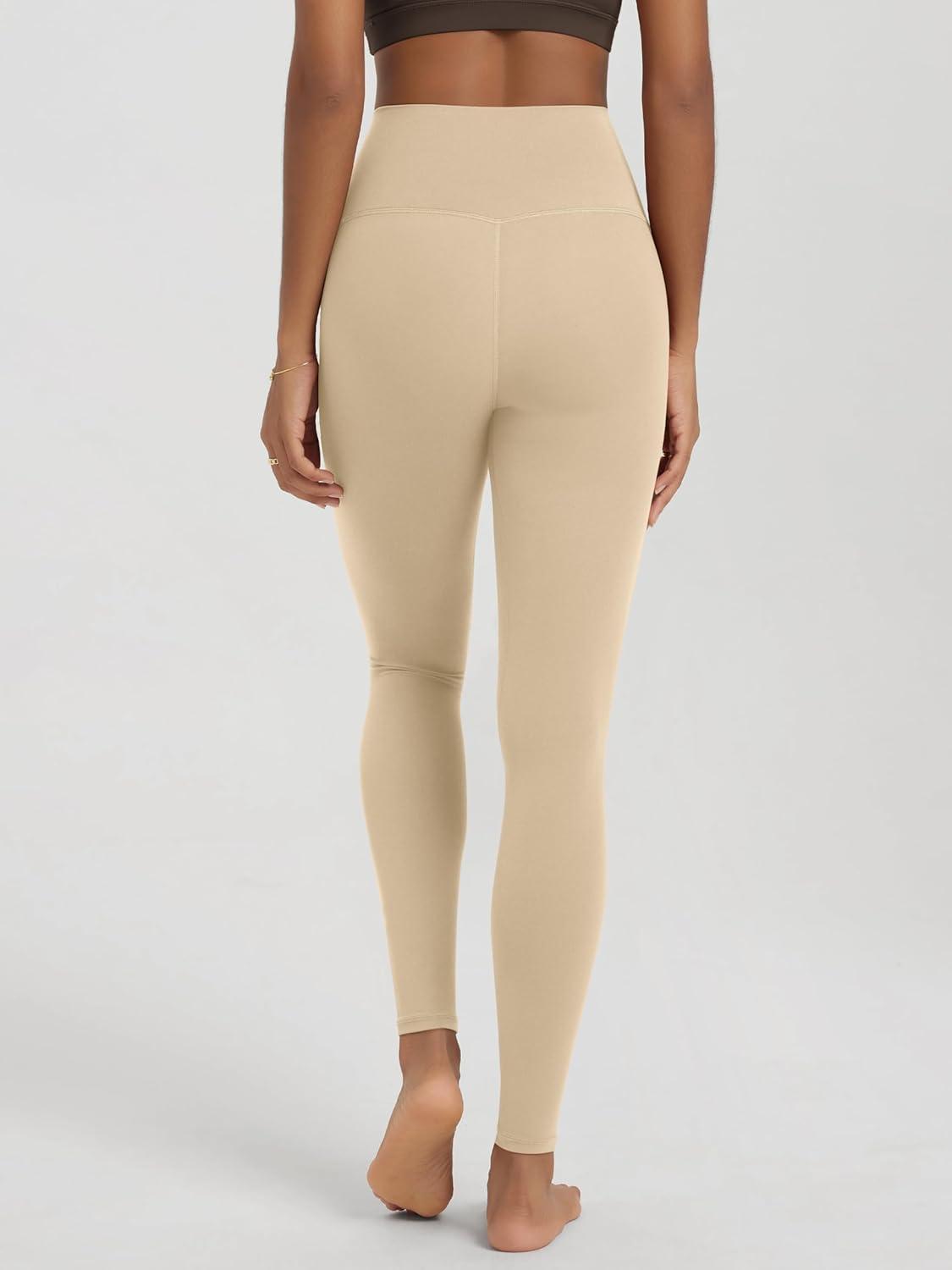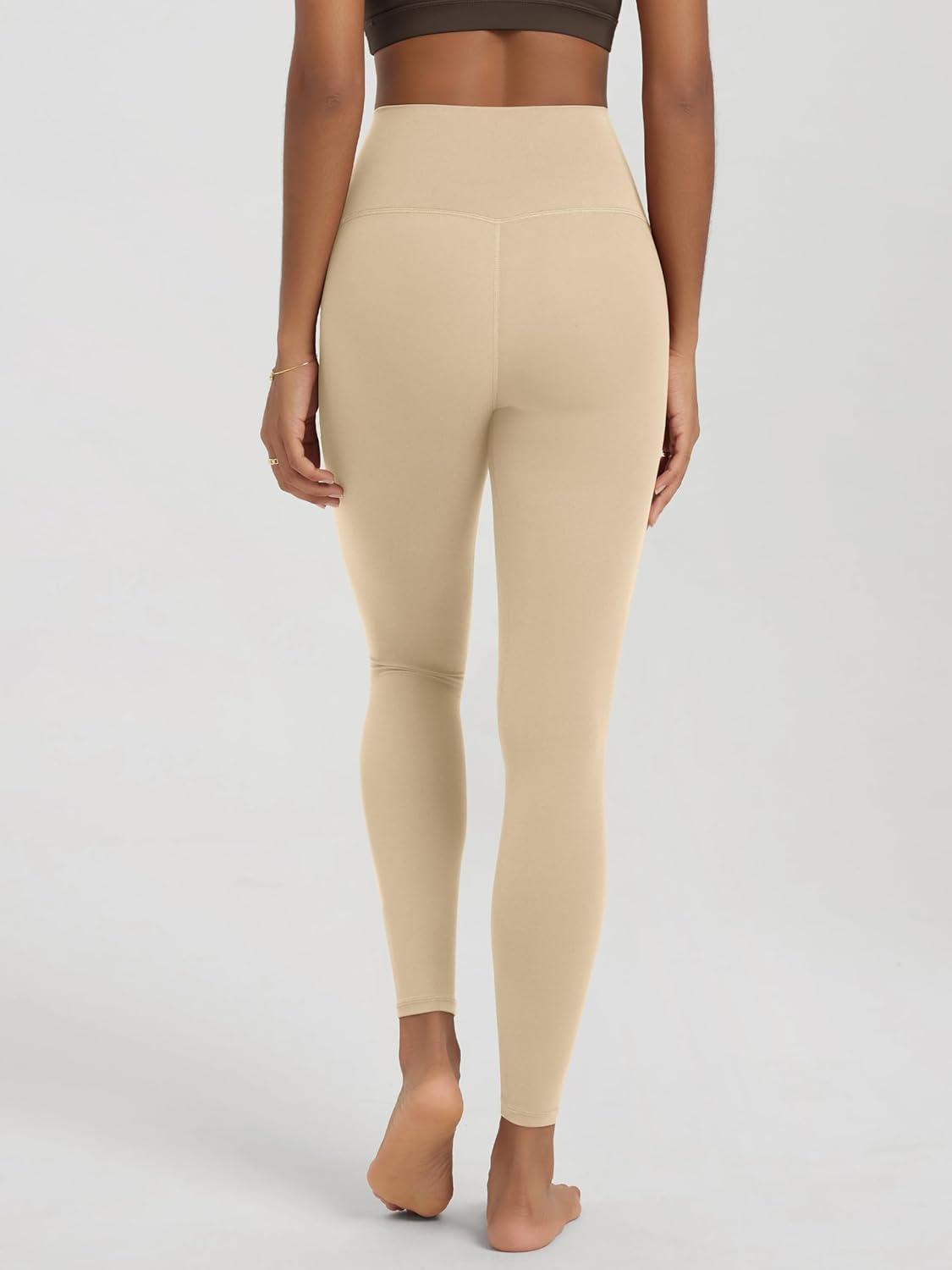 ODODOS No Front Seam Yoga Leggings for Women – 25″ / 28″ High Waist Buttery Soft Lounge Yoga Pants(Beige)