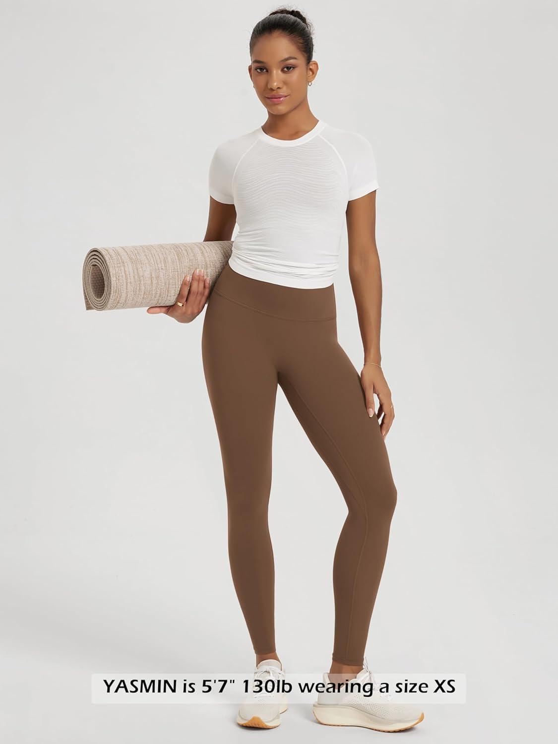 ODODOS No Front Seam Yoga Leggings for Women – 25″ / 28″ High Waist Buttery Soft Lounge Yoga Pants(Brunette)