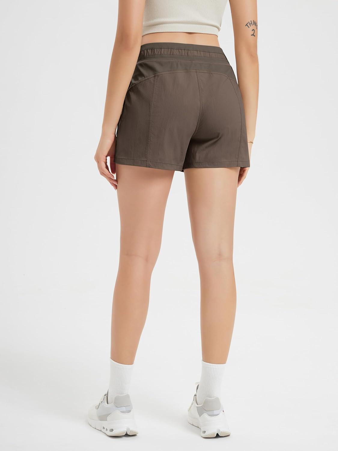 ODODOS Women’s Athletic Shorts 3.5” High Waisted Lightweight Ripstop Quick Dry Workout Running Casual Shorts with Pockets(Dark Brown)