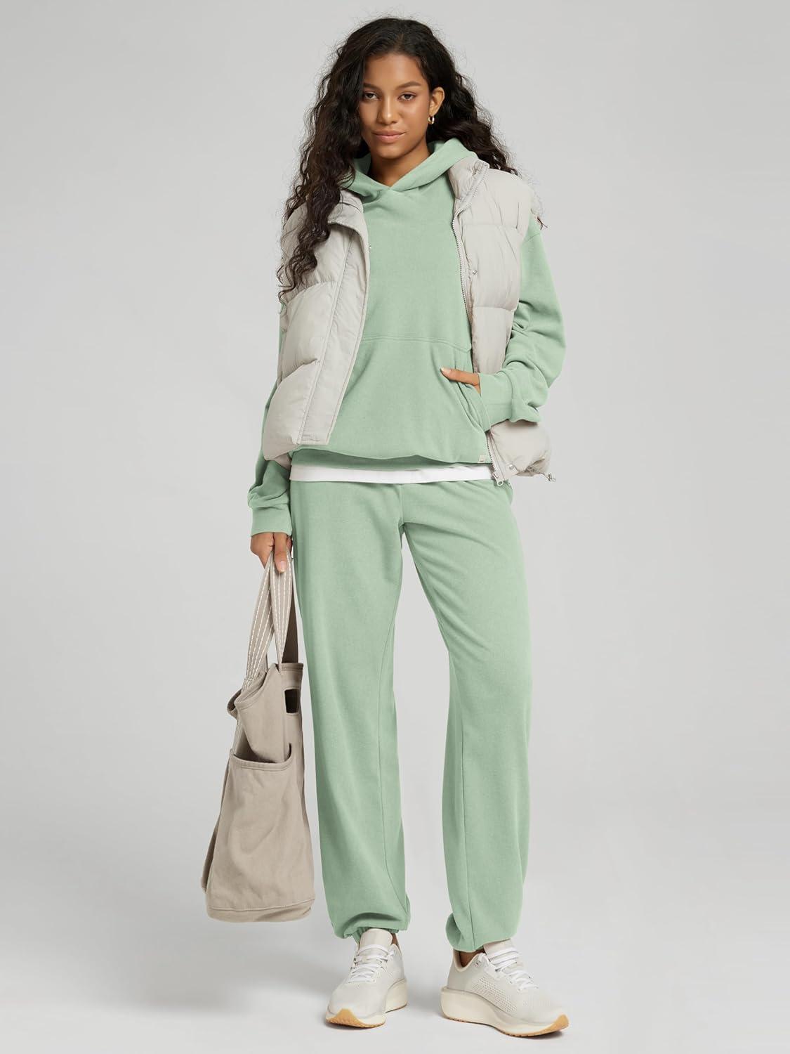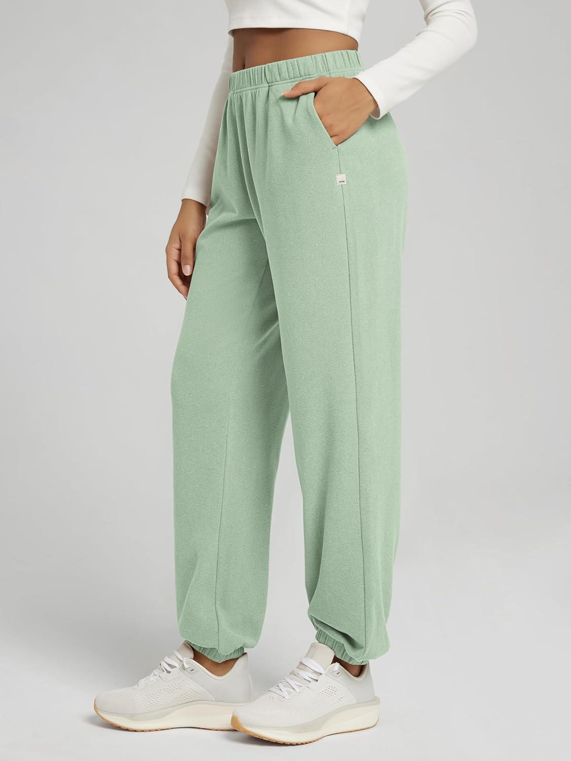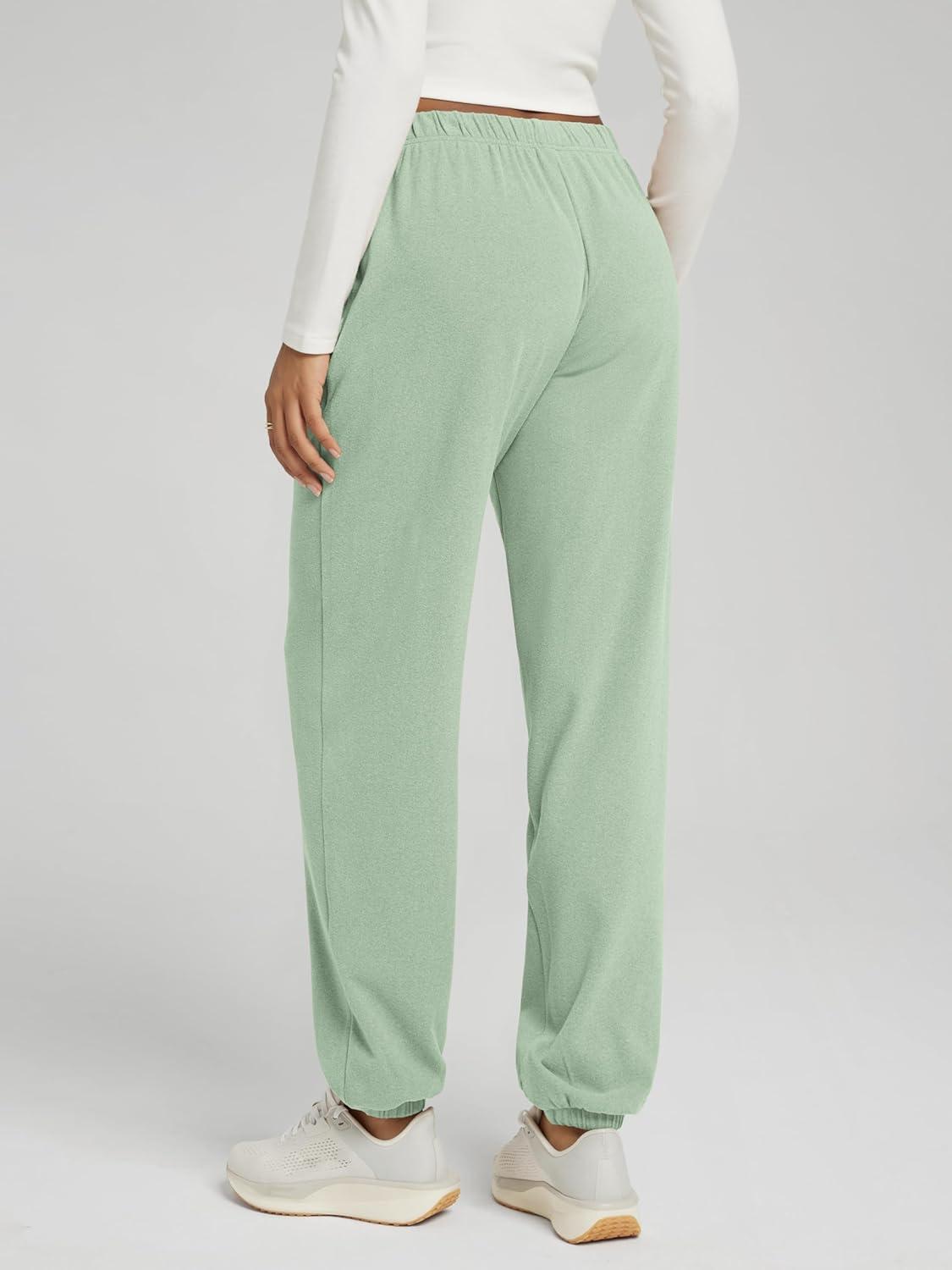 ODODOS Women’s Brushed Fleece Jogger Sweatpants – Cozy Warm Adjustable High-Rise Relaxed Lounge Pants with Pockets(Mint Green Heather)