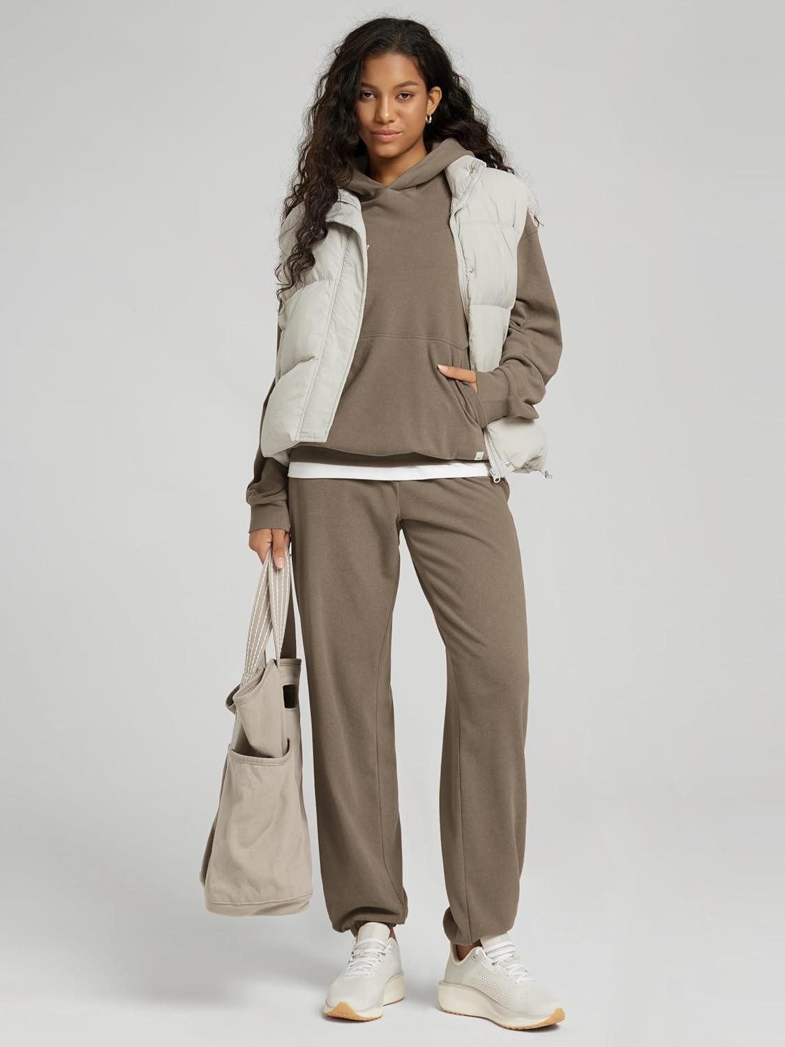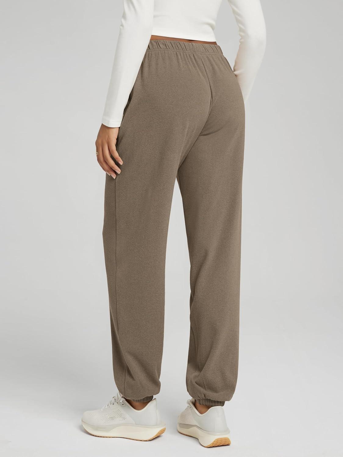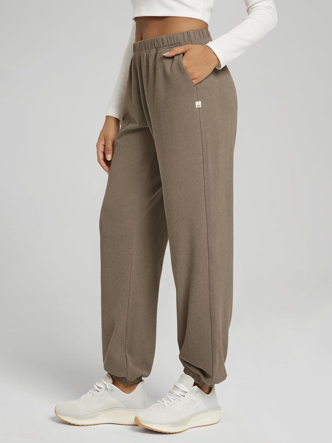 ODODOS Women’s Brushed Fleece Jogger Sweatpants – Cozy Warm Adjustable High-Rise Relaxed Lounge Pants with Pockets(Wood Brown Heather)