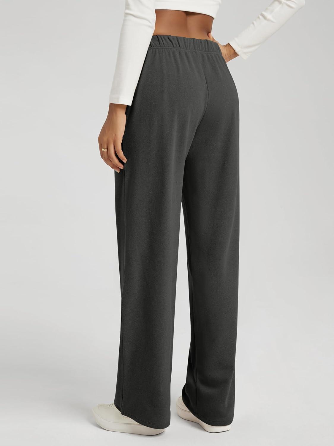 ODODOS Women’s Brushed Fleece Straight Leg Pants – Cozy Warm High-Rise Relaxed Lounge Sweatpants with Pockets – 29″ Inseam(Charcoal Heather)