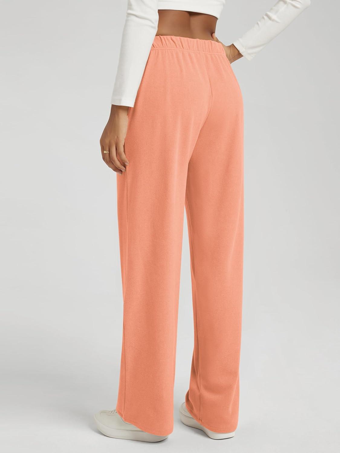 ODODOS Women’s Brushed Fleece Straight Leg Pants – Cozy Warm High-Rise Relaxed Lounge Sweatpants with Pockets – 29″ Inseam(Coral Heather)