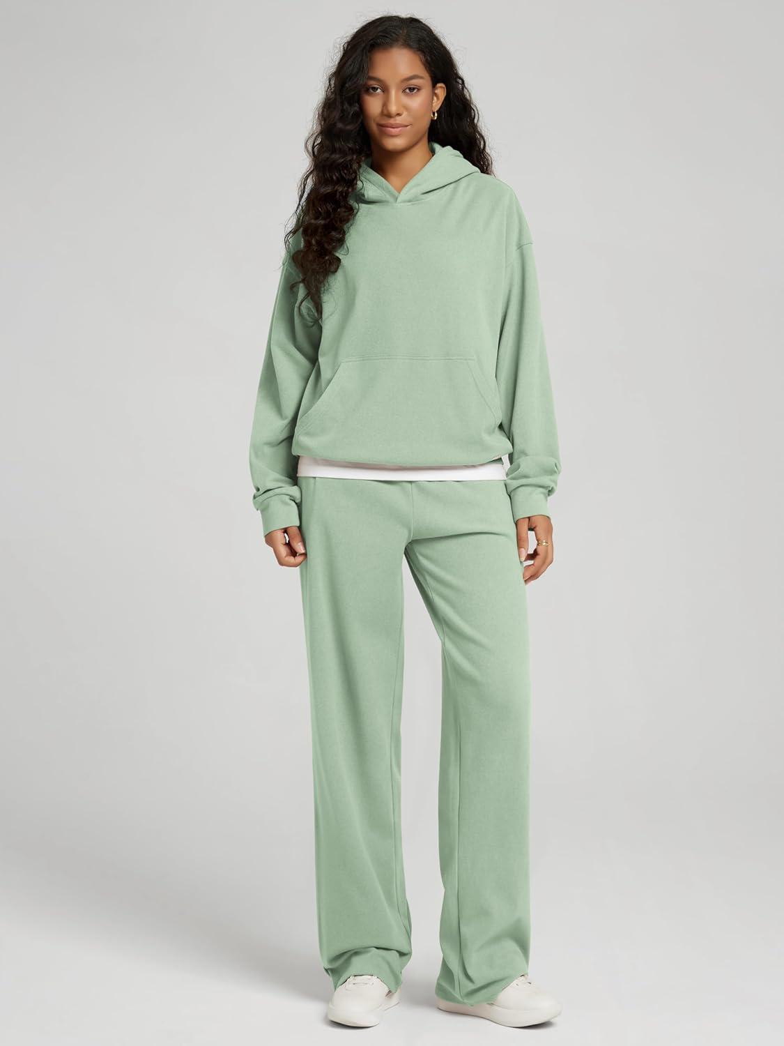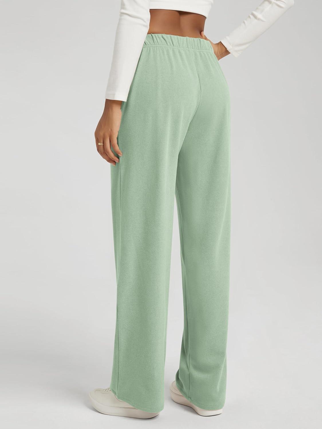 ODODOS Women’s Brushed Fleece Straight Leg Pants – Cozy Warm High-Rise Relaxed Lounge Sweatpants with Pockets – 29″ Inseam(Mint Green Heather)