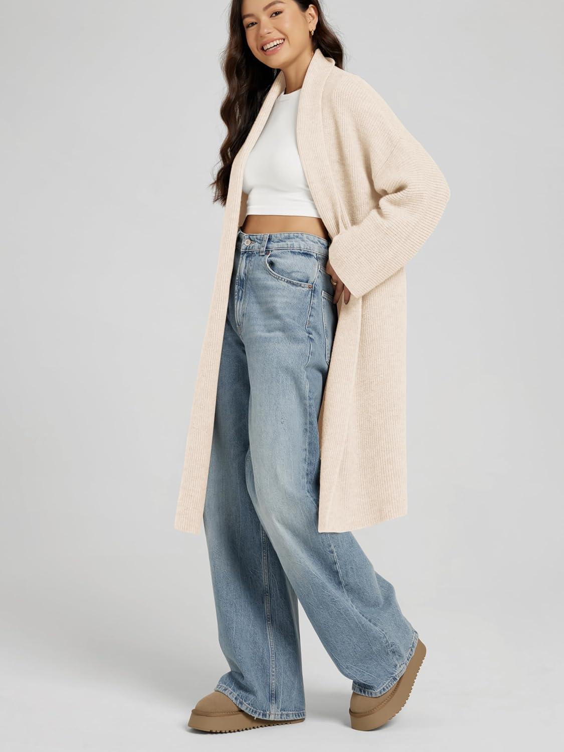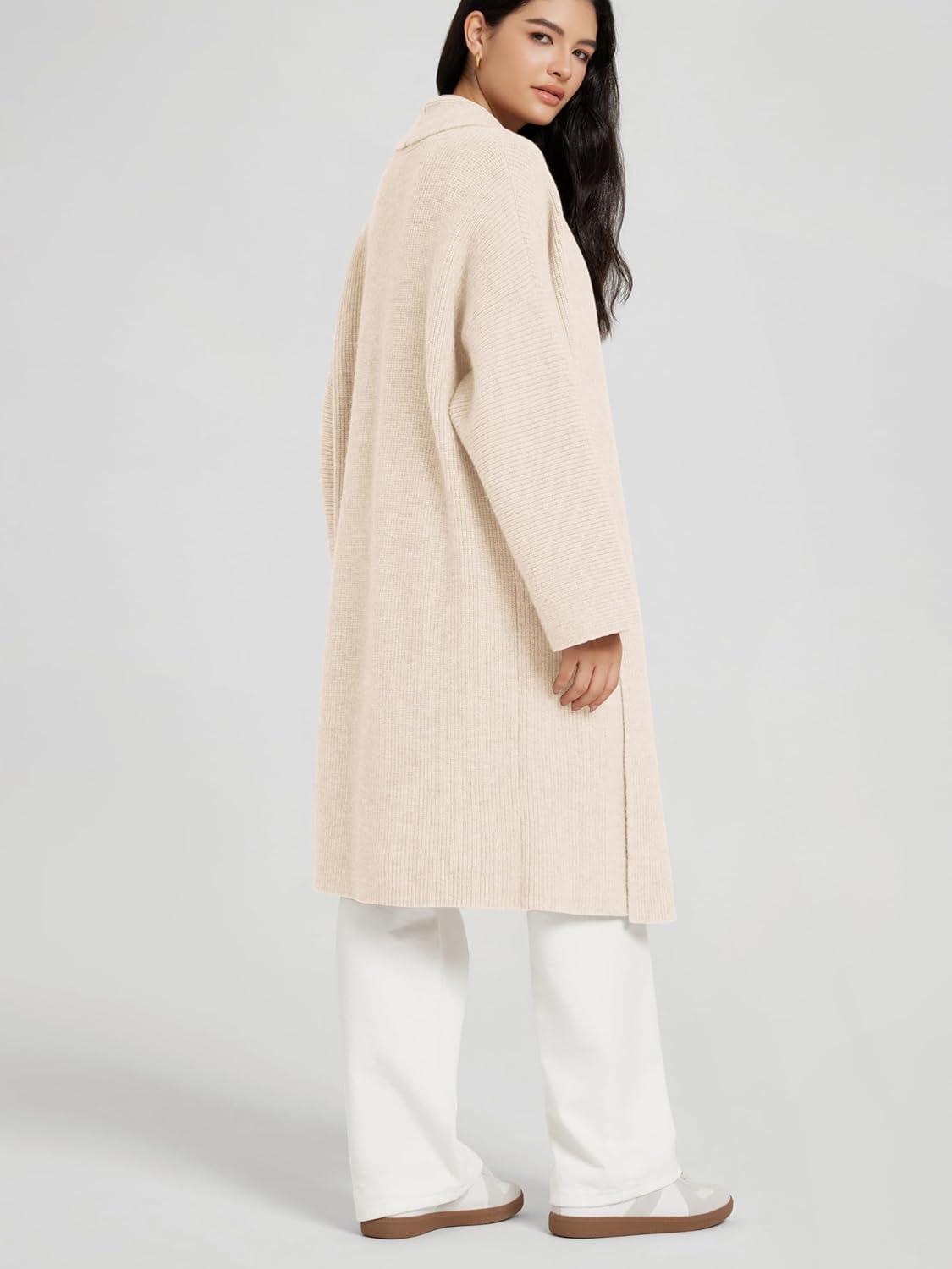 ODODOS Women’s Cardigan Sweater Longer Length Open Front Drape Coatigan Warm Soft Knit Long Sleeve Outerwear(Beige)
