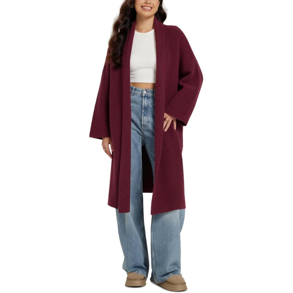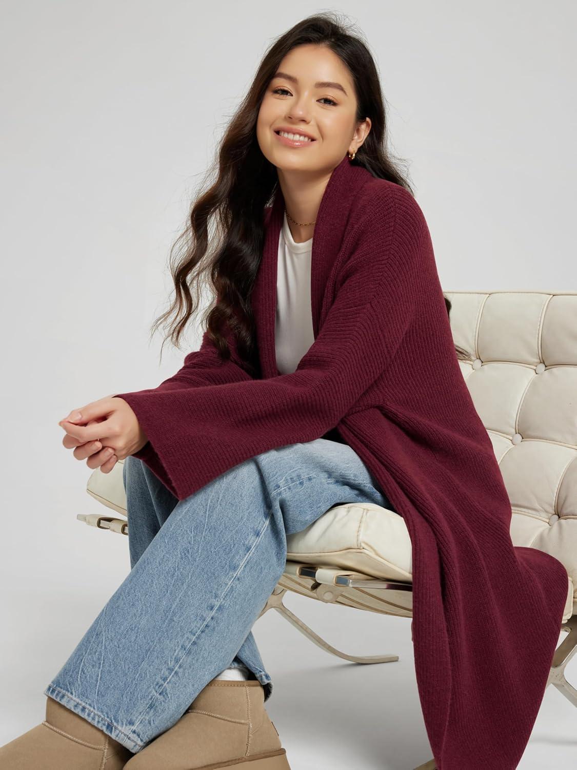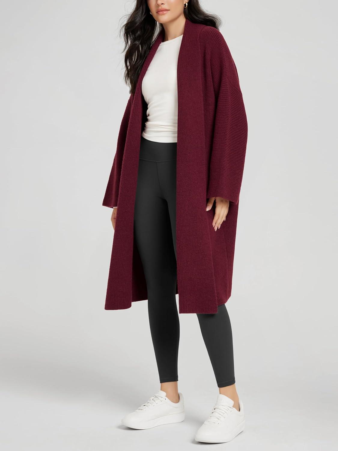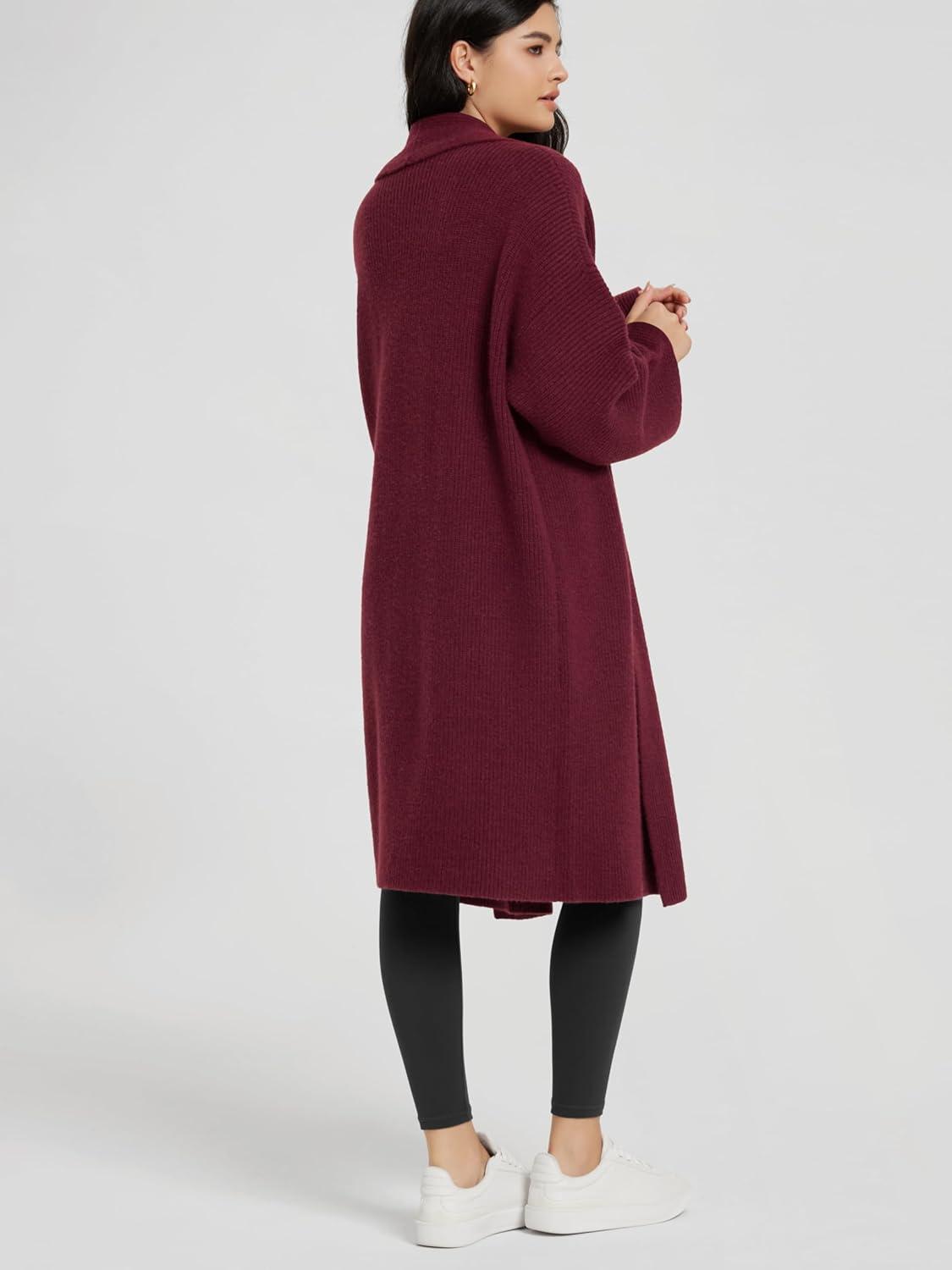 ODODOS Women’s Cardigan Sweater Longer Length Open Front Drape Coatigan Warm Soft Knit Long Sleeve Outerwear(Claret)