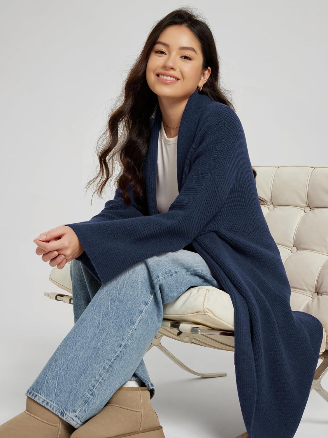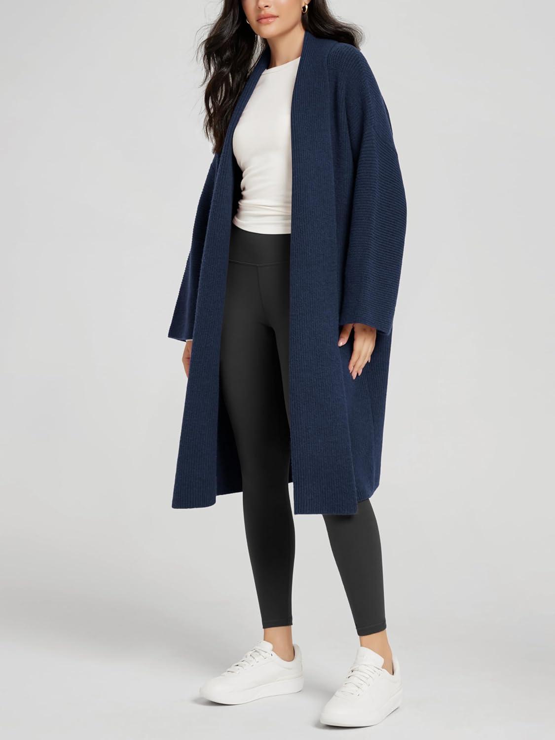 ODODOS Women’s Cardigan Sweater Longer Length Open Front Drape Coatigan Warm Soft Knit Long Sleeve Outerwear(Navy)