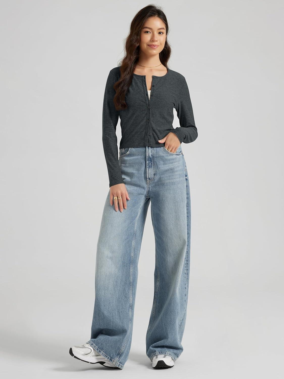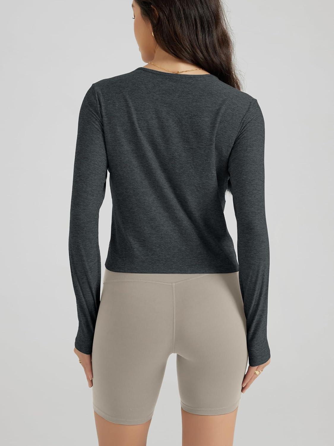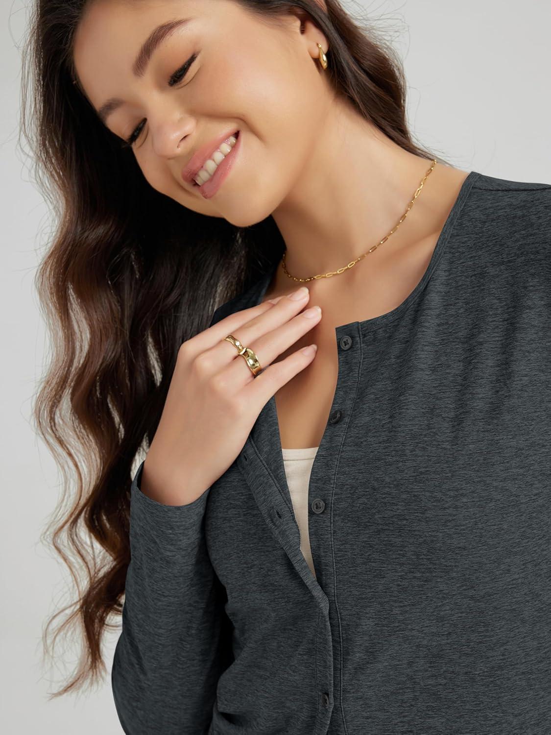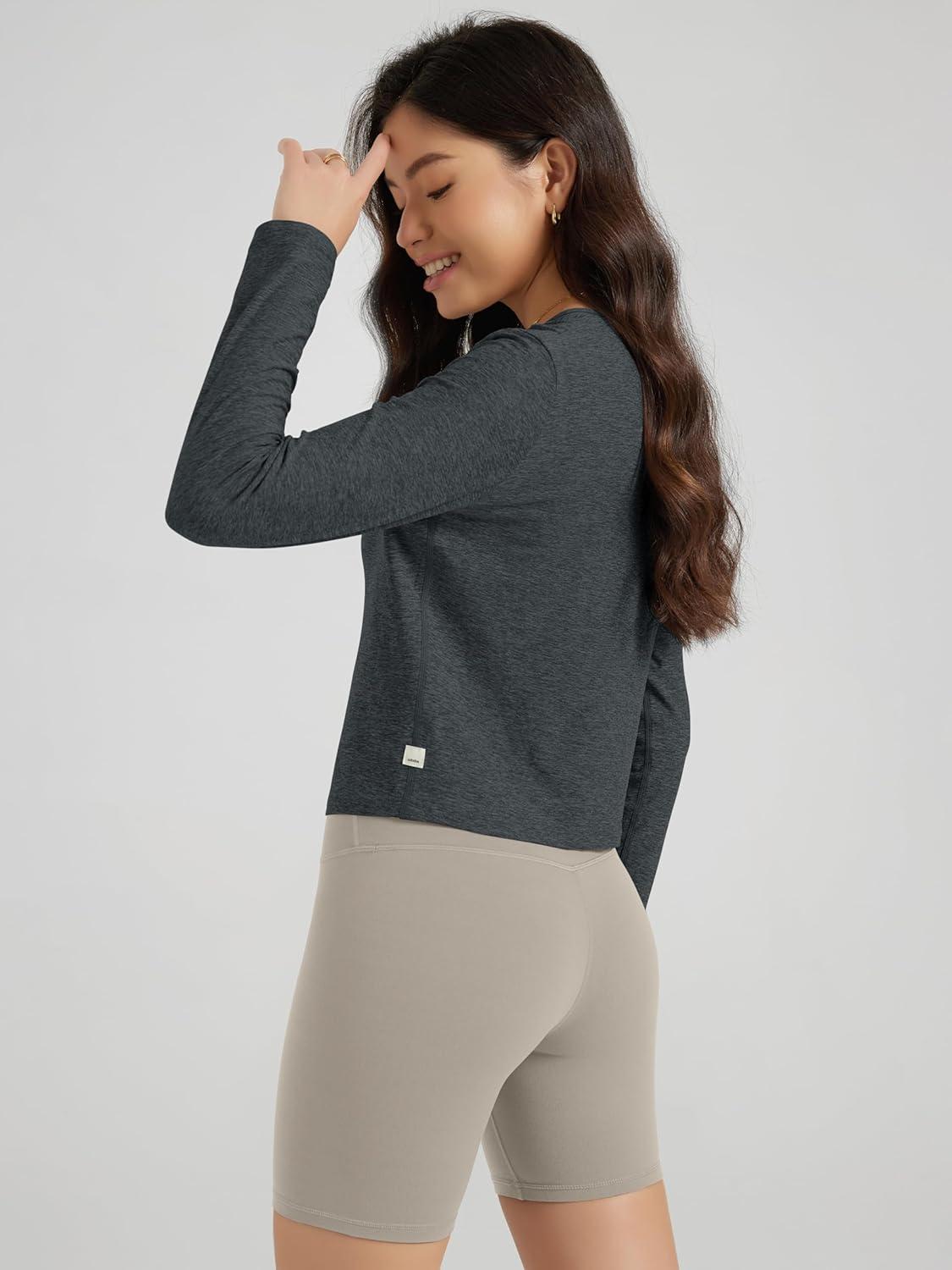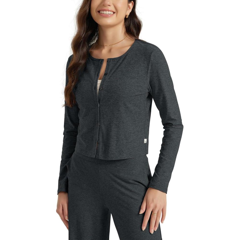 ODODOS Women’s Cardigan – Ultra Soft Stratum Tech Performance Long Sleeve Crop UPF 50+ Button Down Crewneck Top(Charcoal Heather)
