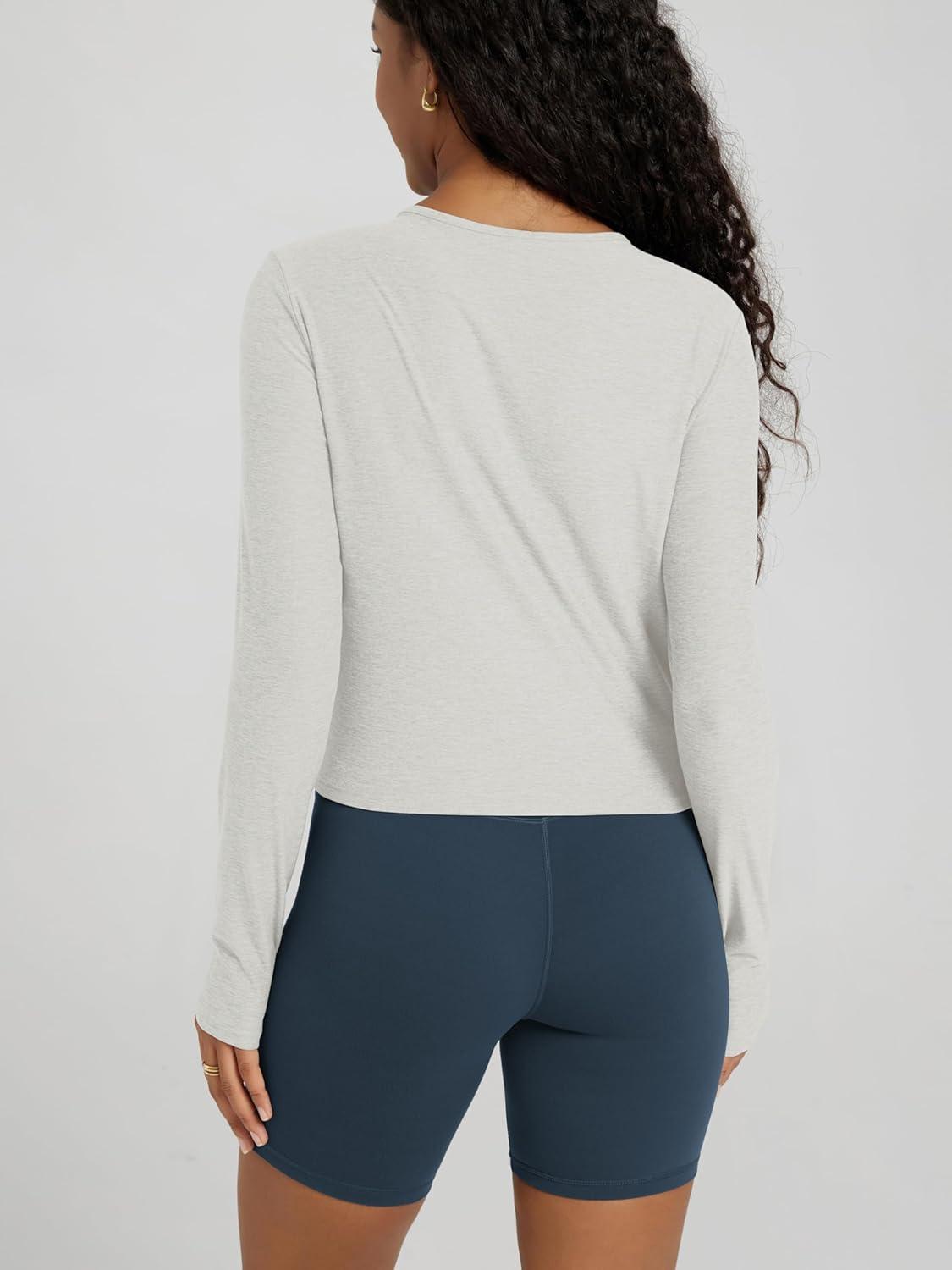 ODODOS Women’s Cardigan – Ultra Soft Stratum Tech Performance Long Sleeve Crop UPF 50+ Button Down Crewneck Top(Salt Heather)