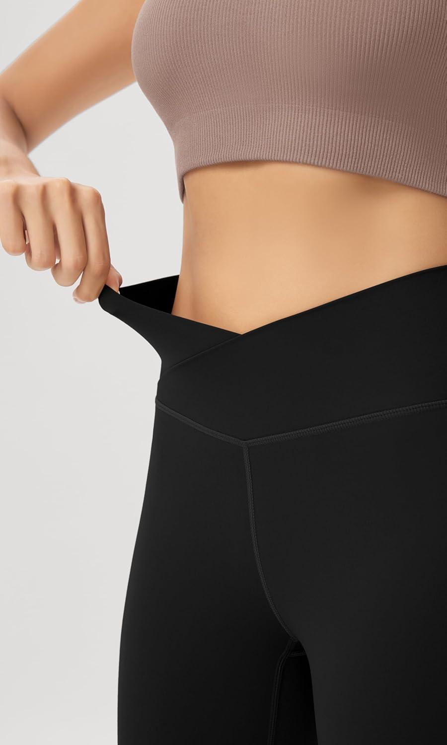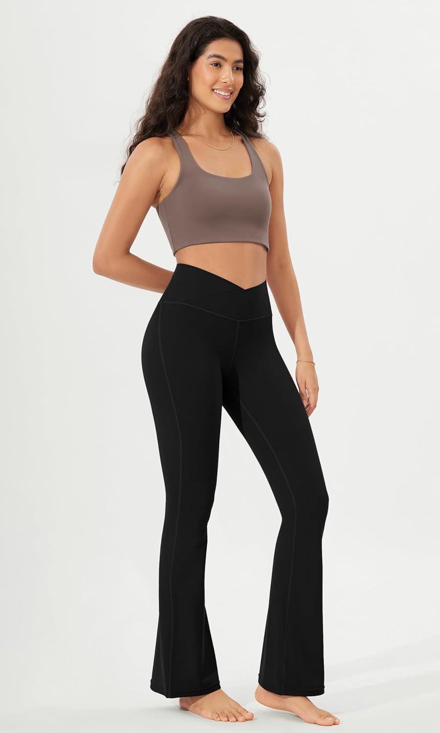 ODODOS Women’s Crossover Flared Yoga Pants Cloud Feeling Soft High Waist Bootcut Leggings with Back Pocket -30″ / 32″ Inseam(Black)