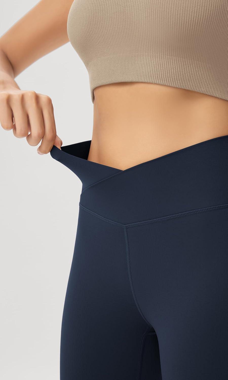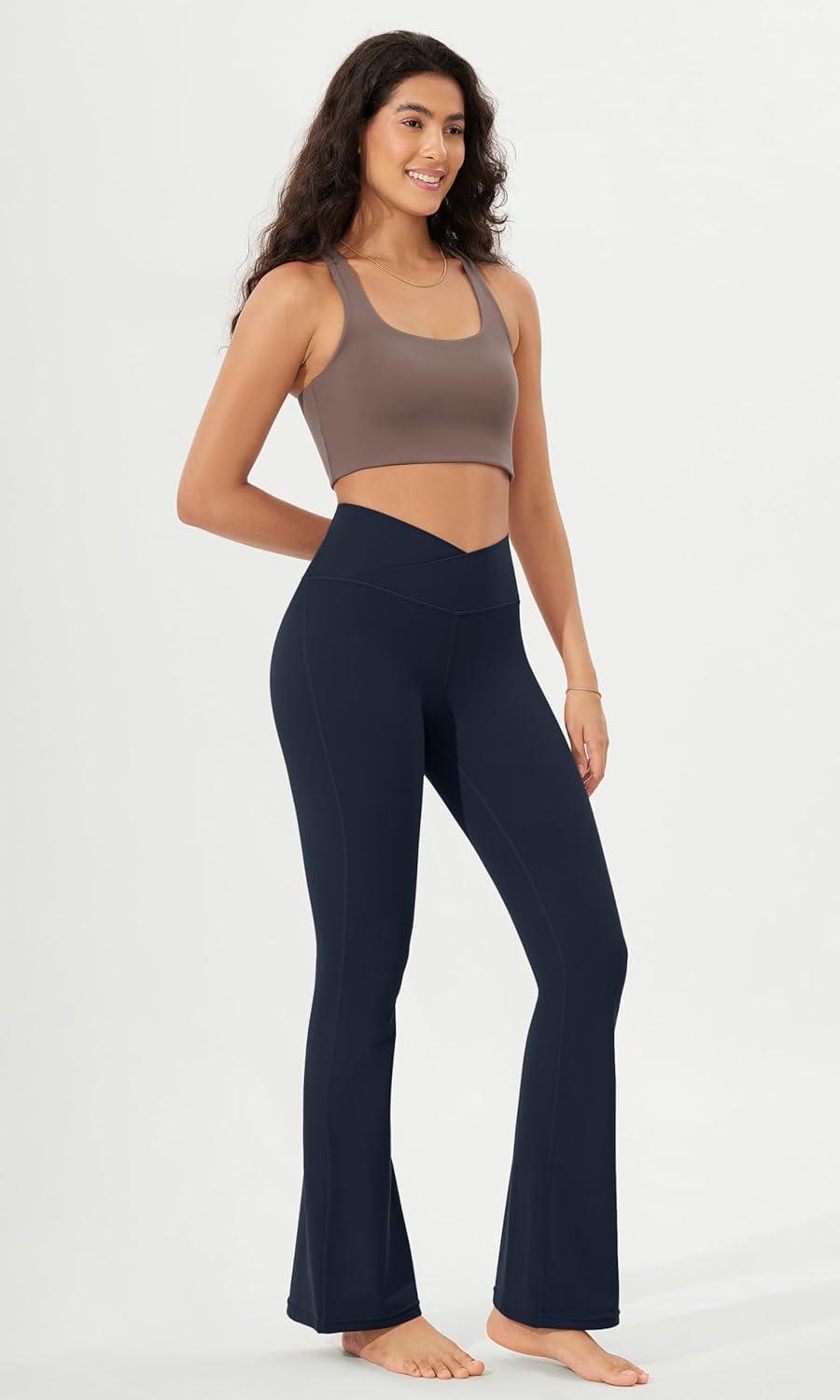 ODODOS Women’s Crossover Flared Yoga Pants Cloud Feeling Soft High Waist Bootcut Leggings with Back Pocket -30″ / 32″ Inseam(Deep Navy)