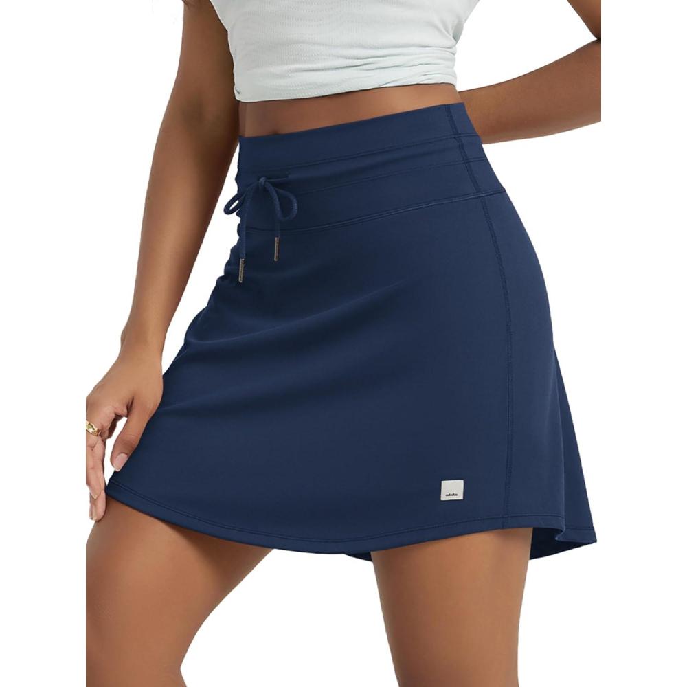 ODODOS Women’s Drawstring Tie Daily Skirts Long 17″ – Built-in Shorts Athletic Golf Tennis Skorts with Ball Pocket(Navy)