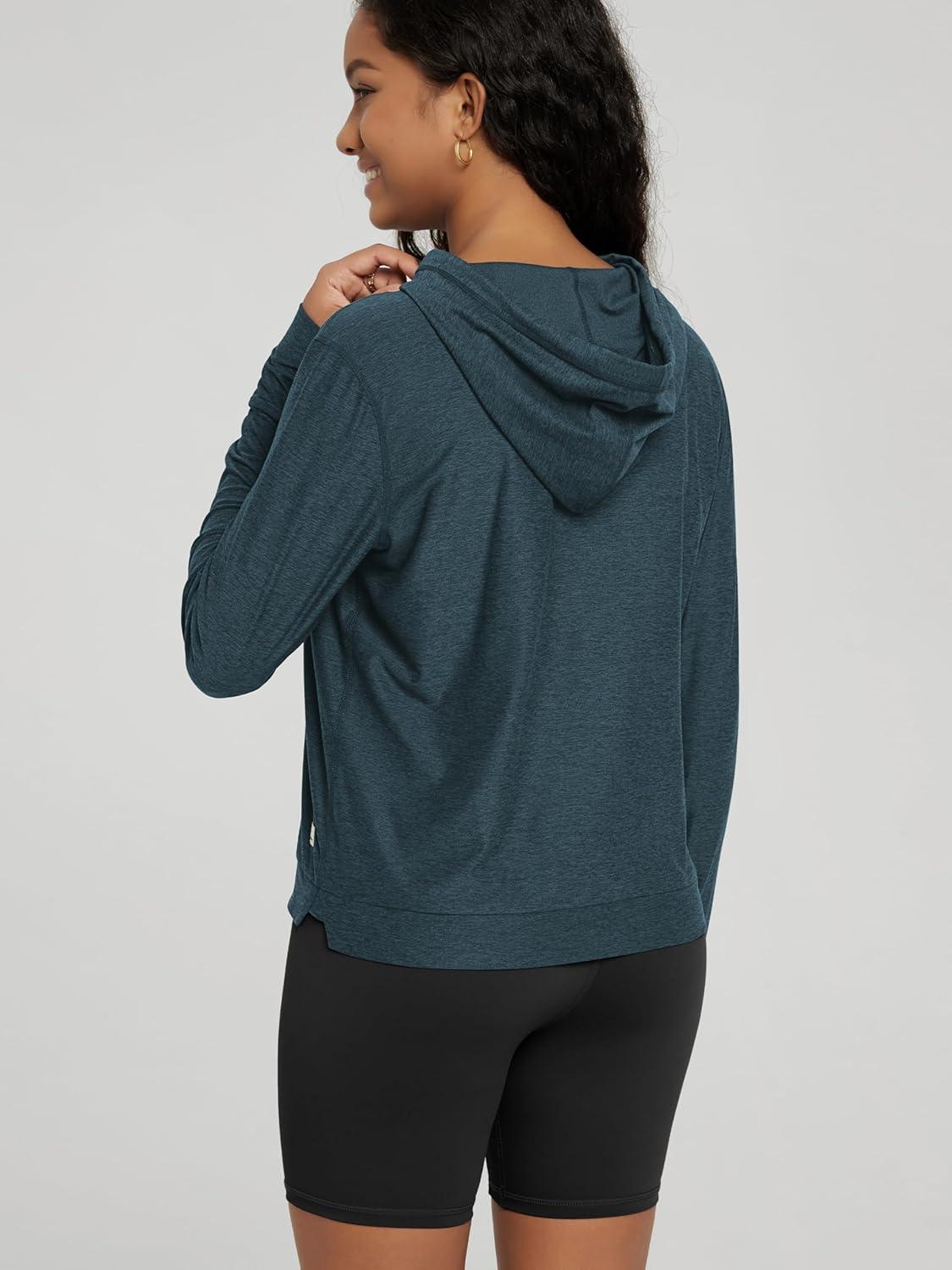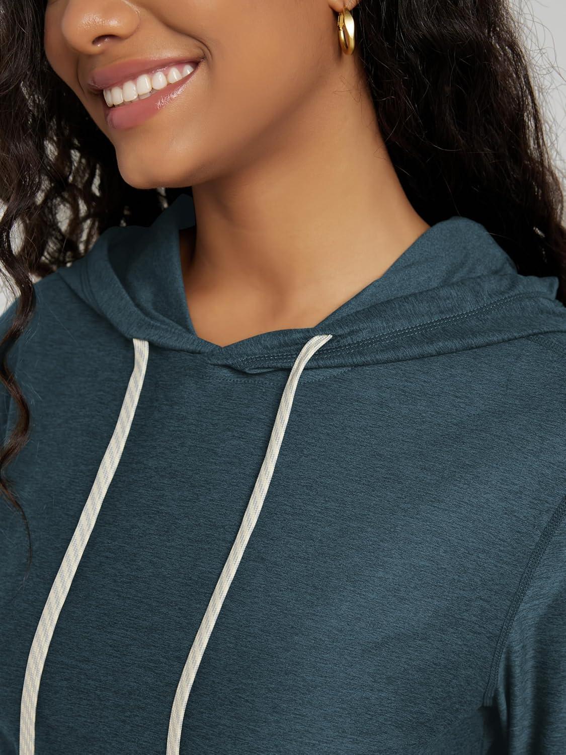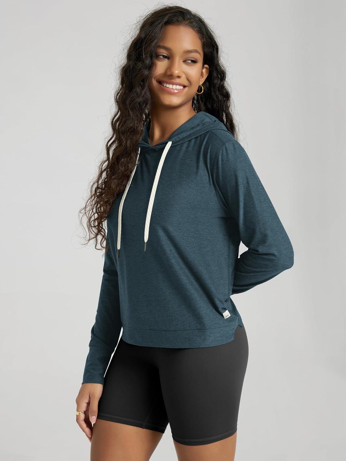 ODODOS Women’s Essential Hoodie – Ultra Soft Stratum Tech Pullover UPF 50+ Moisture Wicking Long Sleeve Top(Navy Heather)