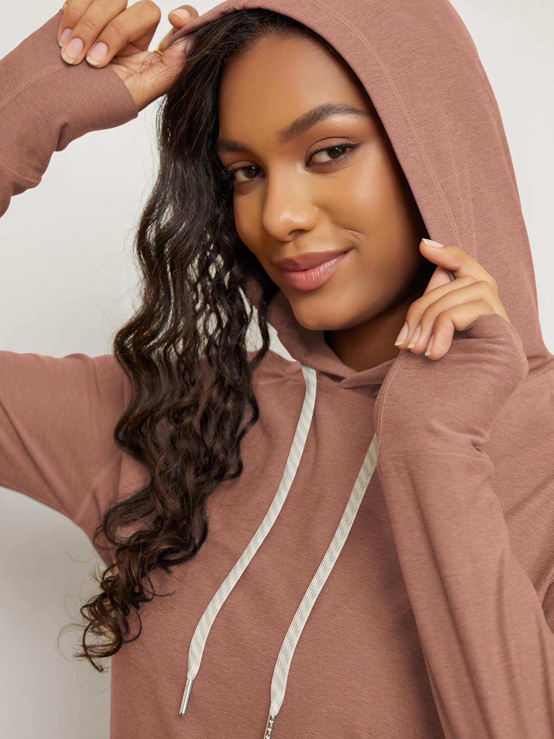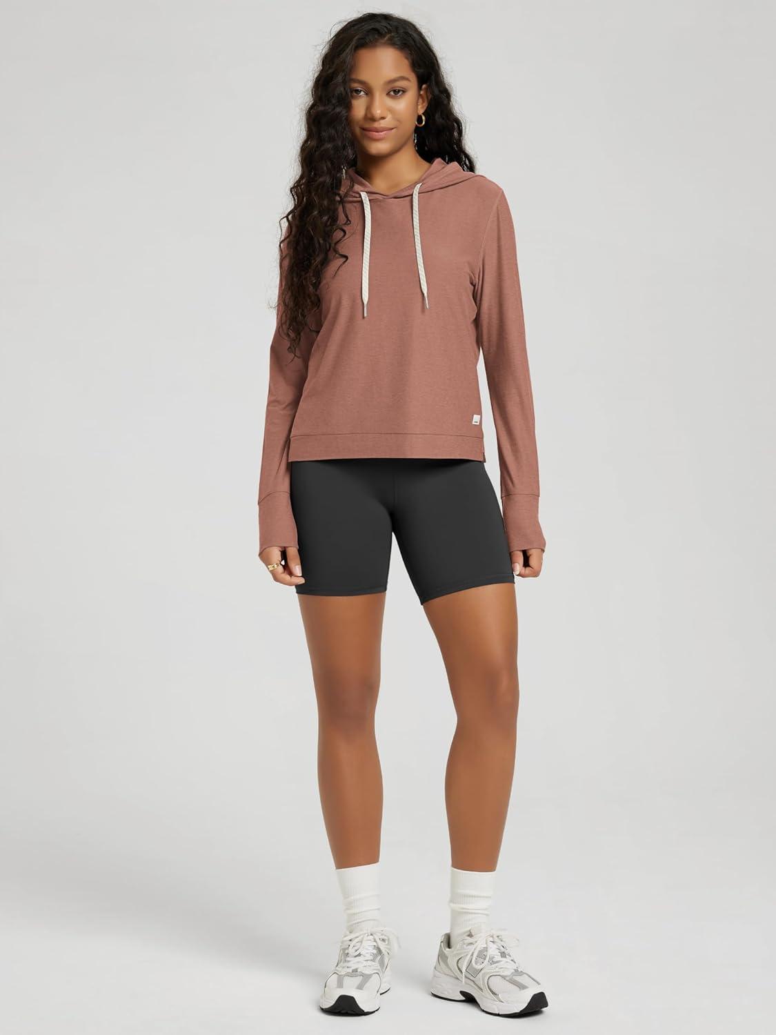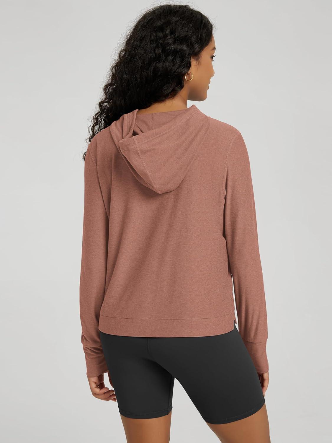 ODODOS Women’s Essential Hoodie – Ultra Soft Stratum Tech Pullover UPF 50+ Moisture Wicking Long Sleeve Top(Tamarind Heather)