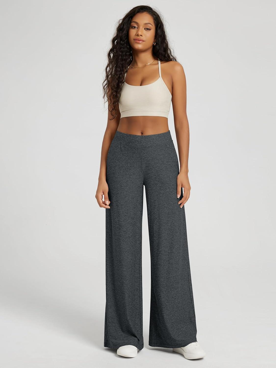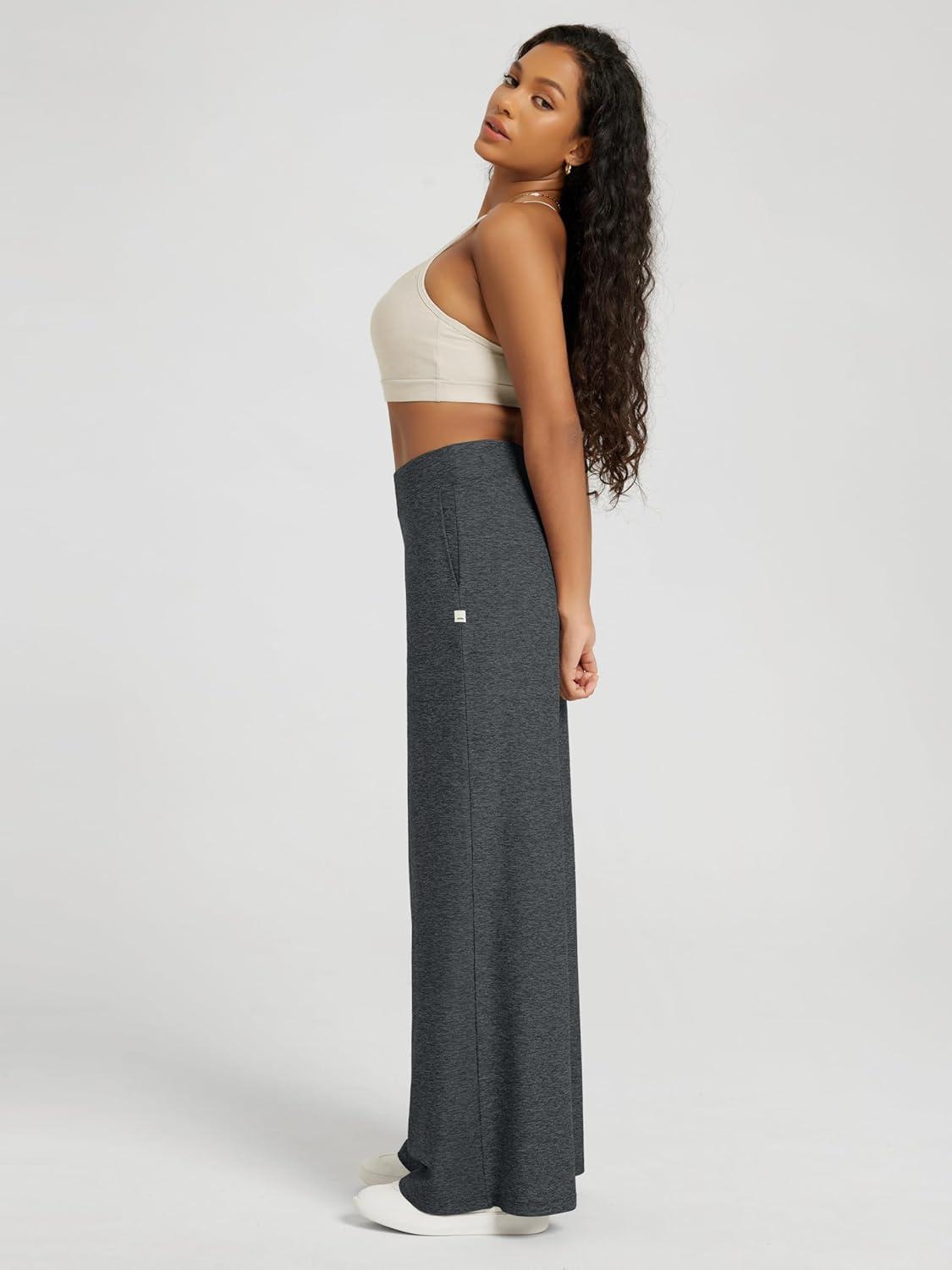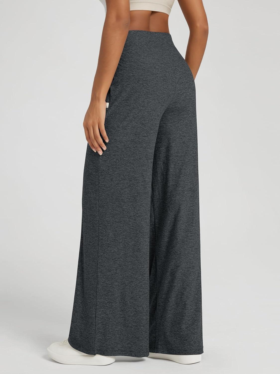 ODODOS Women’s Extra Wide Leg Pants – Ultra Soft Stratum Tech Casual Relaxed Lounge Pants with Pockets – 29″ Inseam(Charcoal Heather)