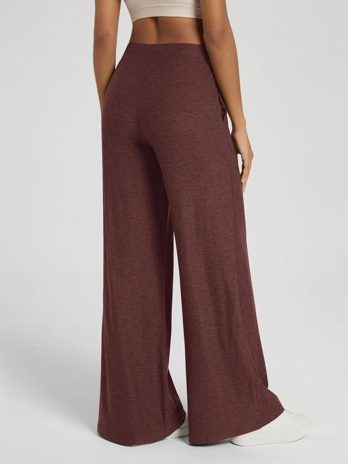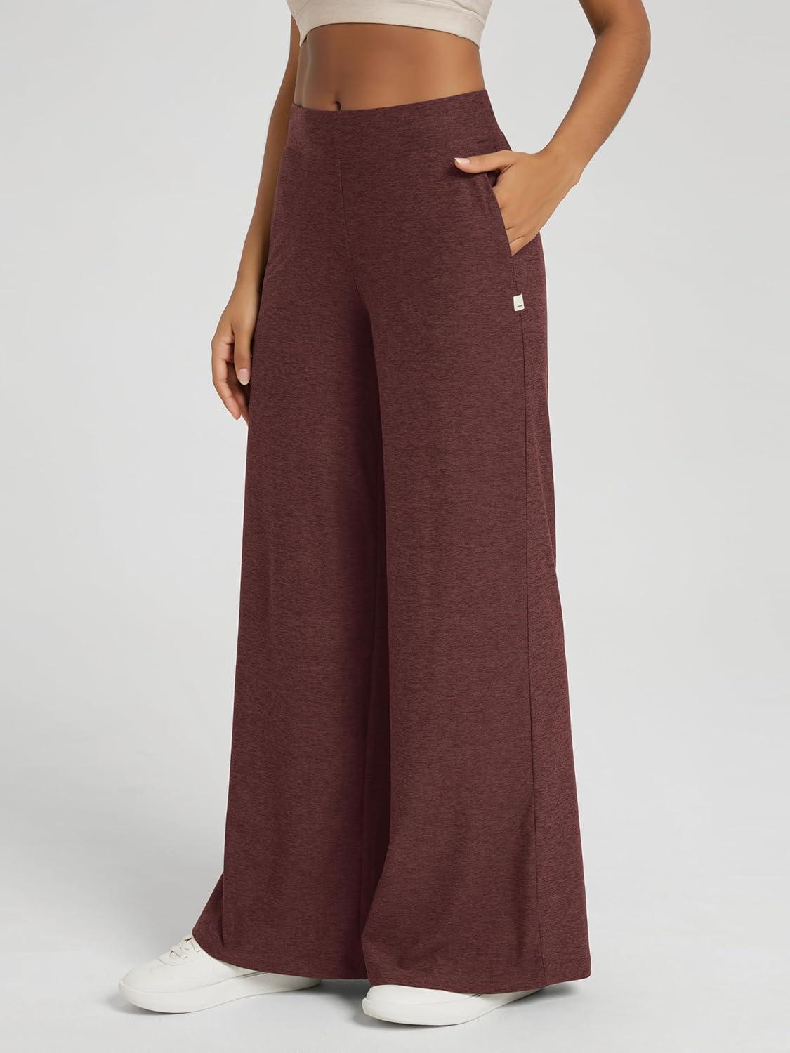 ODODOS Women’s Extra Wide Leg Pants – Ultra Soft Stratum Tech Casual Relaxed Lounge Pants with Pockets – 29″ Inseam(Java Heather)