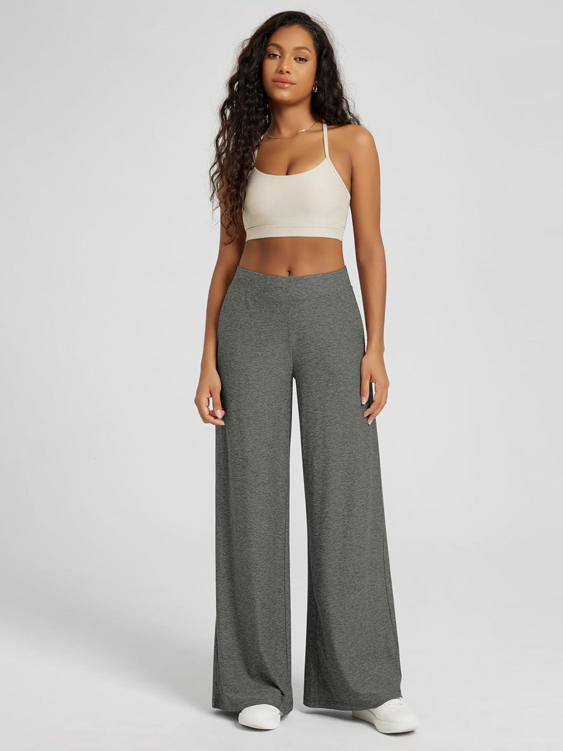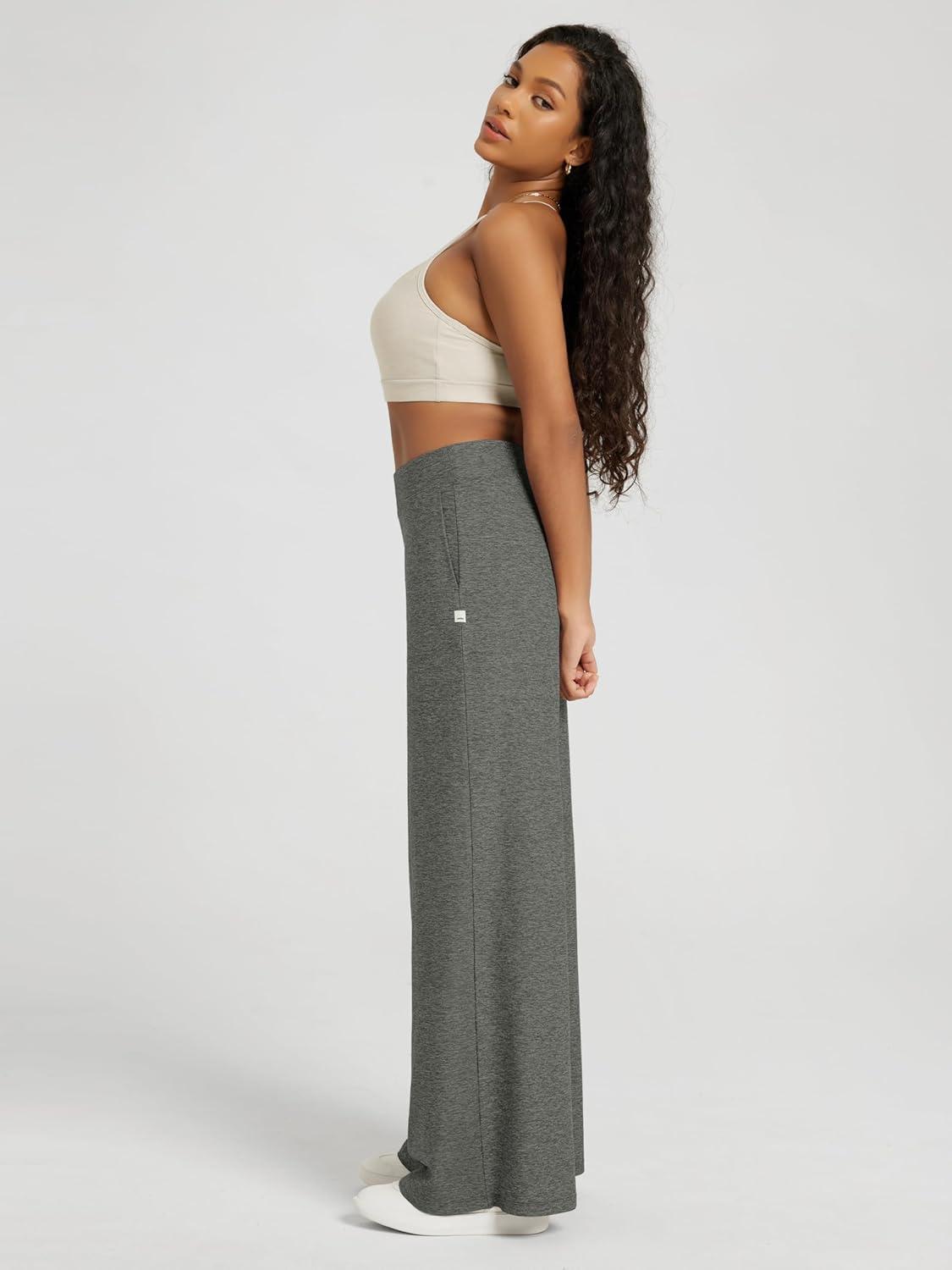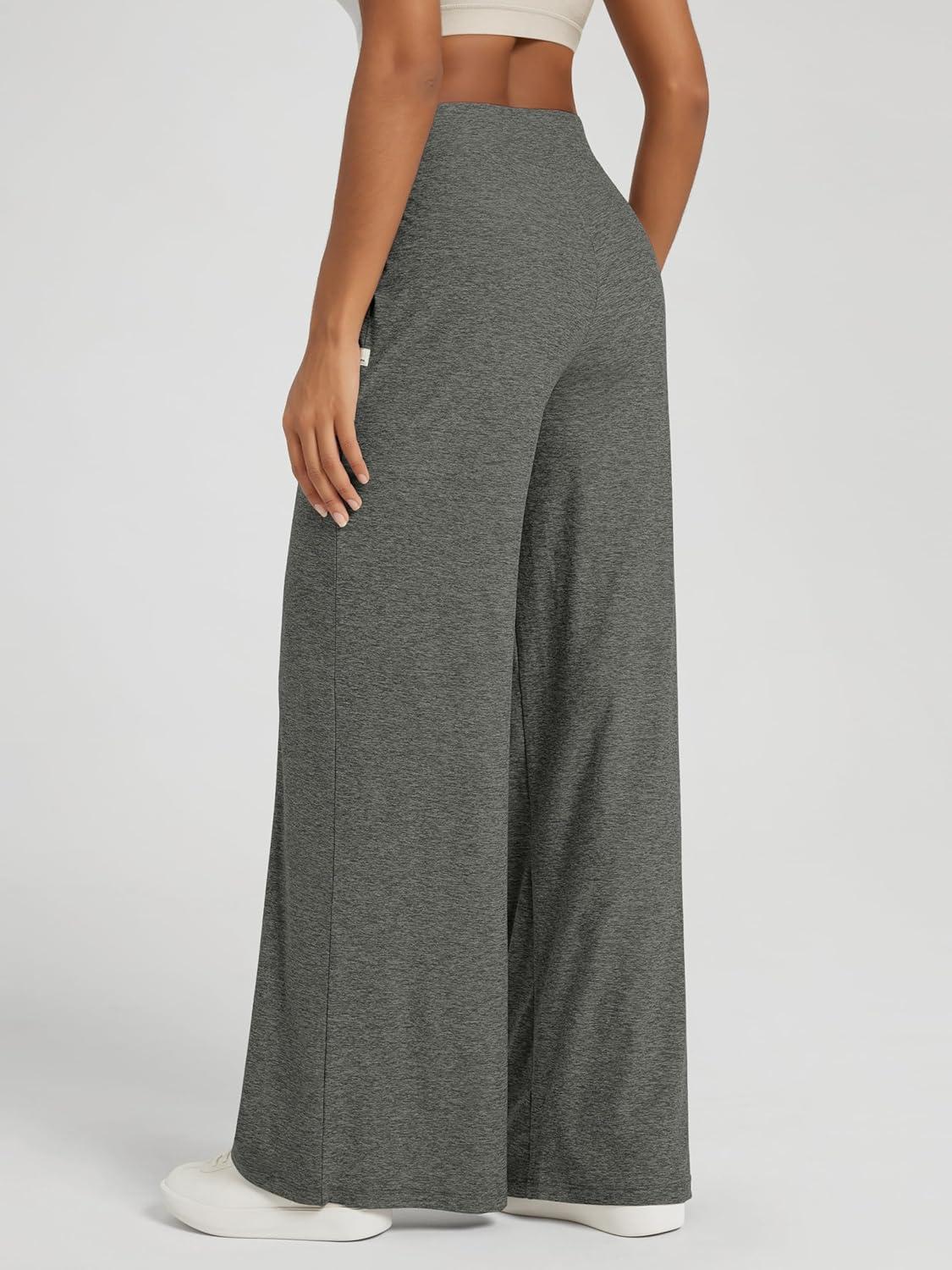 ODODOS Women’s Extra Wide Leg Pants – Ultra Soft Stratum Tech Casual Relaxed Lounge Pants with Pockets – 29″ Inseam(Smoke Heather)