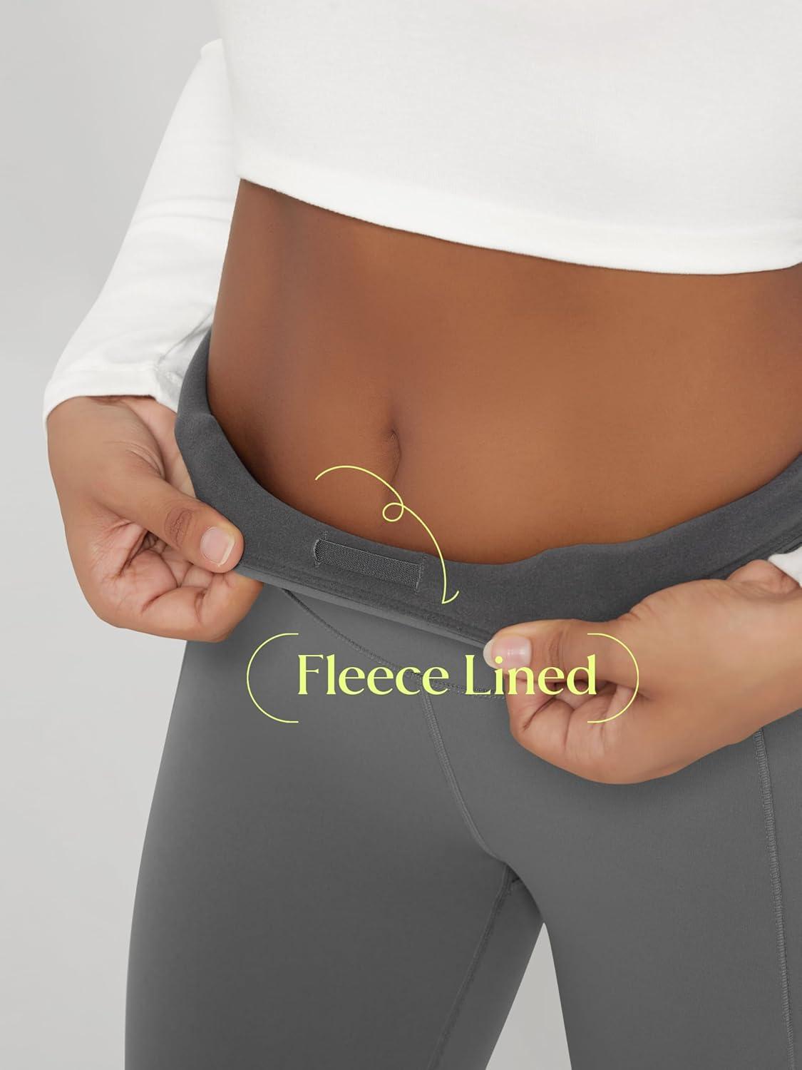 ODODOS Women’s Fleece Lined Leggings Thermal Warm Winter Tights – 25″ / 28″ High Waisted Thick Yoga Pants with Back Pockets(Charcoal)