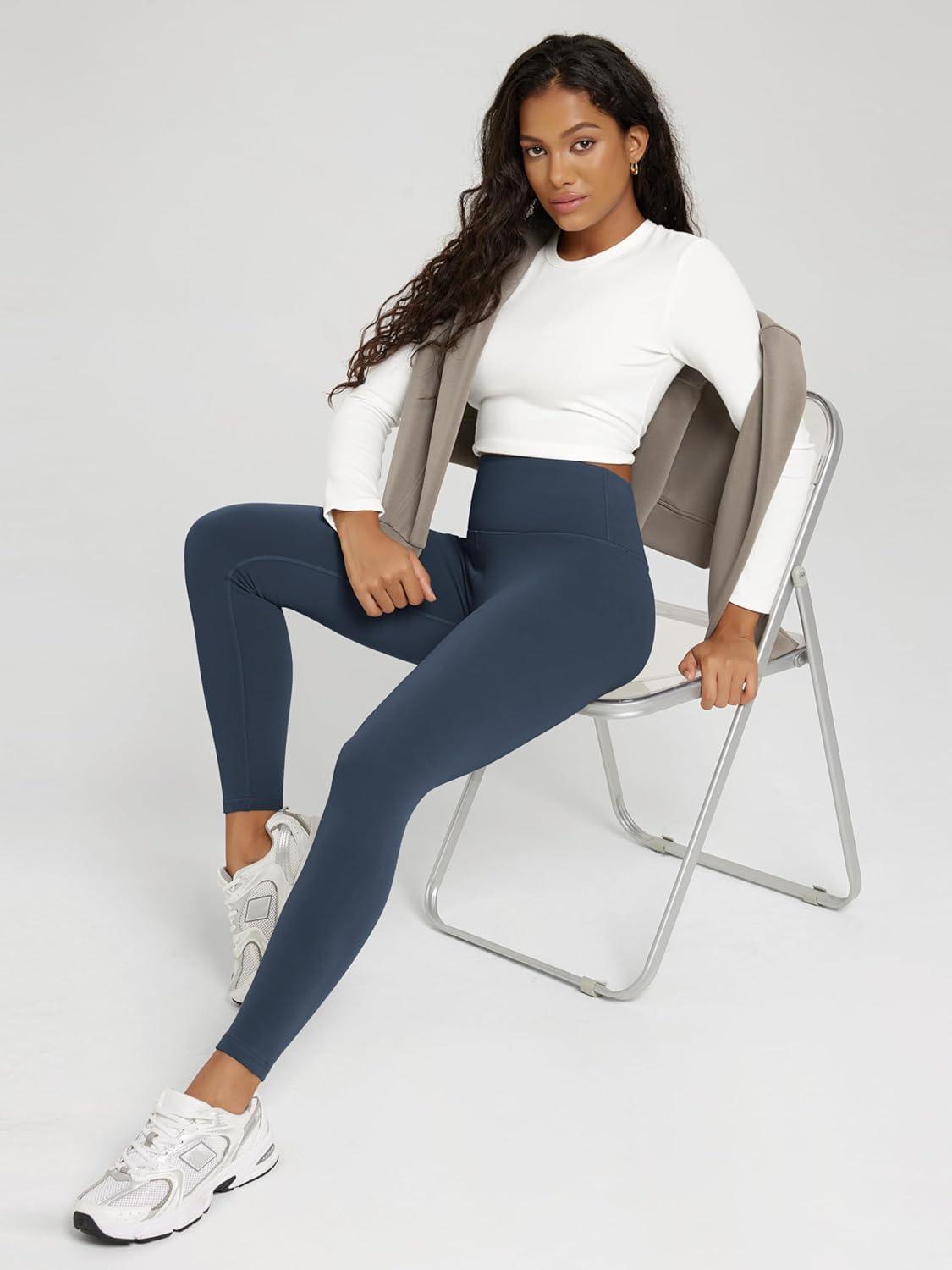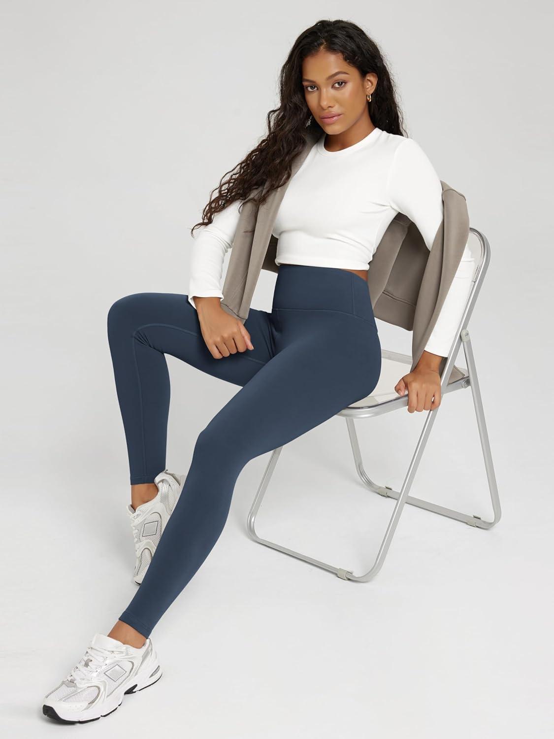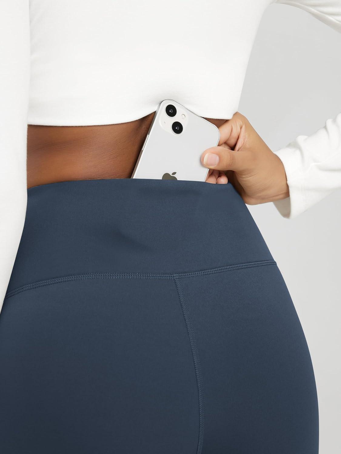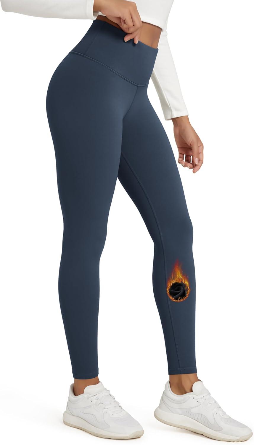 ODODOS Women’s Fleece Lined Leggings Thermal Warm Winter Tights – 25″ / 28″ High Waisted Thick Yoga Pants with Back Pockets(Navy)