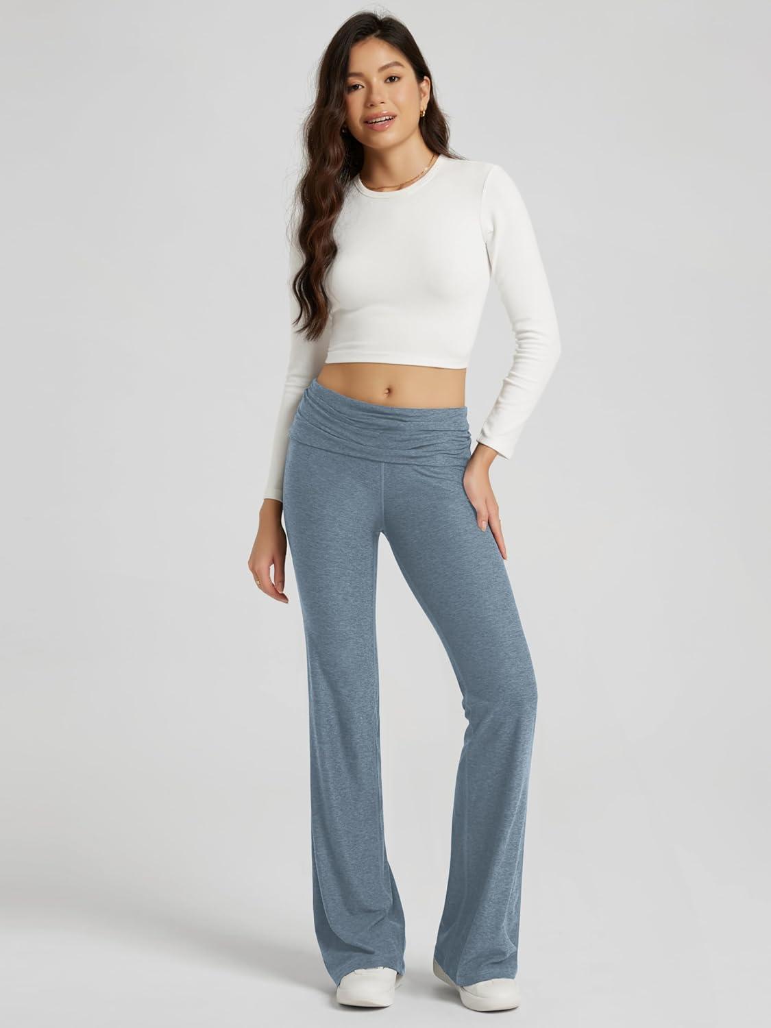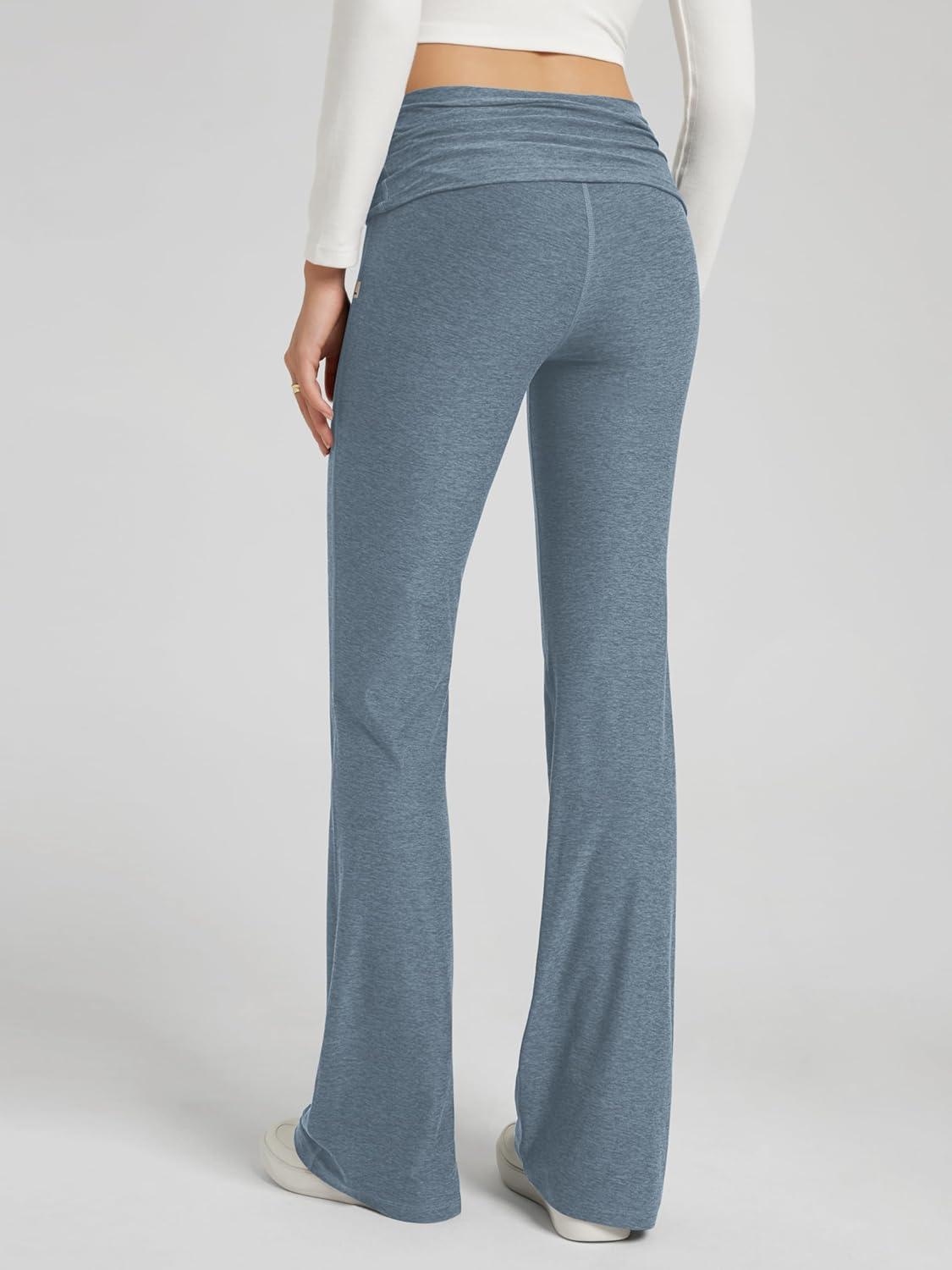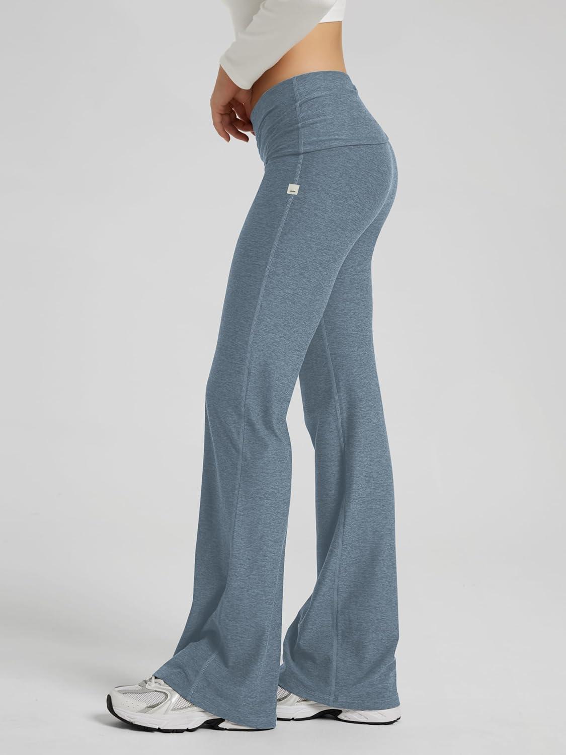 ODODOS Women’s Foldover Pants – Ultra Soft Stratum Tech Performance Mid Rise Casual Lounge Yoga Pants – 30″ Inseam(Dusty Blue Heather)