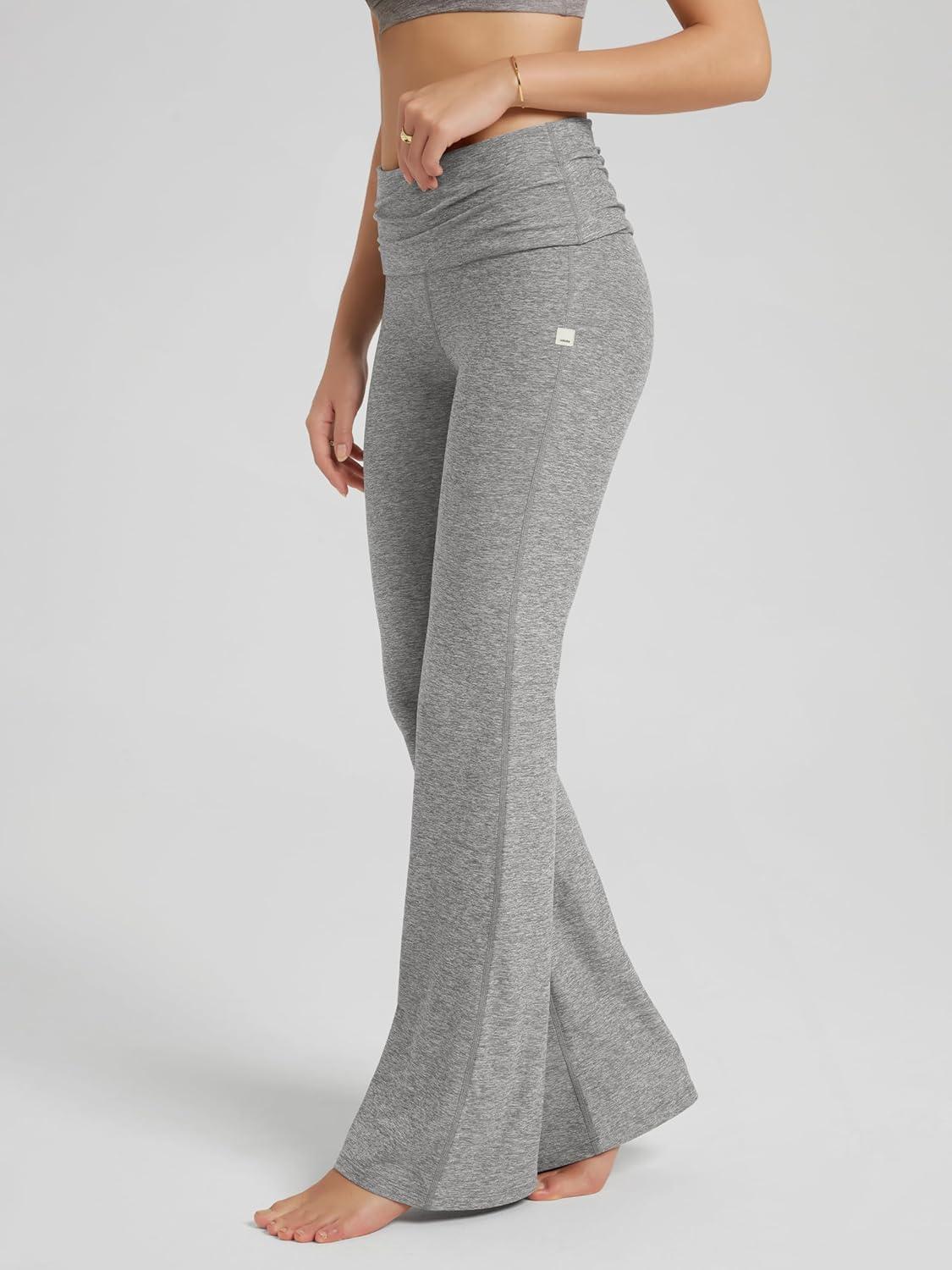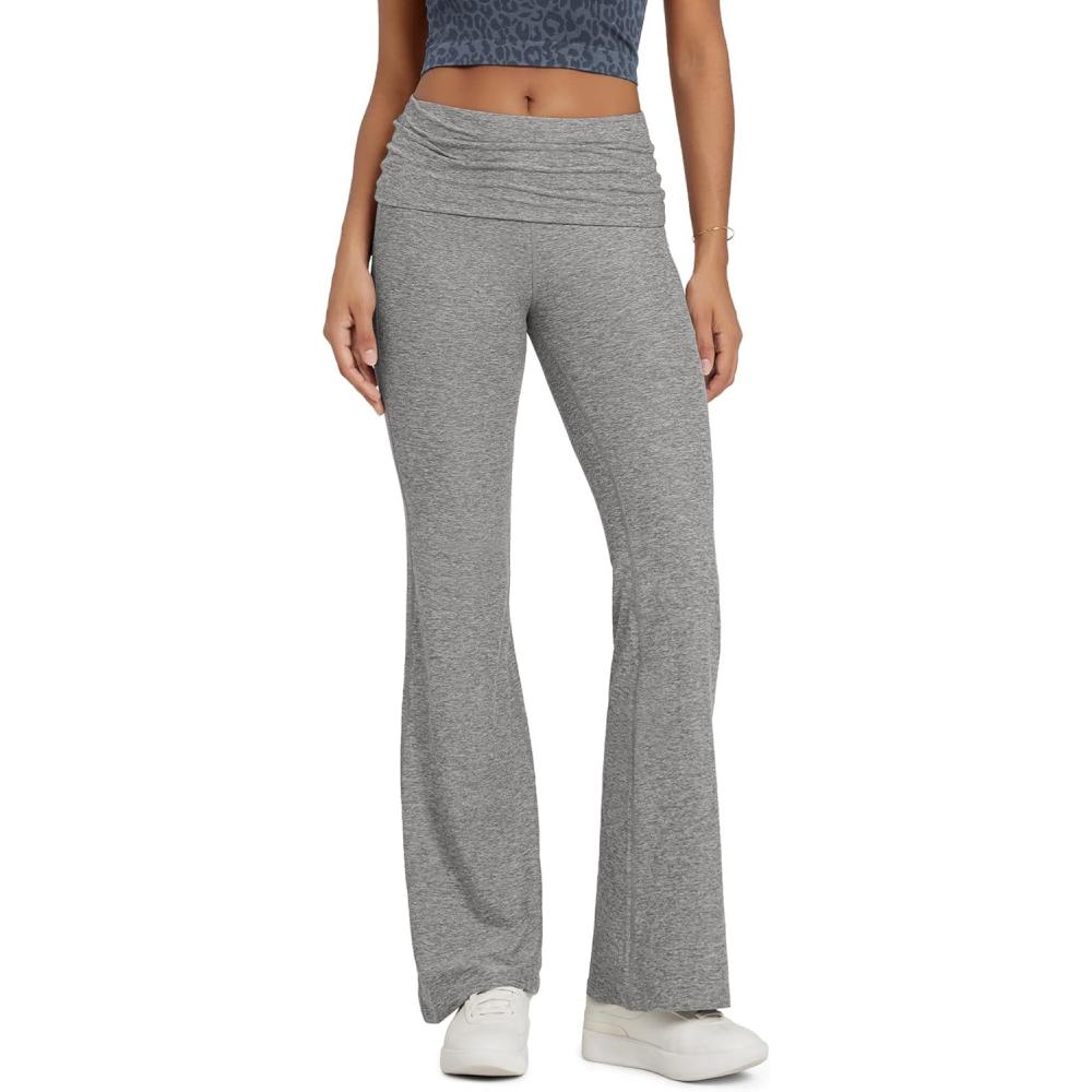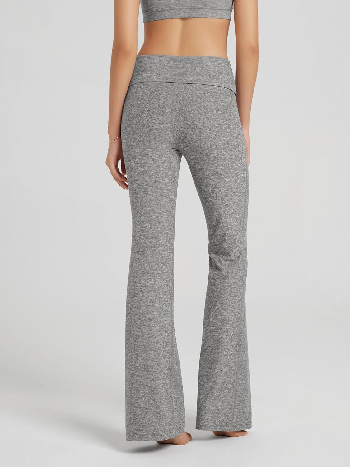ODODOS Women’s Foldover Pants – Ultra Soft Stratum Tech Performance Mid Rise Casual Lounge Yoga Pants – 30″ Inseam(Grey Heather)