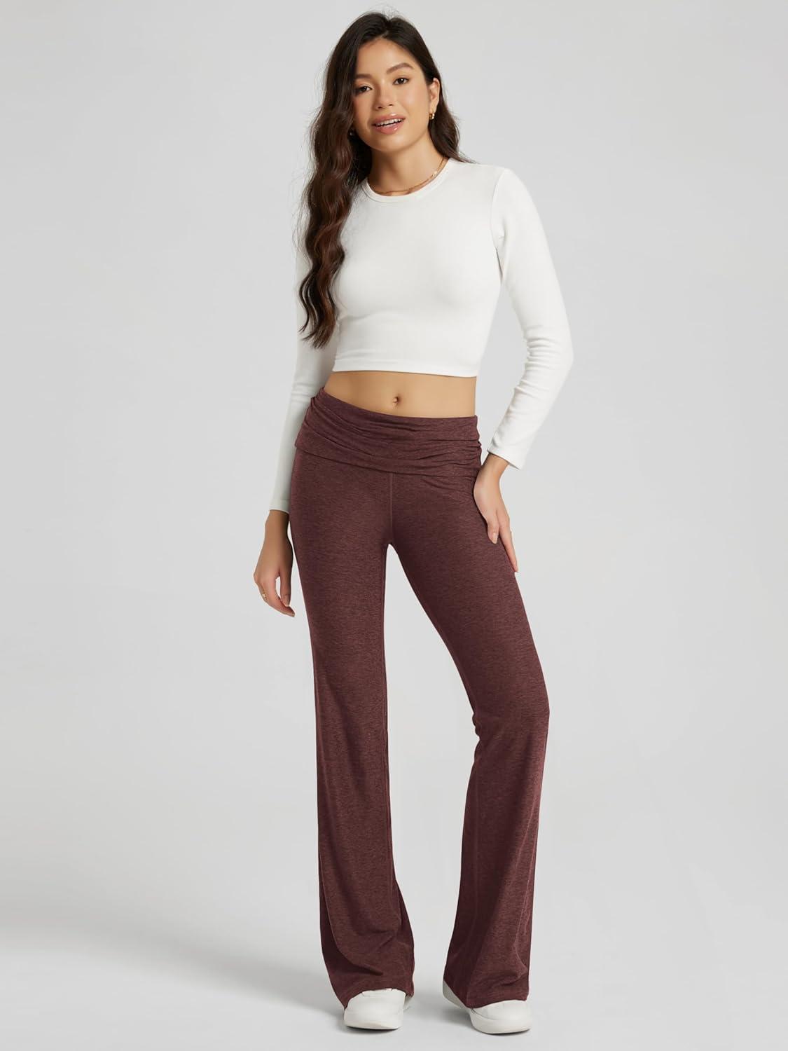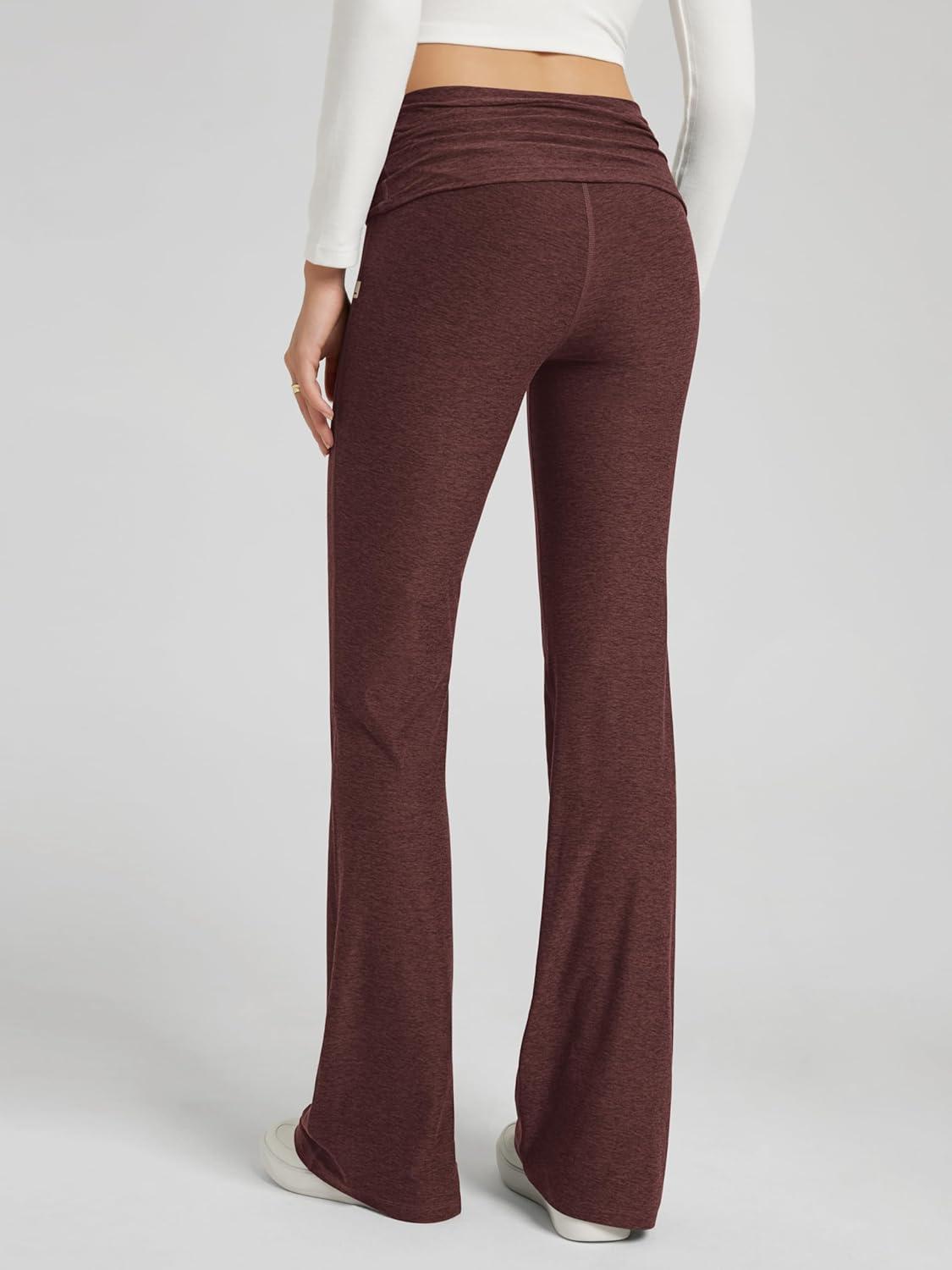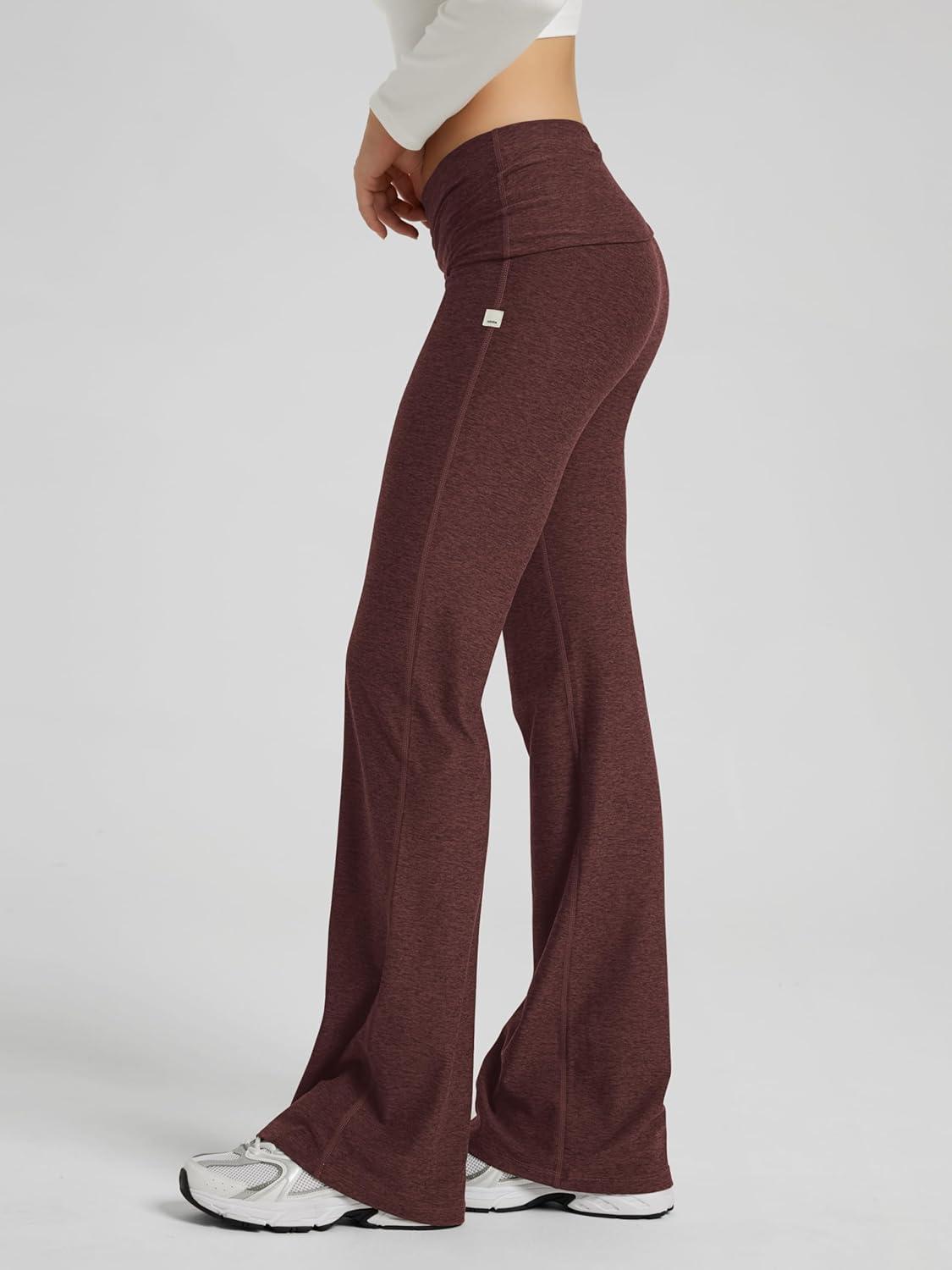 ODODOS Women’s Foldover Pants – Ultra Soft Stratum Tech Performance Mid Rise Casual Lounge Yoga Pants – 30″ Inseam(Java Heather)